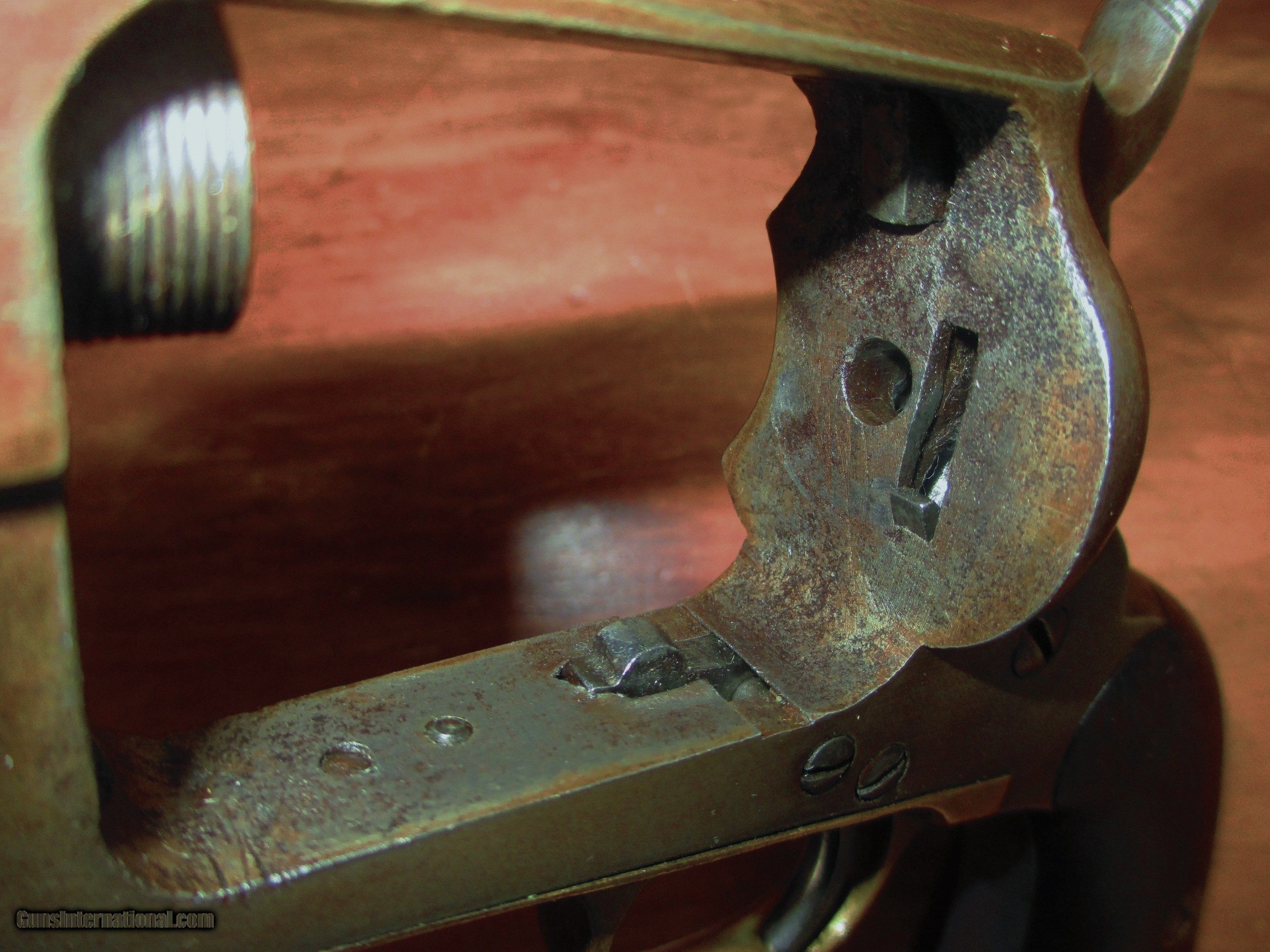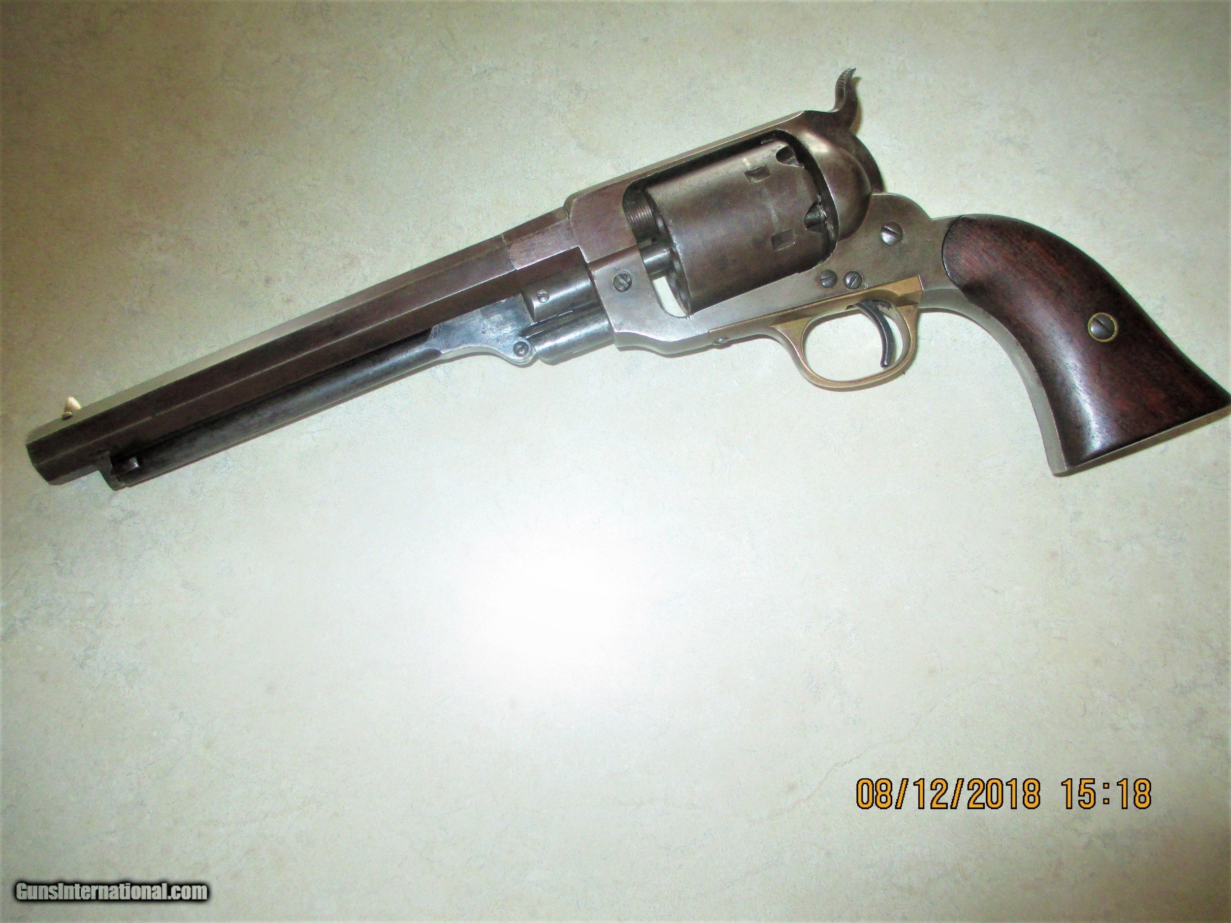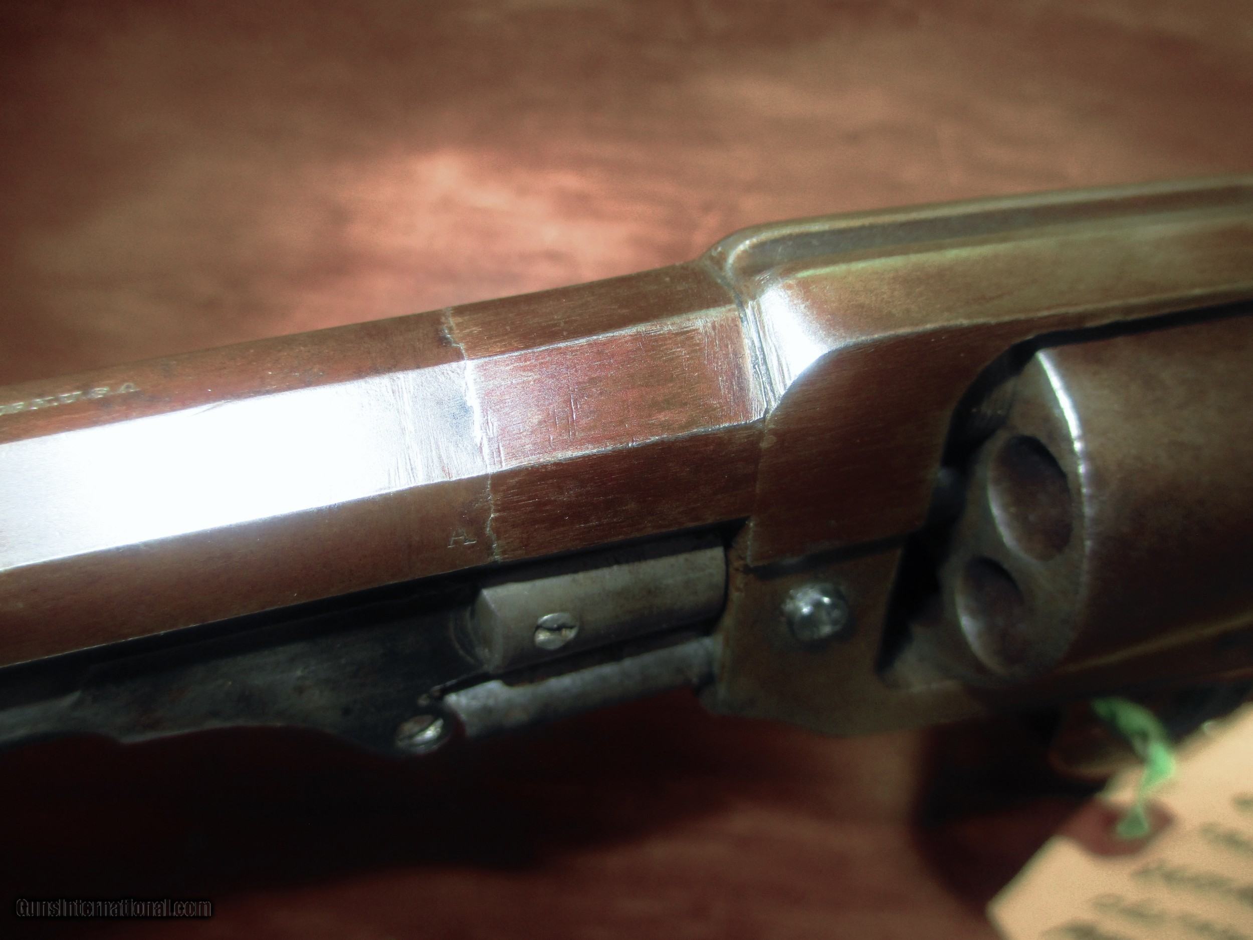 Description: A uniquely RARE specimen of a Civil War Combat weapon...This CW Revolver that I inherited from my Grandmother Tripp nee BRAGG..nephew of CSA Gen'l. Braxton Bragg. I have NO provenance to show..BUT I DO know MY ancestry..! What I am offering is a most unusual battle weapon. During this conflict firearms were in sore need by the Confederate forces as the South was not able to produce enough GOOD weapons to satisfy the CSA's needs. Many damaged weapons especially Long gungs were repaired from battlefield discards. Obviously, handguns were choice weapons for Cavalry/Officers etc. This particular pristine- genuine Whitney obviously had a damaged barrel...BUT the remaining frame & parts were armory gunsmithing mated to each other..(SOMEHOW) undocumented was the mating of a guine-Nice 1858(?) Remington 36cal. barrel that had a damaged frame. It is not known which Armory was able to "mate"-"alter" the Remington barrel to the Whitney frame rendering the Whitney a truly valuable & serviceable weapon .Remember this BOTH revolvers were NOT junkers BUT very salvageable weapons worth saving...! : The mating of the "two" revolvers is/was a marvel by the armory..obviously something done decades ago during stressful times & NOT something a person would do in more modern times... definitely NOT some 'bubba's work. "The "patina"-( I dislike that term)...is and remains UNTOUCHED.! ..including the orig. numbered grips. The Remington bore is absolutely as NEW--obviously had little use when damaged-mated....the rifling is near PERFECT where it joins the Whitney forcing cone...! The Whitney charging arm & packer is original to the Whitney. Simply a marvelous union of BOTH makers...! The Whitney Forum folk(Dan Williams) was able to find inspectors mark(s) "A" on opposite sides of the Remington barrel and opined the top flat barrel inscription is of an Early "wartime" address..see photos...Remington is somewhat feint to view but the rest is quite vivid. I will allow a 3day inspection of this revolver for return of "undisturbed" exterior along with interior parts as delivered. This has been disassembled and professionally documented by varied methods(my being a retired Investigator).. It is very difficult to place a Fair estimate of value on such an historic item...esp. a firearm. I 'll ship this item FREE...BUT the winner will pay for the addt'l. Insurance am't. chosen. More photos available via request. SOLD Antique: Yes Serial Number: 8620/Whitney |
