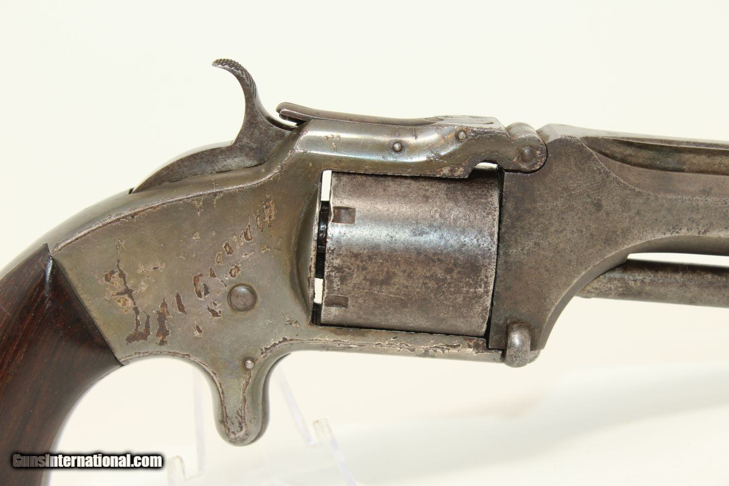 Description: EARLY, SILVER Plated S&W No. 2 OLD ARMY Revolver EARLY Low Serial Number CIVIL WAR Era Here we present an early antique Smith & Wesson Model No. 2 Old Army Revolver, made circa 1861 in Springfield, Massachusetts. Smith & Wesson purchased the rights to the Rollin White patent for the bored through cylinder, which would forever change the development of revolving firearms. Beginning in 1857 they produced the Number 1, a 7-shot .22 rimfire pocket pistol, which was quite successful. This was fine for the commercial market, but S&W knew they could scale up their design for a pistol that could be worn on the belt in a holster. They began shipping their Number 2 “Army” Revolver, a 6-shot .32 caliber, just 2 months after the beginning of the American Civil War. Smith & Wesson continued to leverage their patent well beyond the war and they remained very popular with the public and on the frontiers. The difference between the early Smith & Wesson “Old Army” No 2 Model, serial range 1 to about 3000, and later revolvers, is the addition of third pin to the top strap to limit the travel upwards of the cylinder stop. This one bears a very nice silver plate finish on the frame and would have been blued on the barrel. The overall condition is very good. 90% of the original silver finish remains. The blue finish has turned gray with age. The markings are clear. The rosewood grips are in great shape. The bore is in good condition with good rifling. The action is excellent. Here is one of the early, rare two-pin Smith & Wesson Old Armies that would have been carried during the American Civil War! Own the original! This is a legitimate antique and not a reproduction. Barrel is 6 inches. Caliber: .32 Rimfire Overall condition as seen in photos. Very Fast. Very Safe. FREE SHIPPING WORLDWIDE. Delivered directly to your door by express mail! Guaranteed AUTHENTIC & Includes CERTIFICATE OF AUTHENTICITY. ancestryguns $1800 #190566 SOLD Antique: Yes |