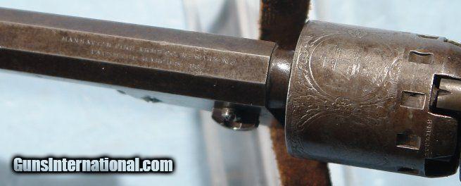 Description: EXCELLENT MANHATTAN PERCUSSION.36 CAL. 6 ½” NAVY REVOLVER WITH 1864 PATENT DATE. All original and matching in superior condition. Octagon barrel with two line ‘MANHATTAN FIRE ARMS CO. NEWARK, N.J./PATENTED MARCH 8. 1864”. Roll die engraved cylinder with Military and Naval scenes with all of it remaining. 40-50% blue on barrel and slightly less on the cylinder. Melloe brass straps. Original walnut grips with most of the finish. Working order and excellent bore and chambers. Extra nice and with the longest barrel length. SOLD Antique: Yes |