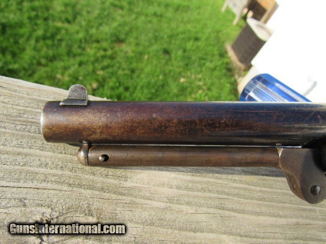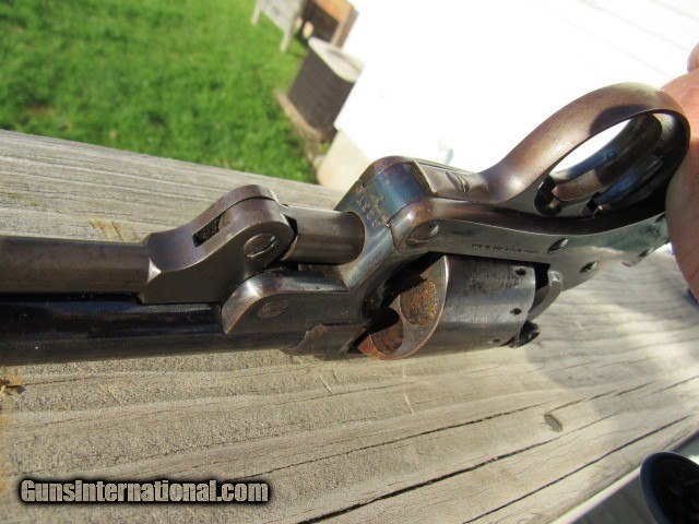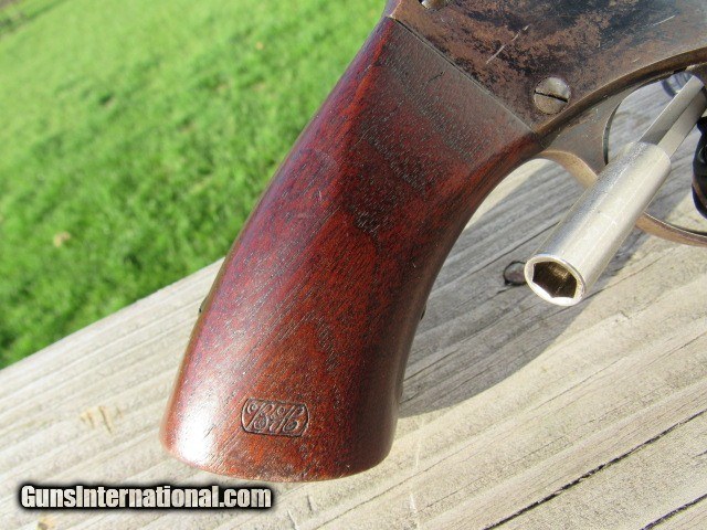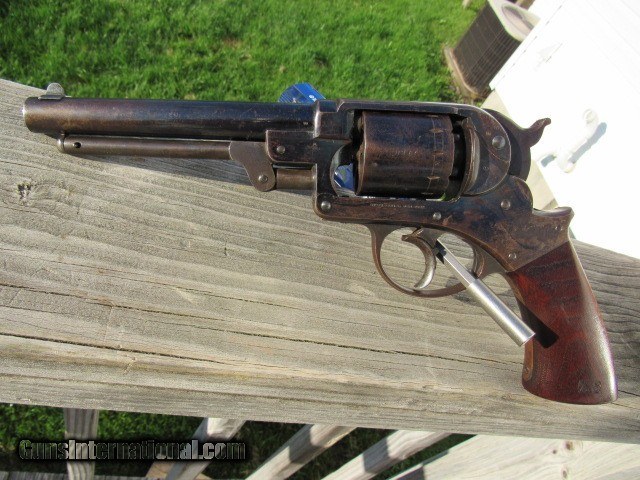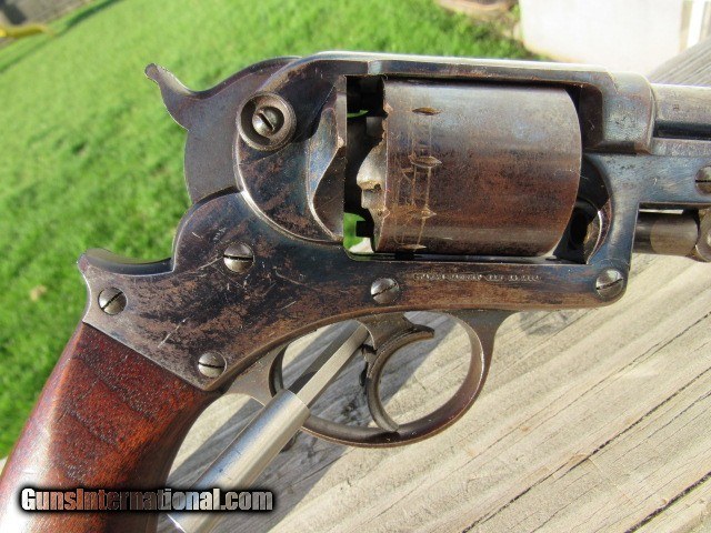 Description: DESCRIPTION: Starr Arms Co. double action 44 caliber percussion revolver, serial # 8237 matches in all correct locations, with correct dovetailed front sight in the 6" round barrel, made approximately 1861. One of a handful that I am listing that I just acquired from a local estate - previous owner purchased this revolver in 1968 so it has been tucked away for 51 years!! MARKINGS: Left side of frame "STARR.ARMS.CO.NEW.YORK." Right side of frame "STARR'S PATENT JAN. 15, 1856." "W" sub-inspector marking appears in 2 locations on left side of frame, on cylinder, on left side of barrel at breech, and on bottom of trigger guard in front of trigger loop. "H" sub-inspector mark on cylinder and right side of barrel at breech. "7" appears just under serial number on front of frame. "BH" inspector markings on both grips are extremely sharp and clear (Benjamin Hannis, who also inspected issued military firearms for Colt and Remington). Many of these Starr revolvers went to Company K of the 19th Pennsylvania Volunteer Cavalry during the Civil War. CONDITION: Frame retains 60% original bright blue with the remainder flaking and a few spots of oxidation. Barrel retains 70% original bright blue, especially back by the frame and under the ram rod, with the balanced flaked and turned patina. Ram rod has turned patina with 10% original muted case colors on the lug portion. Cylinder retains 65% original bright blue with the balance a mix of plum and patina. All nipples are intact and undamaged. Bore is excellent, strong rifling and virtually no black powder damage, a 9 of 10, unheard of on a black powder firearm of this vintage. Trigger guard and backstrap have turned a dark patina. Original walnut grips have a couple of scratches and multiple dents on the butt, otherwise in excellent condition with no splits, no cracks, no repairs, never sanded or refinished and still tight to the frame. Grades NRA Antique Fine. TERMS: No international sales. Antique so it can ship directly to you assuming your local laws allow it. Copy of driver's license required as proof of age. Payment by bank check, money order, personal check, or all major credit cards with 3% surcharge. 3 day non-firing inspection. Buyer pays return shipping. Thanks for looking. SOLD Antique: Yes Manufacturer: Starr Arms Co. Model: D.A. 1858 Army Serial Number: 8237 Caliber Info: 44 percussion Condition: Excellent Metal Condition: Excellent Wood Condition: Excellent Bore Condition: Excellent Barrels: 6" round Action: Revolver Manufacture Date: 1861 Item Location: New York |