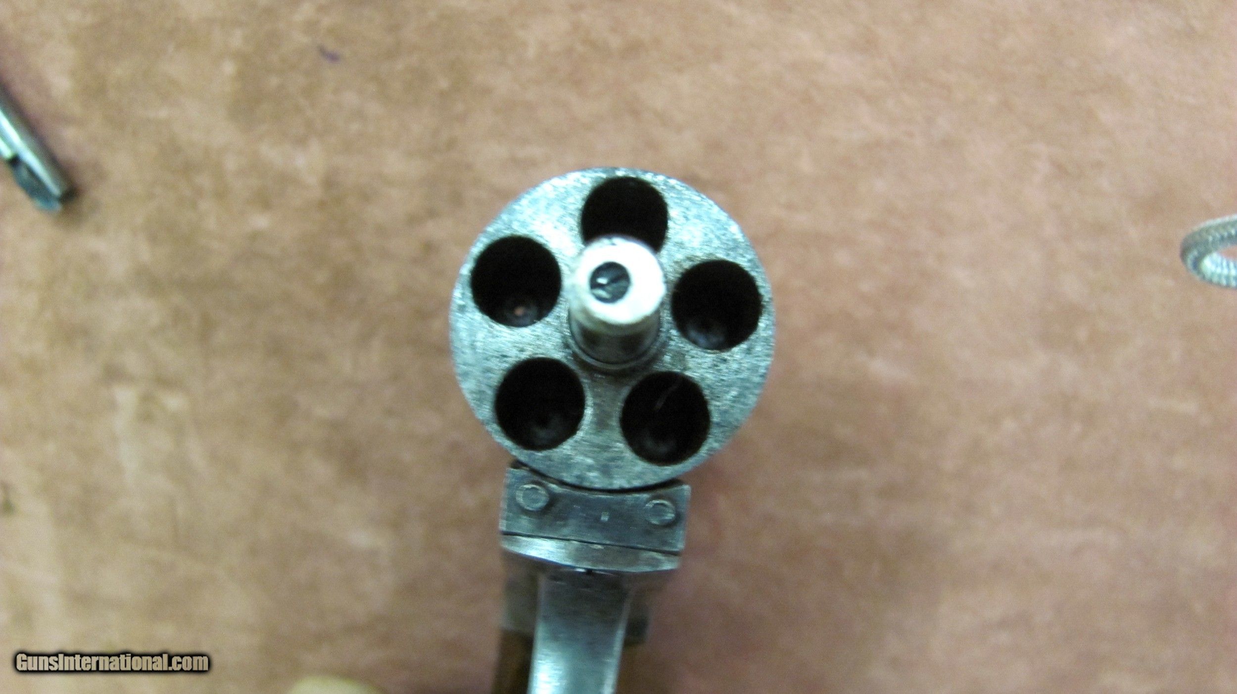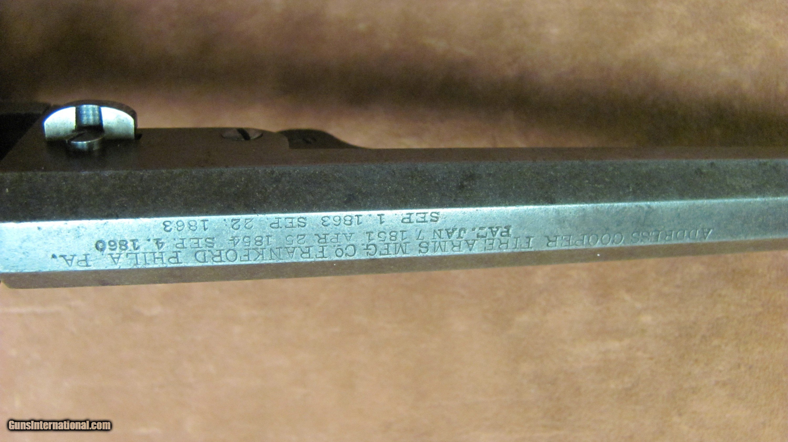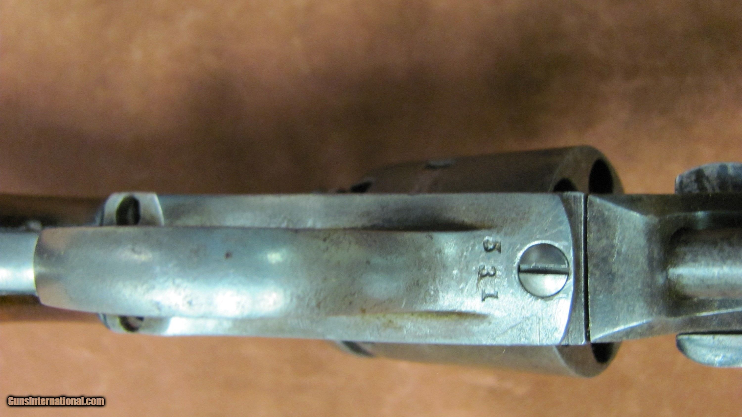 Description: 1st. Model J.M. Cooper with 6 inch barrel, manufactured in Philadelphia, PA. It is .36 caliber double action. Barrel markings on 3 lines, including the word "ADDRESS", which was dropped from the 2nd. model. Iron frame as opposed to the brass frame of the 2nd. model. Shorter cylinder length with a large barrel bolster, loading lug cut out on the rigth side as opposed to both sides on the 2nd.model. Excellent working condition in both single action and double action. A great example of a Civil War era revolver that many collectors consider a secondary martial arm. SOLD Antique: Yes Handgun Caliber: .36 Manufacturer: J.M. Cooper Model: Navy Revolver Serial Number: 531 Barrel Length: 6 inches Condition: Very good Metal Condition: Very Good Wood Condition: Very Good Bore Condition: Very Good Action: Double Action Proof:Black: Black Powder |