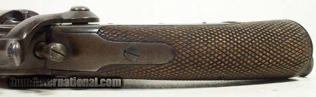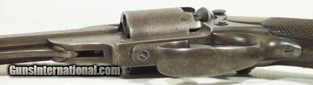 Description: Kerr Confederate revolver SN2845RC; 44 cal. percussion; has US anchor on grip below lower tang; this marking is the Confederate acceptance/inspection mark; 5 ¾” bbl. with strong, but rough bore; good action; 100% correct and original confederate weapon with following metal markings; ‘serial no. 2845RC’ on frame under cylinder ‘Kerrs Patent 2957’ on cylinder, on left side of frame, ‘2957’on cylinder, ‘LAC4’ on upper left bbl. flat, ‘London Armory’ on metal of right grip, ‘London Armory’ chatter double stamped on left side of frame; British proofs on each cylinder; Confederate acceptance mark in wood below lower tang, light but present; A RARE ORIGINAL UNFOOLED WITH CONFEDERATE REVOLVER; antique, no FFL/C&R required for shipping; All items shipped fully insured Priority Mail- -Hand guns $30 --Long guns $45-- Spurs $30-- Knives, Swords & Sabers $30—Grips $20 (Texas residents please add 6.75% sales tax); return policy: three days inspection from the date the item is received; full refund of shipping both ways ONLY IF THE ITEM IS MISREPRESENTED. Note: International sales only as laws permit. Will ship C&R eligible items to C&R license. Antiques shipped without license to anyone EXCEPT New Jersey and City of New York where a FFL is required. SOLD Antique: Yes Manufacturer: Kerr Serial Number: 2845RC |