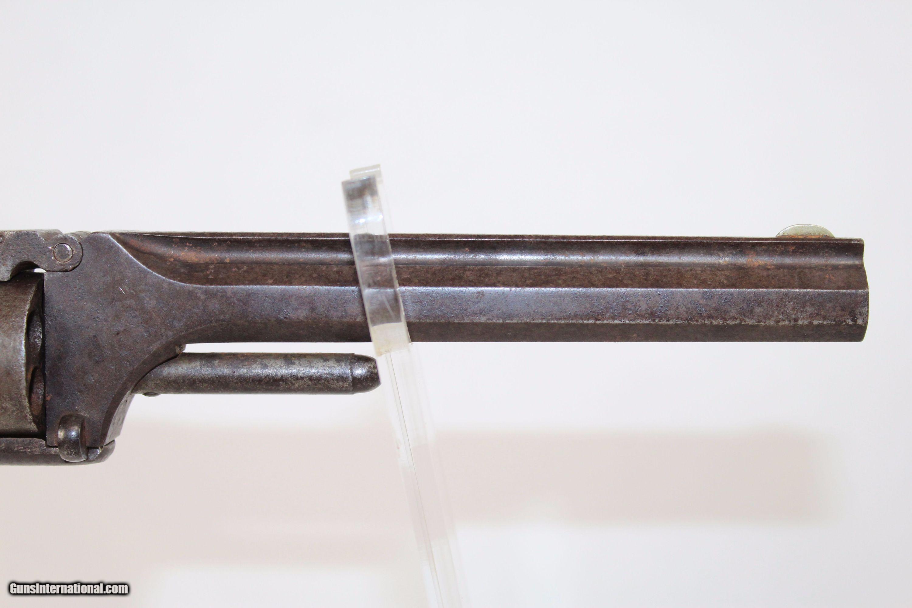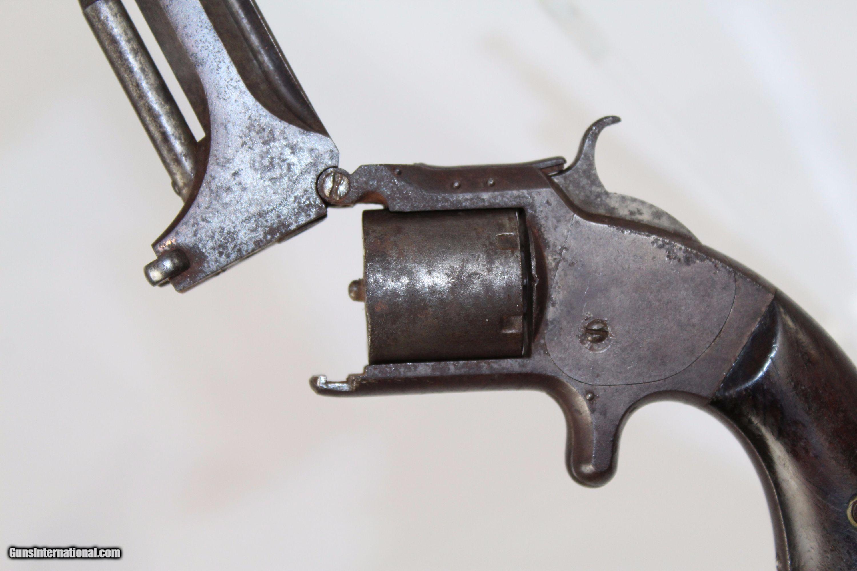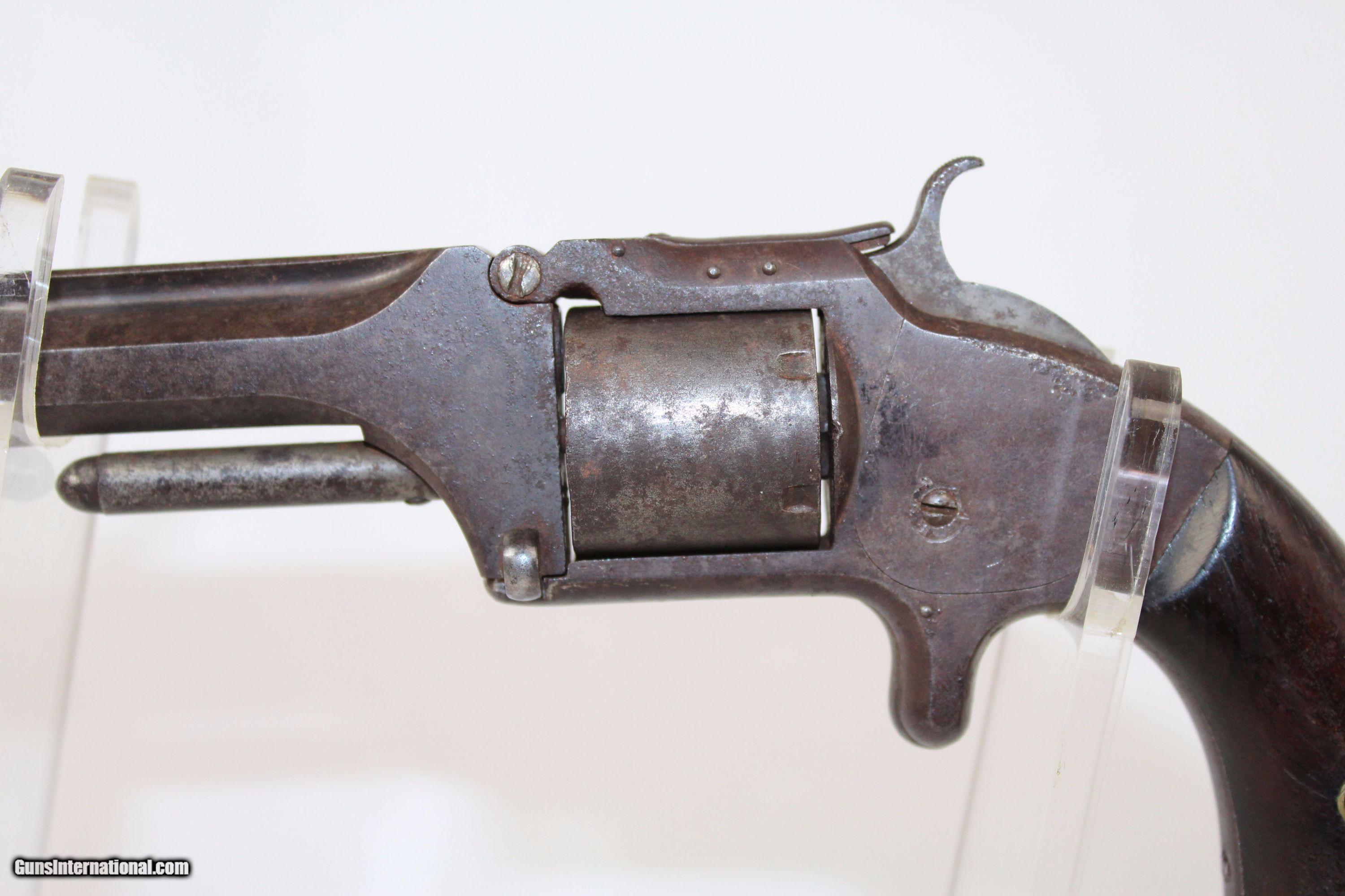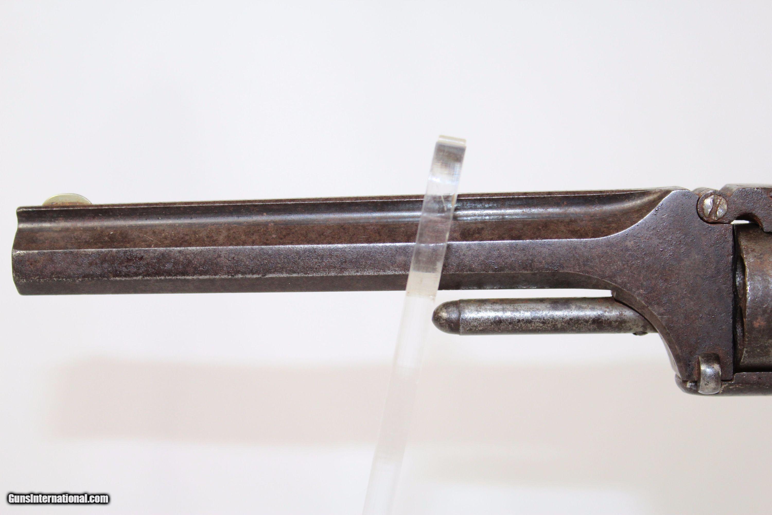 Description: KY CIVIL WAR Smith & Wesson “OLD ARMY” Revolver In the Serial Range of the KENTUCKY State Militia Contract Here we present an antique Smith & Wesson Model No. 2 Old Army Revolver, made circa 1861 in Springfield, Massachusetts. Smith & Wesson purchased the rights to the Rollin White patent for the bored through cylinder, which would forever change the development of revolving firearms. Beginning in 1857 they produced the Number 1, a 7-shot .22 rimfire pocket pistol, which was quite successful. This was fine for the commercial market, but S&W knew they could scale up their design for a pistol that could be worn on the belt in a holster. They began shipping their Number 2 “Army” Revolver, a 6-shot .32 caliber, just 2 months after the beginning of the American Civil War. The S&W Number 2 Army Revolver held distinct advantages over the percussion revolvers of the day in that its metallic cartridge ammunition was both waterproof and quick and easy to load into the gun, due to the bored through cylinders like we still use today. However, several disadvantages kept this particular revolver from overtaking percussion revolvers, namely Colt’s, in large scale military usage. Those were bullet size and the logistics of providing the specific ammunition during the war. The Army preferred a .44 caliber projectile and the Navy the .31. Logistically, sending loose powder and ball to fit a variety of different percussion guns was much simpler than sending specific ammunition to a particular group in the field. Though it never received any large federal contracts, it was adopted at the state, unit and individual levels. Per Charles Pate, Kentucky ordered 731 Number 2 “Armies” from Kittredge & Co. late in 1862, and even more in 1863. He says that “Most, if not all, of the revolvers used to fill the Kentucky order were almost certainly under 10,000 in serial number.” He also lists individuals and units that used these revolvers, per records and personal correspondence. The 7th Kentucky Cavalry appears to be the only unit officially issued this handgun during the war. Among the most famous of users was future U.S. President Rutherford B. Hayes, who began his part in the war as Lieutenant Colonel and ended it with Brevet Brigadier General. Ulysses S. Grant wrote about him “his conduct on the field was marked by conspicuous gallantry as well as the display of qualities of a higher order than that of mere personal daring." Another name and legend from the Civil War who used the Number 2 was General George Armstrong Custer, who owned a pair of them. “Wild Bill” Hickok wore this gun the night he was assassinated while playing cards, his last hand now called the “Dead Man’s Hand” of Black Aces and 8s. This revolver falls into the correct serial number ranger of the Kentucky contract. The overall condition is good to very good. The iron surfaces show hints of original blue finish, with the majority having a deep brown patina. The markings are legible. The serial numbers match. The grips are in good shape and also match. The bore is in good condition with just a slight roughness toward the middle. The action is excellent. Here is a great example of a gun that many carried into battle on their own dime. It is early and possibly a part of that Kentucky contract of 2,600 for the state’s cavalry. Own the original! This is a legitimate antique and not a reproduction. Barrel is 6 inches. Caliber: .32 Rimfire Overall condition as seen in photos. Very Fast. Very Safe. FREE SHIPPING WORLDWIDE. Delivered directly to your door by express mail! Guaranteed AUTHENTIC & Includes CERTIFICATE OF AUTHENTICITY. ancestryguns $1200 #5003 SOLD Antique: Yes |
