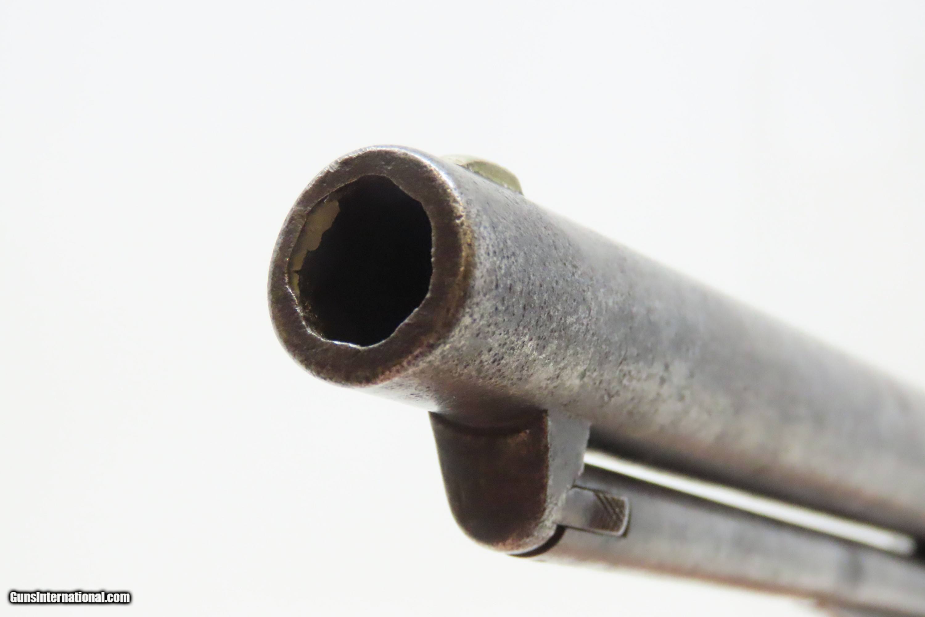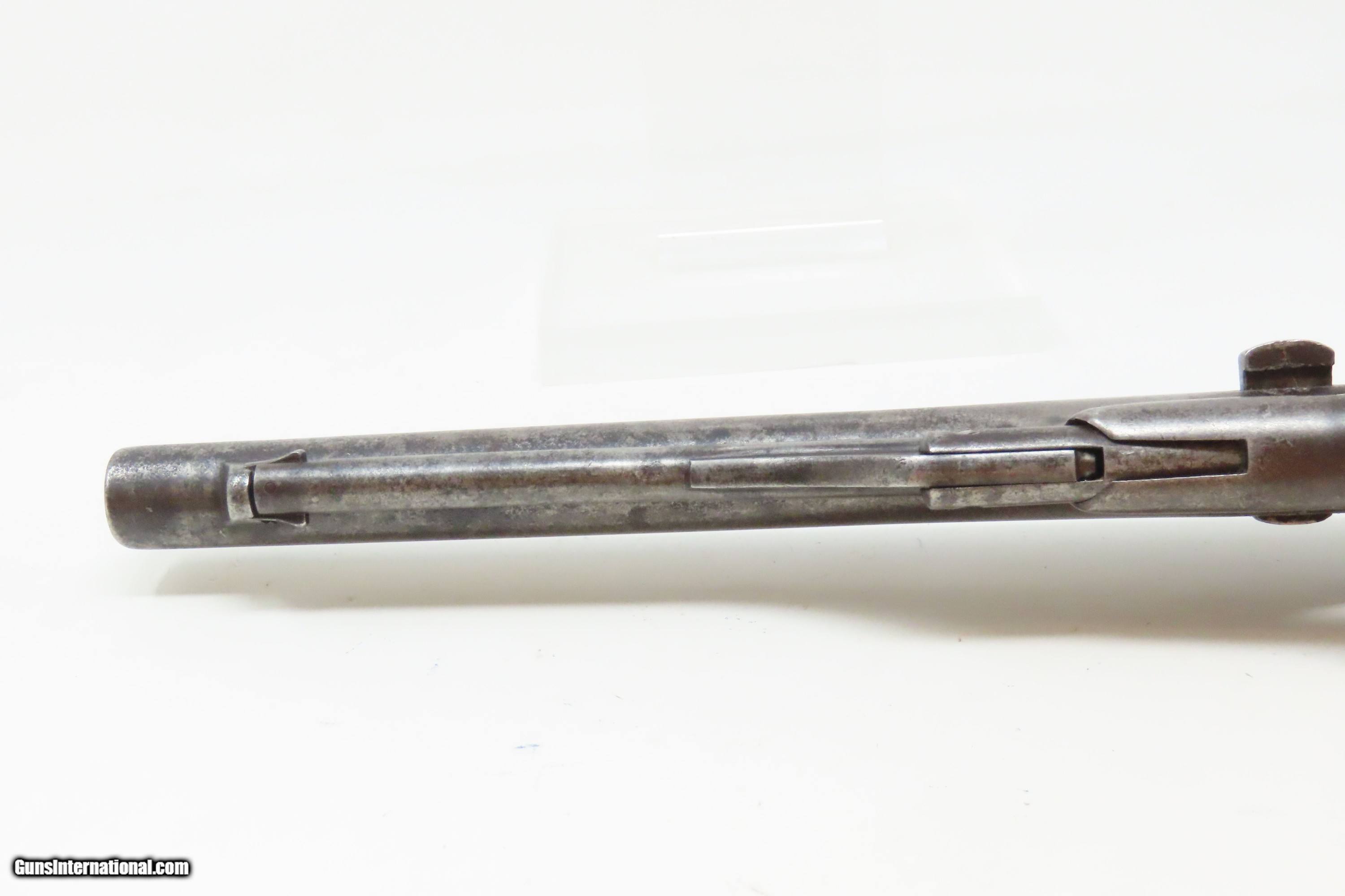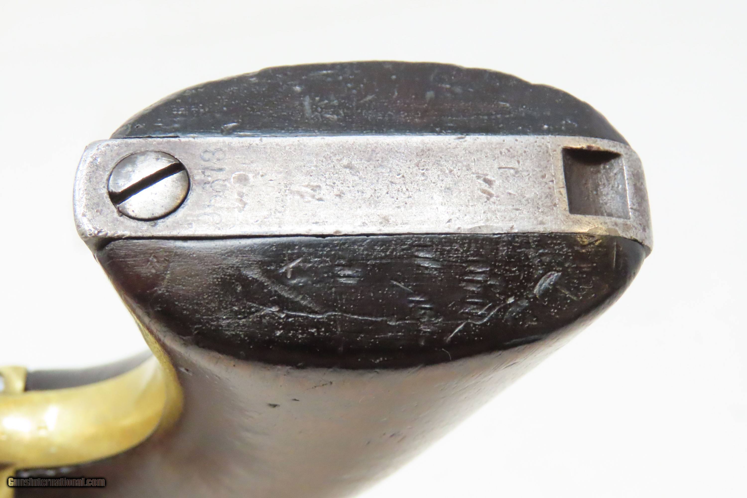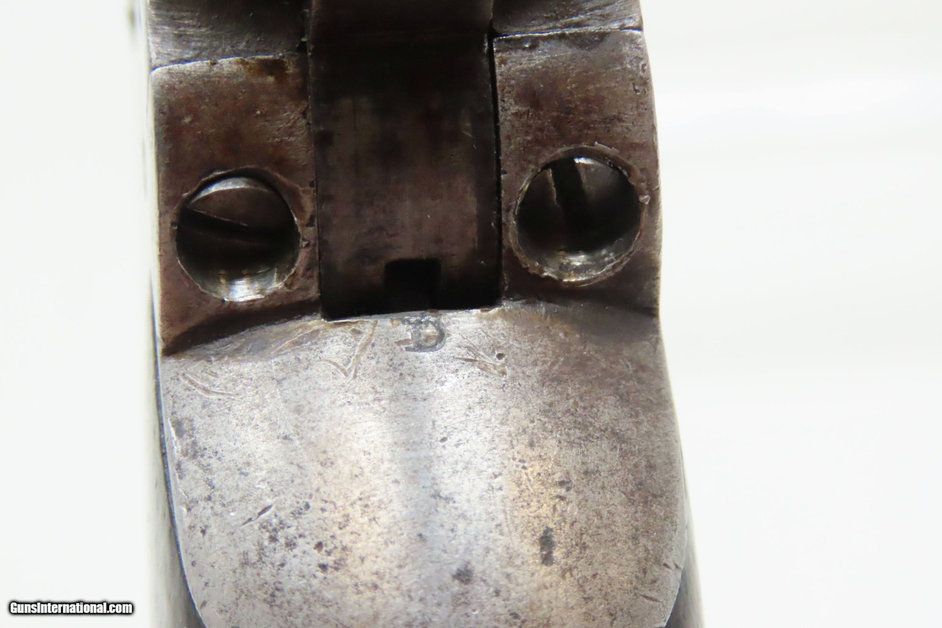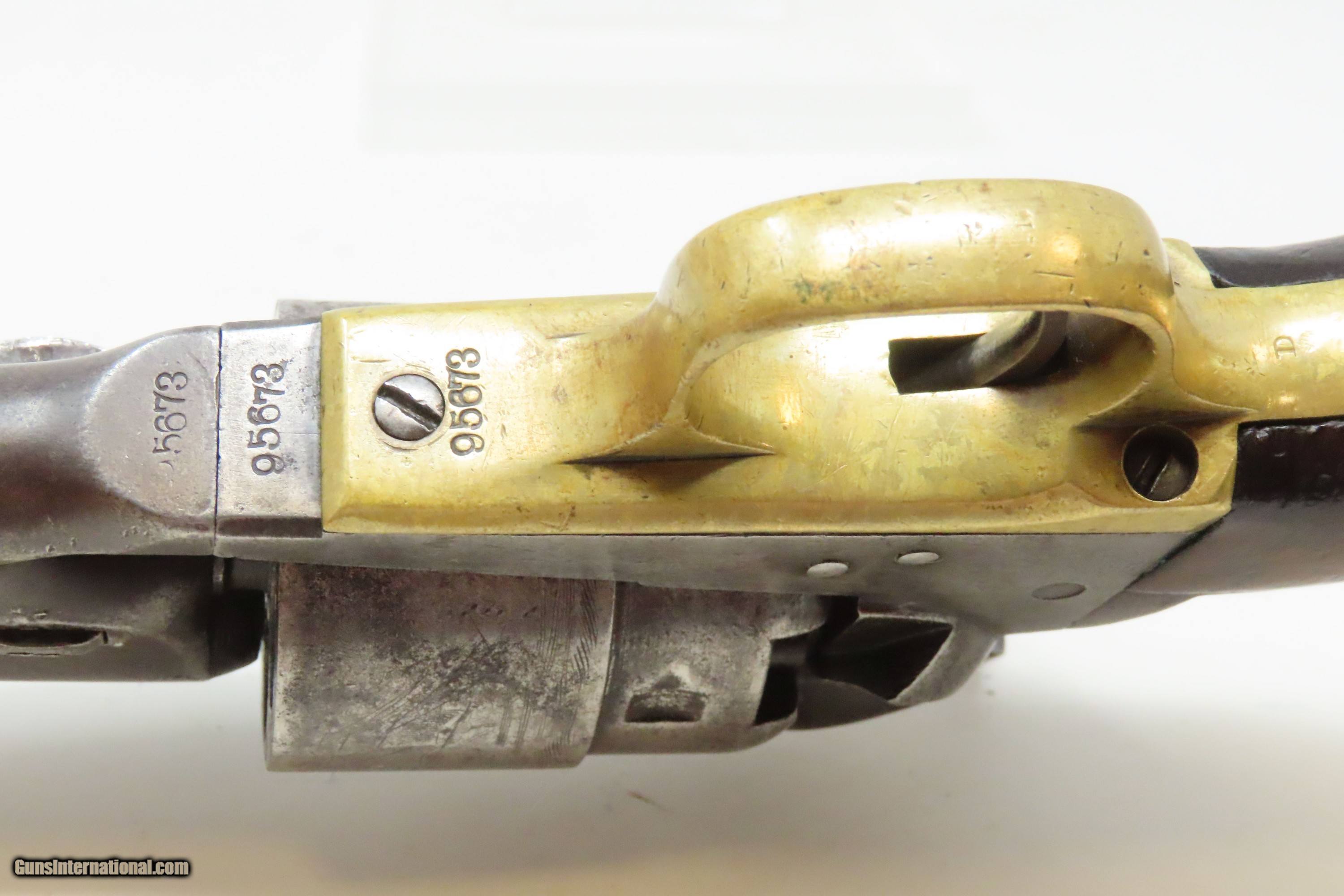Description: LETTERED 1863 mfr. CIVIL WAR Antique US COLT Model 1860 ARMY .44 Percussion Revolver Used Past the Civil War into the WILD WEST Here we present an antique Colt U.S. Model 1860 Army Revolver, made in 1863 in Hartford, Connecticut. Per the factory letter this revolver was sold to the U.S. Government, shipped to the New York Arsenal, Governor’s Island, New York, on March 4, 1863 The 1860 Army was the single most used pistol of the American Civil War. Over 200,000 were made from 1860 to 1873, and 156,000 of those were made by the end of the war in 1865. These were excellent sidearms for officers, cavalry, infantry, and artillery troops. The 1860 Army was Samuel Colt’s finest achievement to that point, having finally developed a large caliber revolver that weighed about 2 lbs. 10 oz. to the famous Dragoon’s 4 lbs. 4 oz., and was adopted en masse by the U.S. government with huge contracts. The revolver was well balanced in hand and had a long enough barrel to be effective when utilized as a carbine with the attachable shoulder stock. This revolver represented unprecedented firepower from a handgun in the field at the time and was especially suited to Cavalry. The Confederacy, lacking in manufacturing capabilities though they were, managed to produce limited numbers of copies, and battlefield pickups of the 1860 Army were highly coveted. The 1860 Army went on to serve the U.S. military even after the Civil War and into the Indian Wars, until production of Colt’s 1873 Single Action Army created new waves in the revolver market, and again achieved great success in the military and commercial markets. The overall condition is good+. Gray patina throughout. Faint but visible Battle of Campeche cylinder scene. The action is excellent. The bore is in very good condition with strong rifling. The grip is solid and each side shows faint traces of inspector cartouches. Other inspectors’ marks are visible throughout. Numbers match throughout. Own the original! This is a legitimate antique and not a reproduction. Barrel is 8 inches. Caliber: .44 Percussion Overall condition as seen in photos. Very Fast. Very Safe. FREE SHIPPING WORLDWIDE. Delivered directly to your door by express mail! Guaranteed AUTHENTIC & Includes CERTIFICATE OF AUTHENTICITY. ancestryguns $5950 #244066 SOLD Antique: Yes |