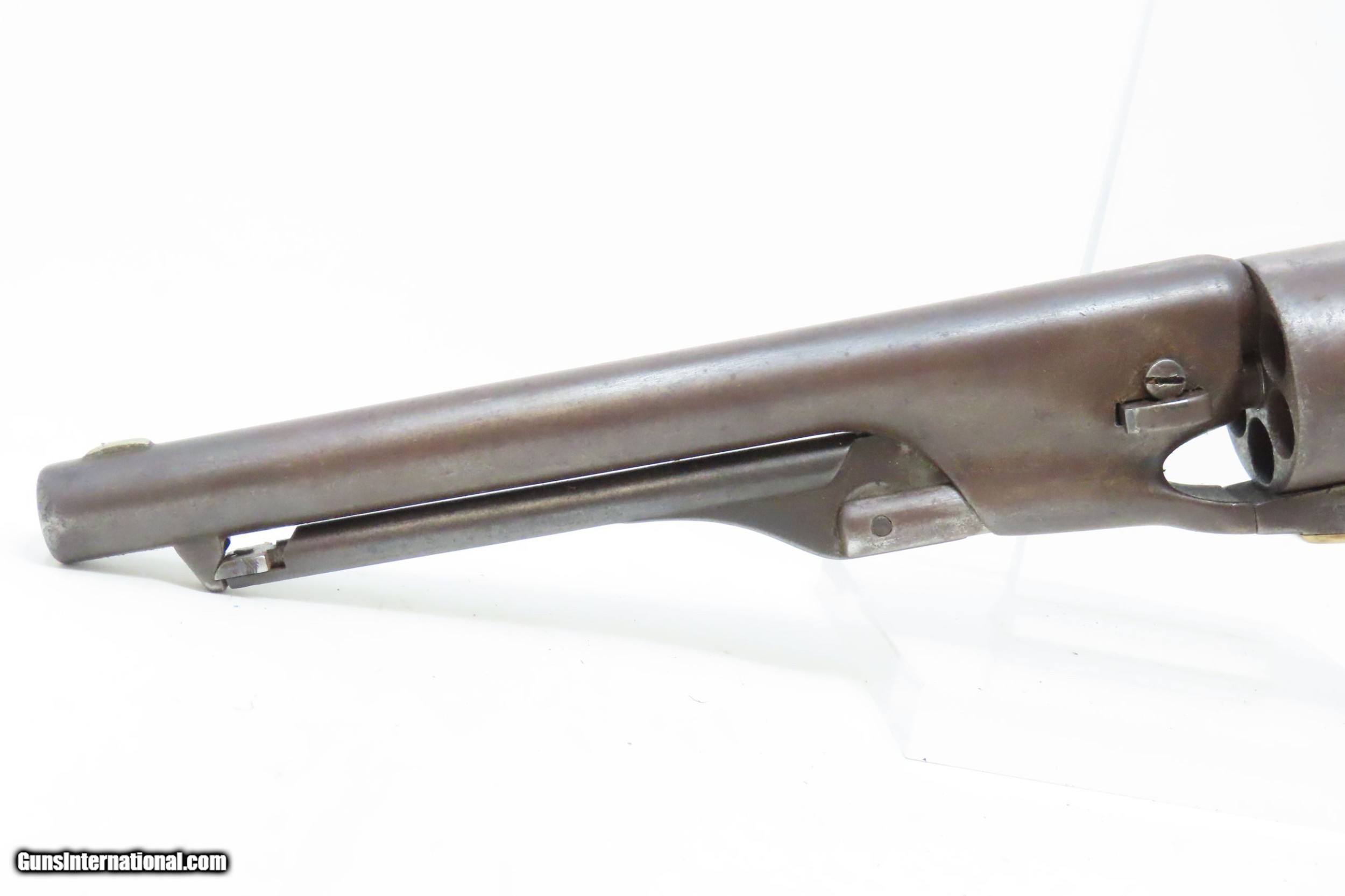 Description: Mid-CIVIL WAR COLT U.S. Model 1860 ARMY .44 Caliber Percussion REVOLVER Iconic Revolver Used Beyond the Civil War into the WILD WEST! Here we present an antique Colt U.S. Model 1860 Army Percussion Revolver, made in 1863 in Hartford, Connecticut. The 1860 Army was the single most used pistol of the American Civil War. Over 200,000 were made from 1860 to 1873, and 156,000 of those were made by the end of the war in 1865. These were excellent sidearms for officers, cavalry, infantry, and artillery troops. The 1860 Army was Samuel Colt’s finest achievement to that point, having finally developed a large caliber revolver that weighed about 2 lbs. 10 oz. to the famous Dragoon’s 4 lbs. 4 oz., and was adopted en masse by the U.S. government with huge contracts. The revolver was well balanced in hand and had a long enough barrel to be effective when utilized as a carbine with the attachable shoulder stock. This revolver represented unprecedented firepower from a handgun in the field at the time and was especially suited to Cavalry. The Confederacy, lacking in manufacturing capabilities though they were, managed to produce limited numbers of copies, and battlefield pickups of the 1860 Army were highly coveted. The 1860 Army went on to serve the U.S. military even after the Civil War and into the Indian Wars, until production of Colt’s 1873 Single Action Army created new waves in the revolver market, and again achieved great success in the military and commercial markets. The overall condition is very good. Original patina. Strong action. Good bore with a patina and nice rifling. The grip is in good shape with an expected amount of wear, cartouche remnants visible on the left side. Numbers match, except for the barrel wedge. The tack decorated holster and cartridge loop belt are very old, soft, and worn, but such a neat piece. Own the original! This is a legitimate antique and not a reproduction. Barrel is 8 inches. Caliber: .44 Percussion Overall condition as seen in photos. Very Fast. Very Safe. FREE SHIPPING WORLDWIDE. Delivered directly to your door by express mail! Guaranteed AUTHENTIC & Includes CERTIFICATE OF AUTHENTICITY. ancestryguns $3800 #217174 SOLD Antique: Yes |