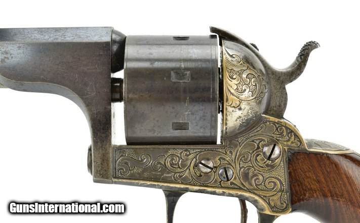 Moore’s Patent Firearms Co. Single Action Belt Revolver. .32 Rimfire caliber. 7-Shot revolver. Bore is near excellent. Action works perfectly. Barrel length 4”. Revolver has approximately 85-90% blue. Frame is factory engraved. Frame has approximately 60% original tarnished silver. Grips are near excellent with 98% original varnish with very minor handling marks. Overall a very fine Moore Civil War period revolver. Note: Many of these were private purchased by Union Army Officers!