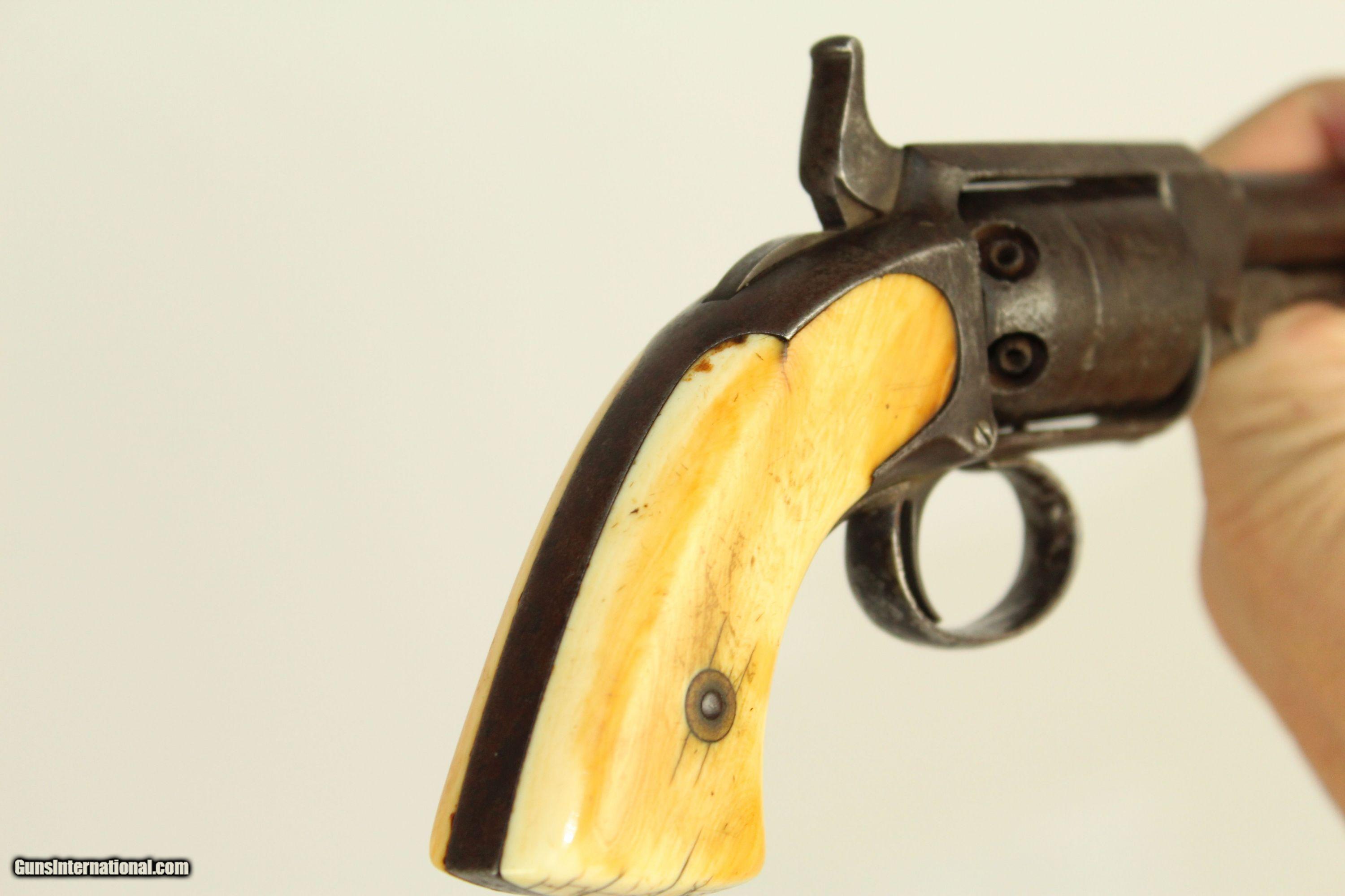 Description: RARE Antique WARNER Percussion Pocket Revolver Civil War Pocket Pistol 1 of only 9,000 Made Here we present an antique James Warner Patent Percussion Pocket Revolver, made circa 1860, in Springfield, Massachusetts. James Warner was a prolific inventor and gun maker who was at one time or another engaged with the following gun makers: Springfield Arms Co., Massachusetts Arms Co. Edwin Wesson, Wesson Stevens & Miller, and Warner & Wesson. He managed to distinguish himself from many other gun makers by being sued for patent infringement and losing twice, to Colt and to Smith & Wesson, respectively—once with a percussion design and once with a cartridge design. As would be expected, he had to stop production in each instance. The first occasion was with Warner’s preemptive manufacture of a revolving percussion rifle, since Colt’s patent was about to expire, when, in fact, Colt received a patent extension. He was forced to cease production and label his guns for S&W on the second occasion. This revolver features antique ivory grips. The top strap of the frame is marked “JAMES WARNER SPRINGFIELD MASS. U.S.A.” The cylinder holds 6 shots of .31 caliber ball. The cylinder is marked with “WARNER’S PATENT 1857”. Note that this was the same year in which Colt’s patents expired. The overall condition is very good. The steel has a pleasant aged patina. The markings are clear and legible. The serial numbers match. The antique ivory grips are solid. The bore is rifled and clean. The action is strong. Own the original! This is a legitimate antique and not a reproduction. Barrel is 4 inches in length. Caliber: .31 percussion Overall condition as seen in photos. Very Fast. Very Safe. FREE SHIPPING WORLDWIDE. Delivered directly to your door by express mail! Guaranteed AUTHENTIC & Includes CERTIFICATE OF AUTHENTICITY. ancestryguns $1200 #21950 SOLD Antique: Yes |