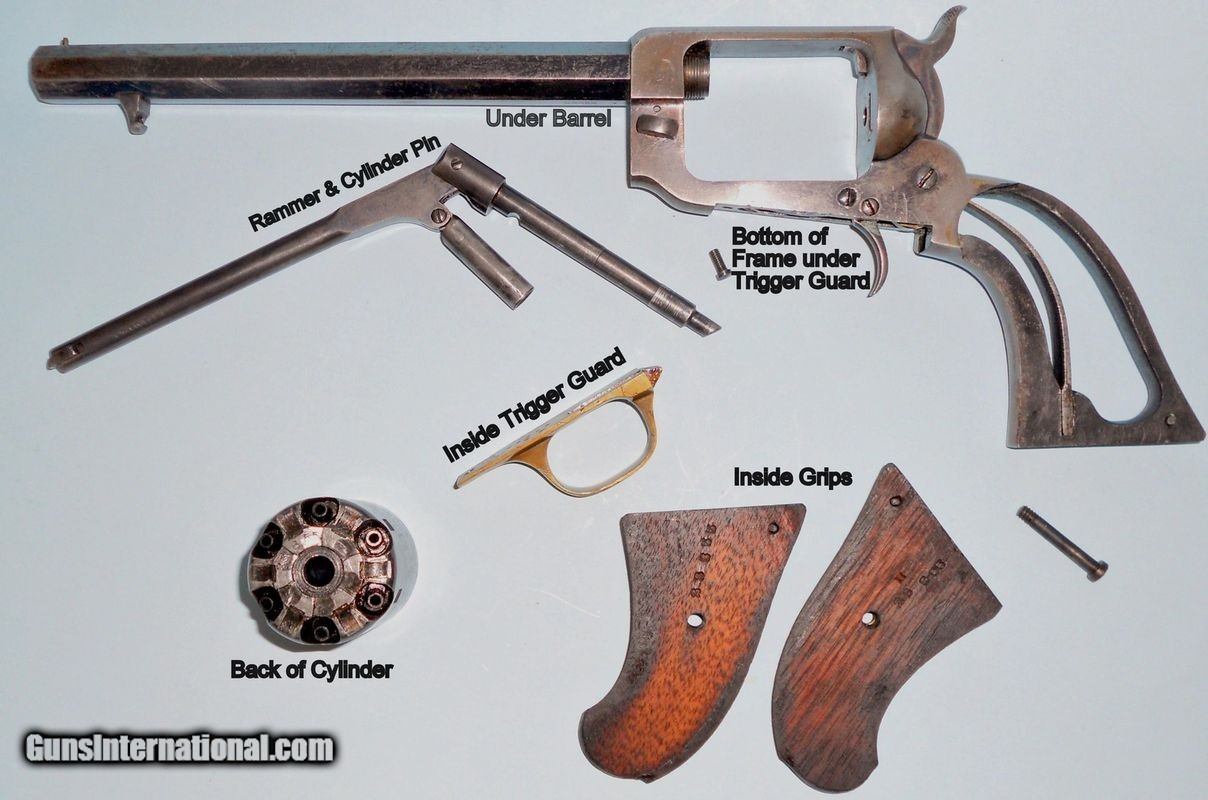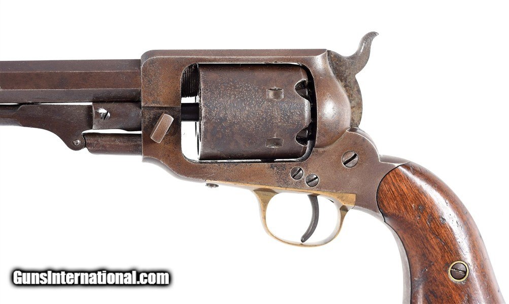 Description: ~BLACK FRIDAY SUPER SALE $2280 !!! The most famous and easily recognized revolver manufactured by Eli Whitney, Jr . was his Navy Model This revolver came on the scene just prior to the War Between the States. Whitney Navy single action percussion revolver. Made early 1860s. Top of the barrel is marked "E.WHITNEY/N.HAVEN". Serial numbered marked on the bottom of the barrel. Octagon barrel with pin front sight and v-notch cut out rear. Original finish having formed a nice brown patina. Brass trigger guard. Walnut grips are numbered to the gun. Whitney obtained a contract with the US Army in 1862, and provided about 7,602 revolvers through 1863. The Army also obtained Whitney revolvers through other private vendors as well, resulting in over 10,000 Whitney Navy revolvers being used by the Army. The US Navy purchased 6,226 Whitney revolvers during 1863-1865 CONDITION: Metal retains some of its original finish. Brass trigger guard has some tarnish, grips have expected troop handling marks . Bore is relatively clean, with some light pitting near the muzzle. Tight hammer and cylinder. This is very nice Civil War Battlefield weapon, a true piece history on our way to becoming The United States. It will make for wonderful addition to any Civil War or Military display and you wont go broke getting there. A nice Legacy piece for your Heirs. SOLD Antique: Yes |