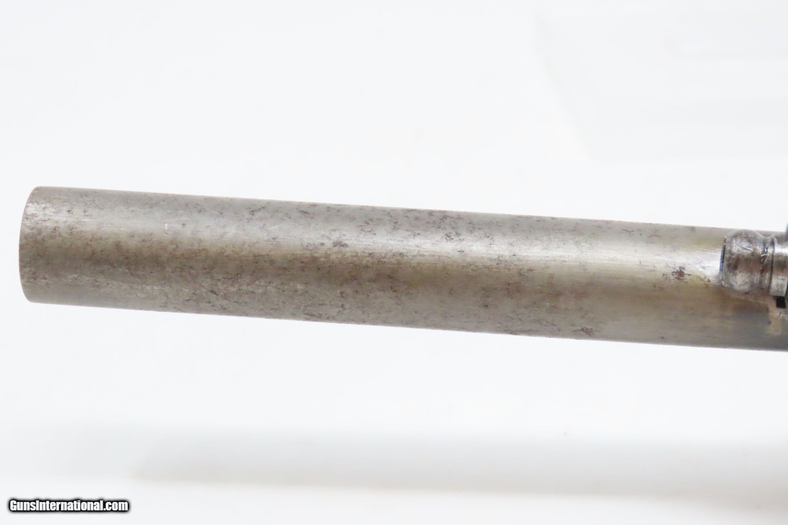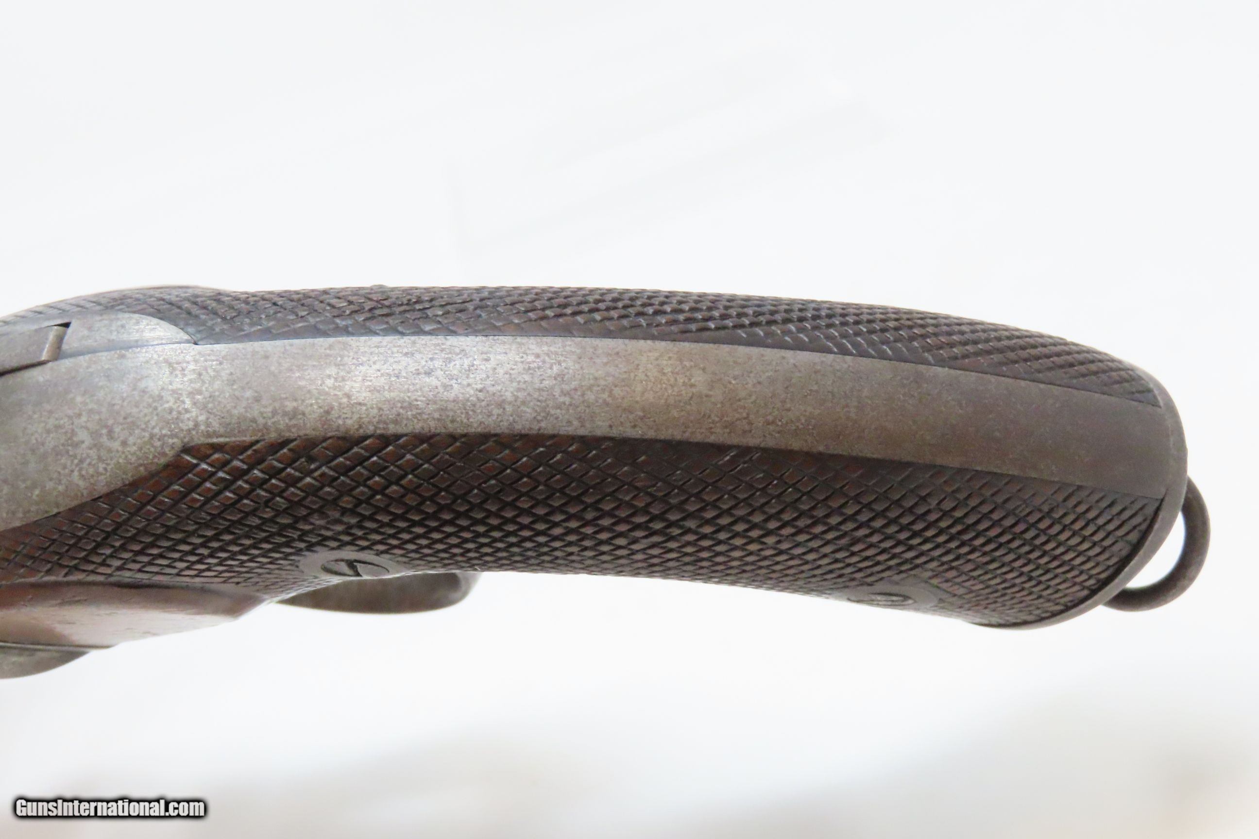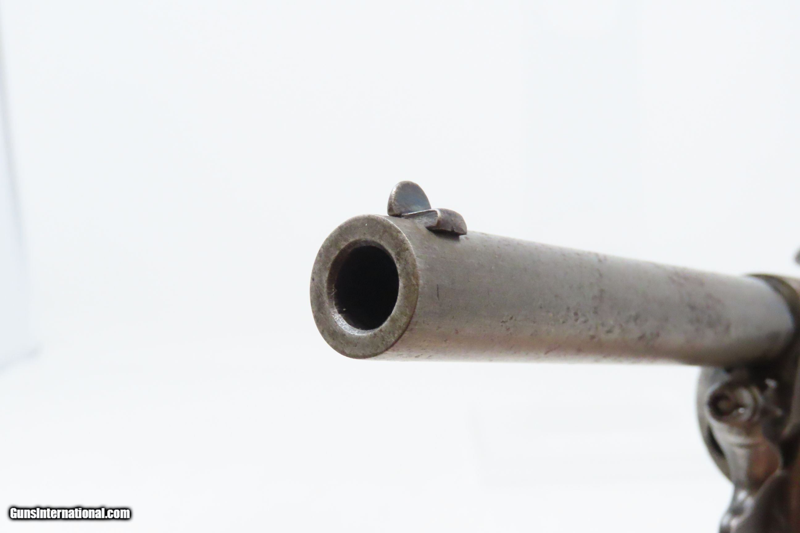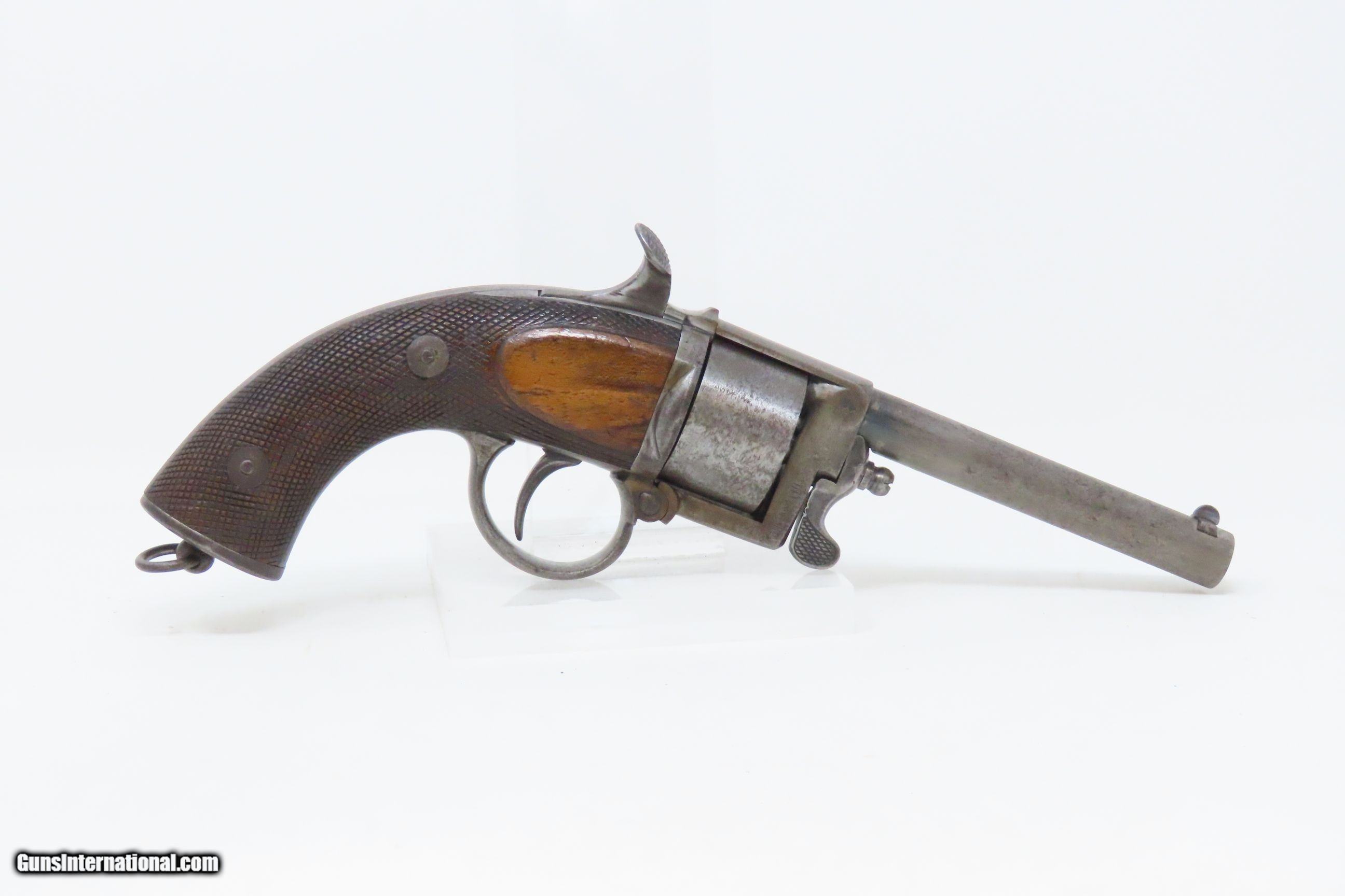 Description: RARE c1859 9.4mm DEVISME PARIS Single Action Revolver Civil War CSA Antique One of the Earliest Centerfire Cartridge Revolvers! Here we present an antique Devisme “Model 1859” Single Action Revolver, made circa 1859 in Paris, France. Jean-Louis François Devisme was a well-known, high-quality gunmaker who was known for his award-winning and innovative designs for firearms and swords. This is one of the first centerfire metallic cartridge firearms. While the Lefaucheuxs had developed their trademark pinfire cartridges and firearms and Smith & Wesson was developing their .22 and .32 rimfire cartridges and firearms, Devisme was adapting his previous percussion revolver to centerfire use. Among his most famous clientele in North America were Confederates General Robert E. Lee, General J.E.B. Stuart, General John Bell Hood, and President Jefferson Davis. Royalty in England, Franch, Russia, and Egypt were also known to have Devisme’s weapons in their collections. This revolver is sleek and streamlined. It features 6 shots of 9.3mm centerfire. The barrel tips down upon the lever on the front being turned to the side. The top of the barrel is hand-engraved “Devisme a Paris”. The frame is marked “DEVISME BTE” with a Maltese Cross nearby. It has a flat pommel with a lanyard ring. Being put into production in 1859 some of these were used during the American Civil War. The overall condition is very good. Original patina. The action is excellent and tight. The bore is bright with sharp rifling. The stocks are hand-checkered and solid. This is a fantastic and unique design that can probably be considered the very first and certainly best on the market centerfire repeater! Own the original! This is a legitimate antique and not a reproduction. Barrel is 3-1/4 inches. Caliber: 9.4mm Devisme Centerfire (.369) Overall condition as seen in photos. Very Fast. Very Safe. FREE SHIPPING WORLDWIDE. Delivered directly to your door by express mail! Guaranteed AUTHENTIC & Includes CERTIFICATE OF AUTHENTICITY. ancestryguns $4800 #230087 SOLD Antique: Yes |