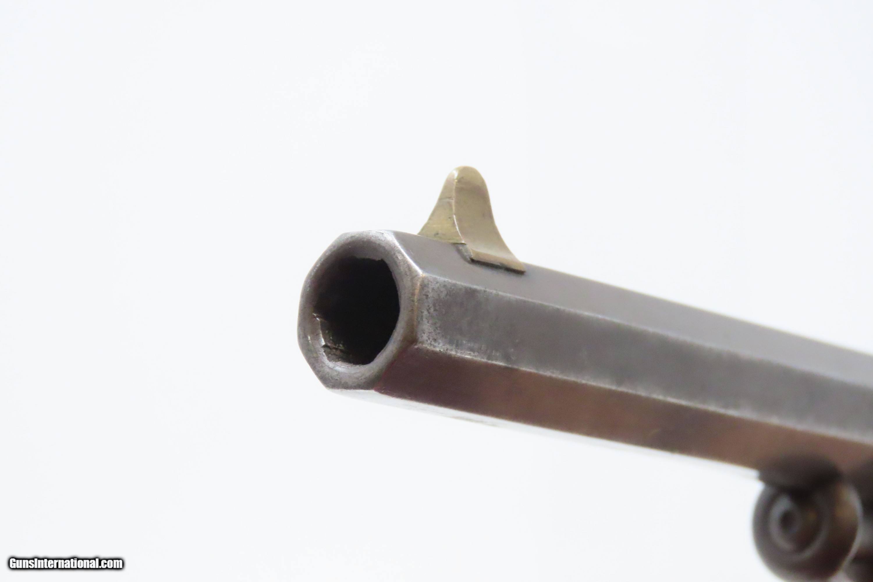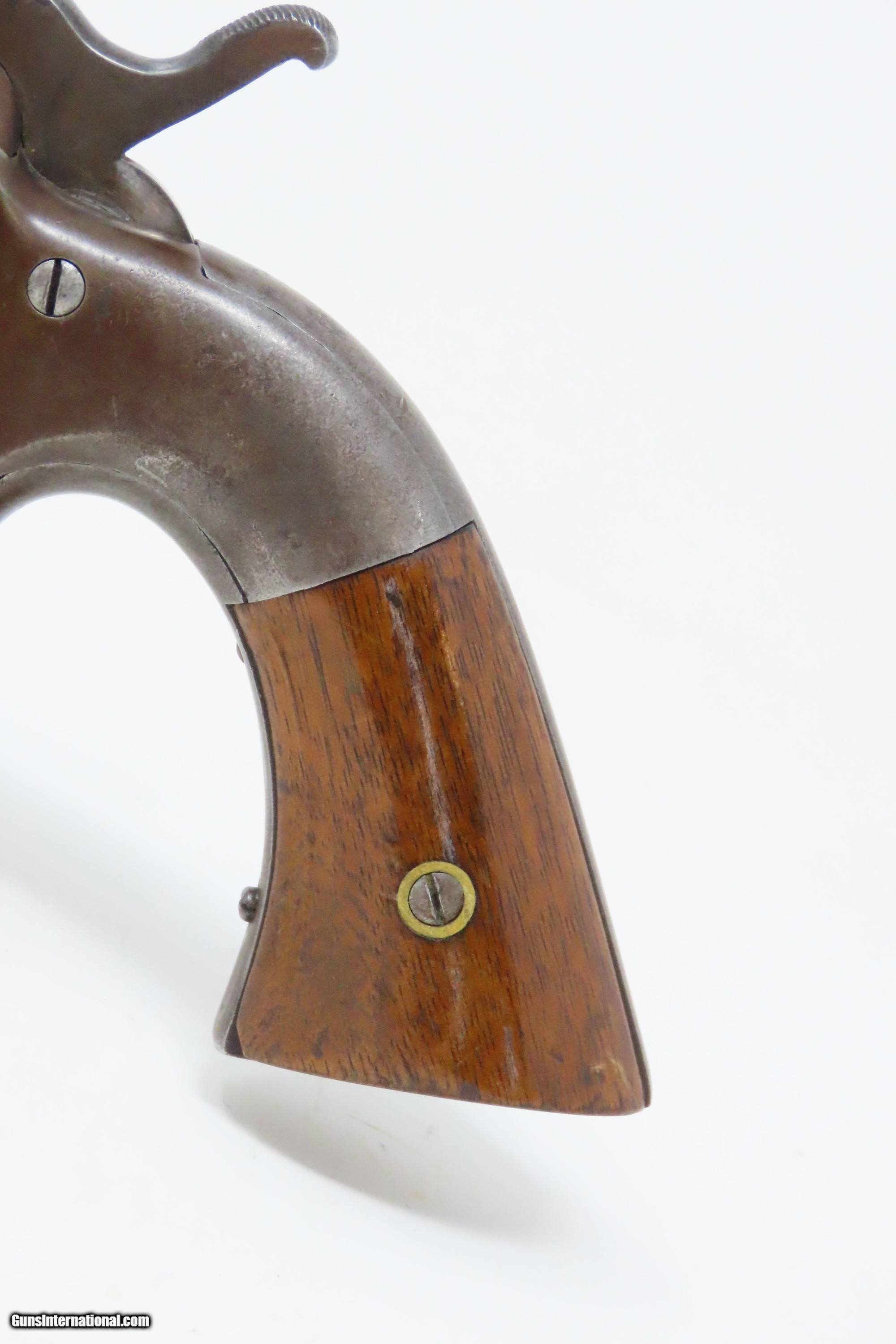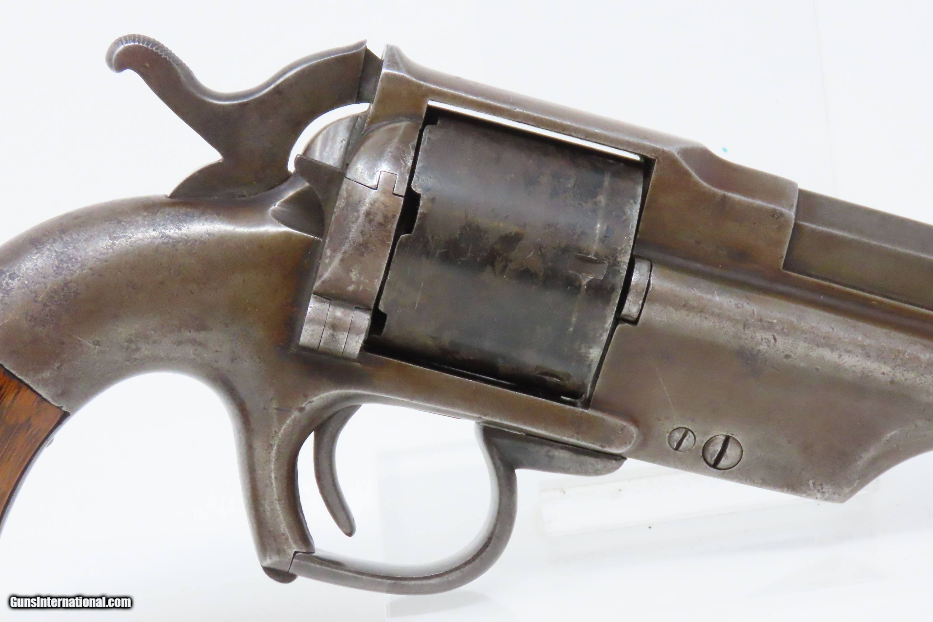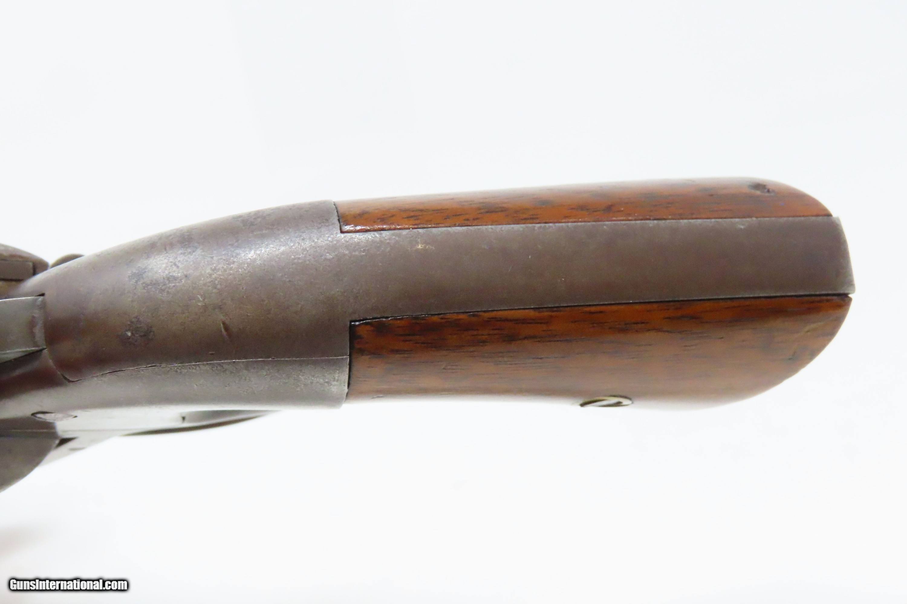 Description: RARE CIVIL WAR Antique ALLEN & WHEELOCK .36 Lipfire NAVY Revolver Worcester 1 of 250 .36 Cal. LIPFIRE Revolvers Made circa 1861 Here we present a very rare antique Allen & Wheelock Navy Lipfire Revolver, made circa 1861-62 in Worcester, Massachusetts, at the start of the American Civil War. According to Flayderman, these revolvers only had a production of about 250 pieces till Allen & Wheelock ran into the Rollins White patent infringement. They were for the most part converted to percussion to resolve the problem. Of those 250 Lipfires manufactured, many were converted, so finding an original revolver still in Lipfire are few and far between. Allen & Wheelock manufactured a total of approximately 700 of these Center Hammer revolvers with, as mentioned, the first 250 being Lipfire. Of these 700, the Ordnance Department purchased 536 of these revolvers in 1861. Nearly all those guns were subsequently issued to the 2nd & 3rd Michigan Volunteer Cavalry regiments. As these revolvers were purchased on the open market, they were not marked with any U.S. military sub-inspection or final inspection marks (including cartouches), as are found on the guns acquired via official Ordnance Department contracts. Surviving examples are rare. This Allen & Wheelock Navy Revolver is a .36 caliber, six-shot, Lipfire single action revolver that had a 6” octagon barrel that utilized a unique ratcheting loading lever that formed the trigger guard of the revolver. The frames, cylinders and barrels of the revolvers were blued with the hammers and the combination loading lever and trigger guards color casehardened. The grips were smooth two-piece walnut that were usually varnished but appear to have been oil finished on some examples. Despite the relatively small number produced, the revolvers were manufactured in three distinct variants. A fine nickel Army caliber version with extensive engraving by Gustav Young and hand-carved ivory grips is thought to have been the personal weapon of Ethan Allen. The overall condition is good. The bore is bright and nicely rifled. Good grips. The action partially functions, as the cylinder does not properly index. Legible markings. Here is a very RARE and attractive revolver from one of the 19th Century’s most prolific makers! Own the original! This is a legitimate antique and not a reproduction. Barrel is 6 inches. Caliber: .36 Lipfire Overall condition as seen in photos. Very Fast. Very Safe. FREE SHIPPING WORLDWIDE. Delivered directly to your door by express mail! Guaranteed AUTHENTIC & Includes CERTIFICATE OF AUTHENTICITY. ancestryguns $1950 #227988 SOLD Antique: Yes |