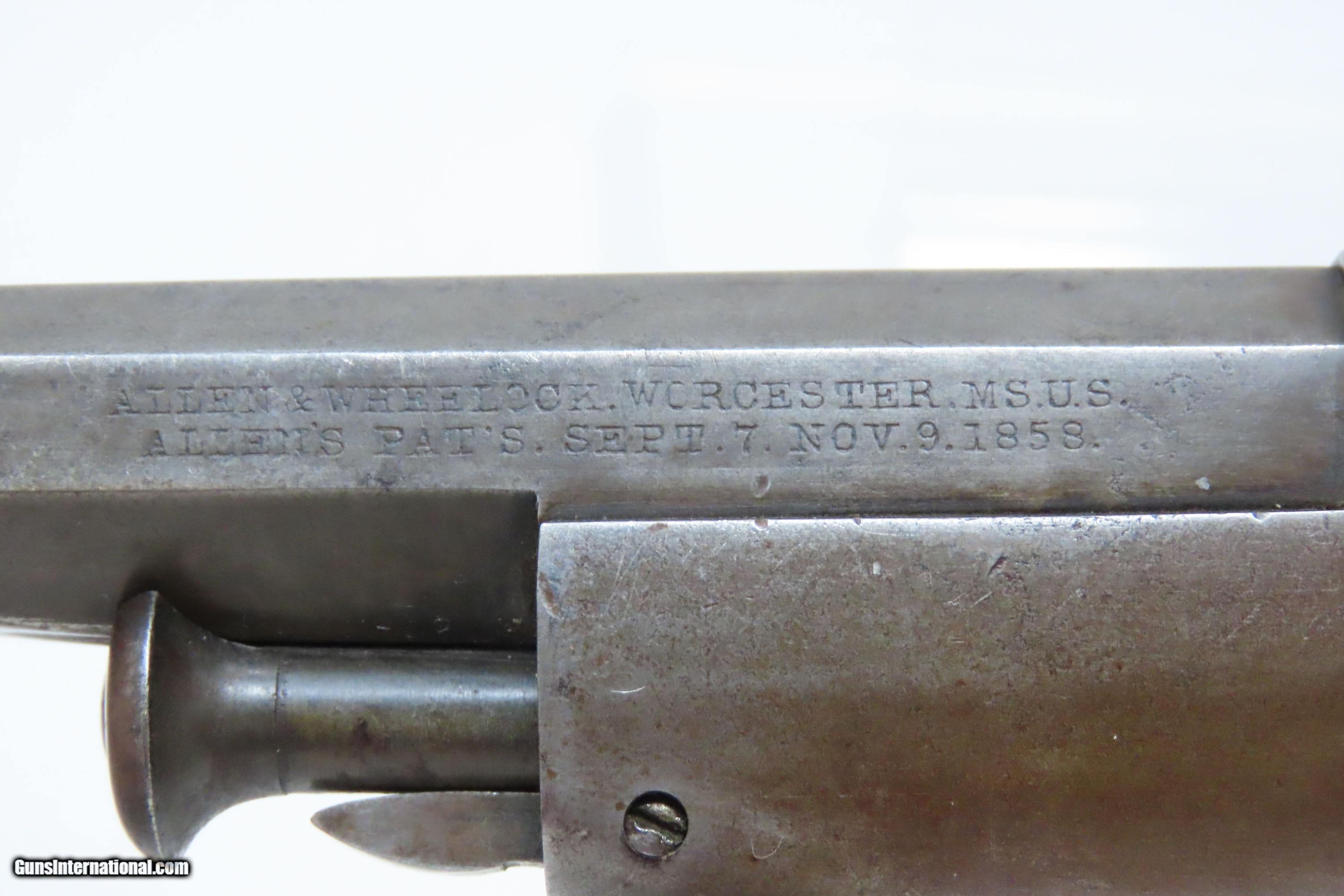 RARE CIVIL WAR Antique ALLEN & WHEELOCK .36 Lipfire NAVY Revolver Worcester 1 of 250 .36 Cal. LIPFIRE Revolvers Made circa 1861