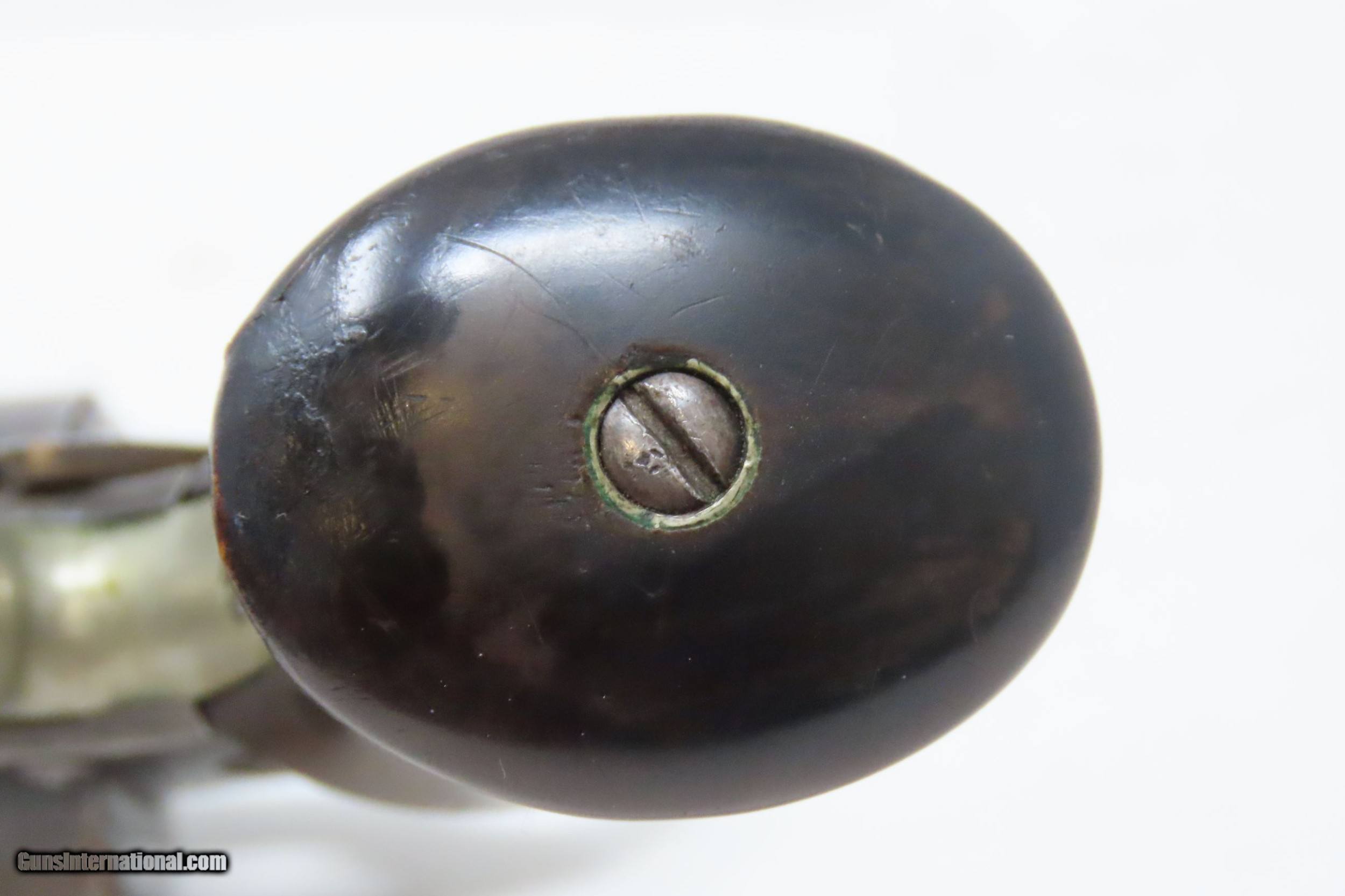 Description: Rare CIVIL WAR Era REMINGTON-BEALS First Model .31 Cal. Percussion REVOLVER Manufactured at the Remington Armory in Ilion Here we present a rare Remington-Beals percussion revolver, manufactured circa 1856-1858 at the Remington Armory in Ilion, New York. Estimated that only as many as 5,000 made total. Fordyce Beals (1807-1870) was a firearms engineer who worked both for the Whitneyville Armory and then the Remington Armory in the mid-1850s. During his time at Remington, he developed what would become the Remington-Beals 1st Model, a 5-shot pocket revolver which appeared in mid-1856. Though this design allowed Remington to break into the civilian gun market, it was more prominent as a revolver that saw service with both sides of the American Civil War. The gun’s design is typical of the period. The grip is integral and covered in wood for comfort, and the solid frame added robustness to the design. Its compact dimensions were respectable, especially with discerning buyers seeking concealment for their firearms. The overall condition is good+. This one wears an old blue refinish. The action has two issues: 1) the hammer does not presently hold full-cock (it does hold half-) and 2) the link between the hammer and the hand to revolve the cylinder is absent. The bore is in nice shape with reflective surfaces and sharp rifling. The grips are near fine. A rare little Remington that will fill the hole in a collection! Own the original! This is a legitimate antique and not a reproduction. Barrel is 3 inches. Caliber: .31 Percussion Overall condition as seen in photos. Very Fast. Very Safe. FREE SHIPPING WORLDWIDE. Delivered directly to your door by express mail! Guaranteed AUTHENTIC & Includes CERTIFICATE OF AUTHENTICITY. ancestryguns $1600 #220606 SOLD Antique: Yes |