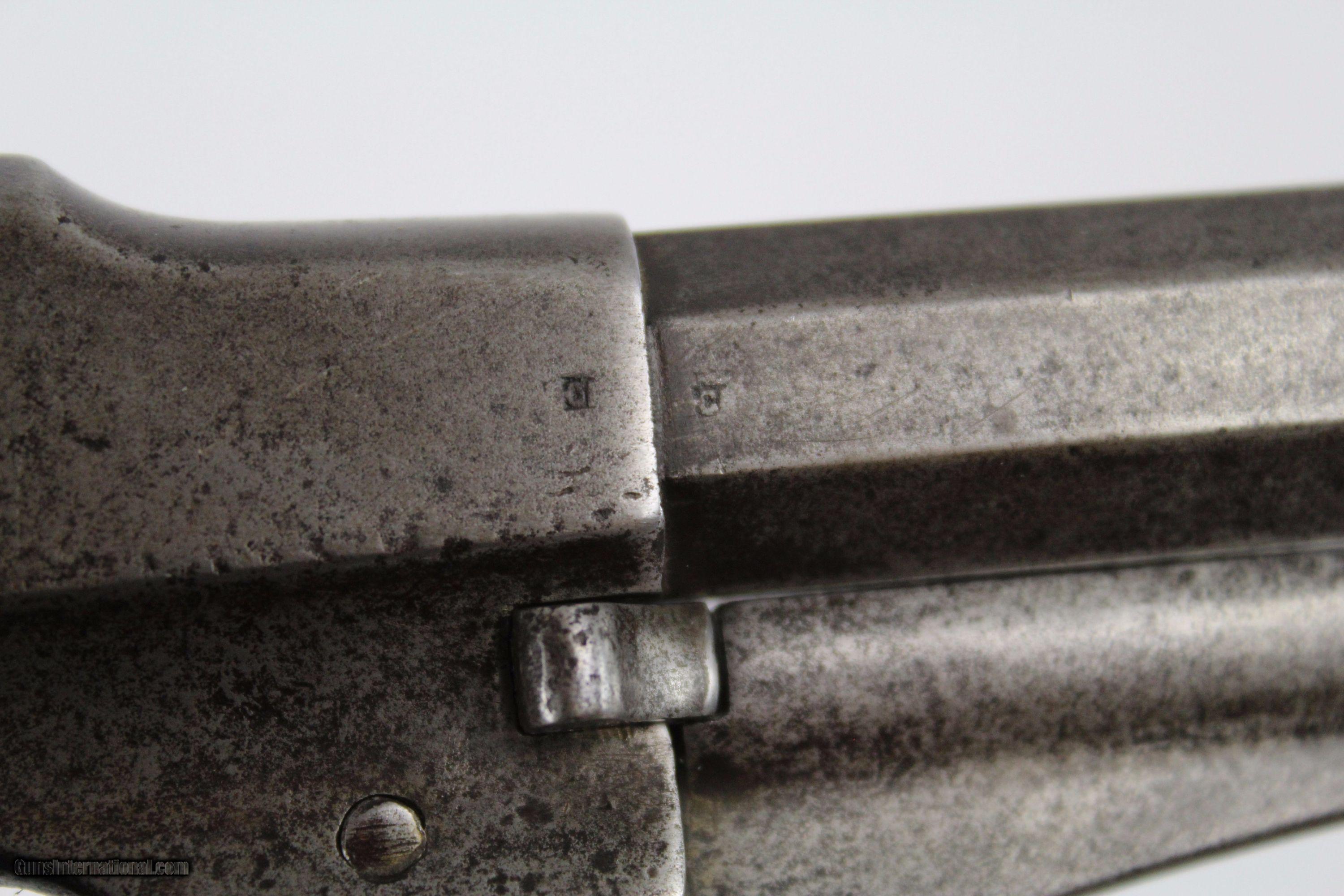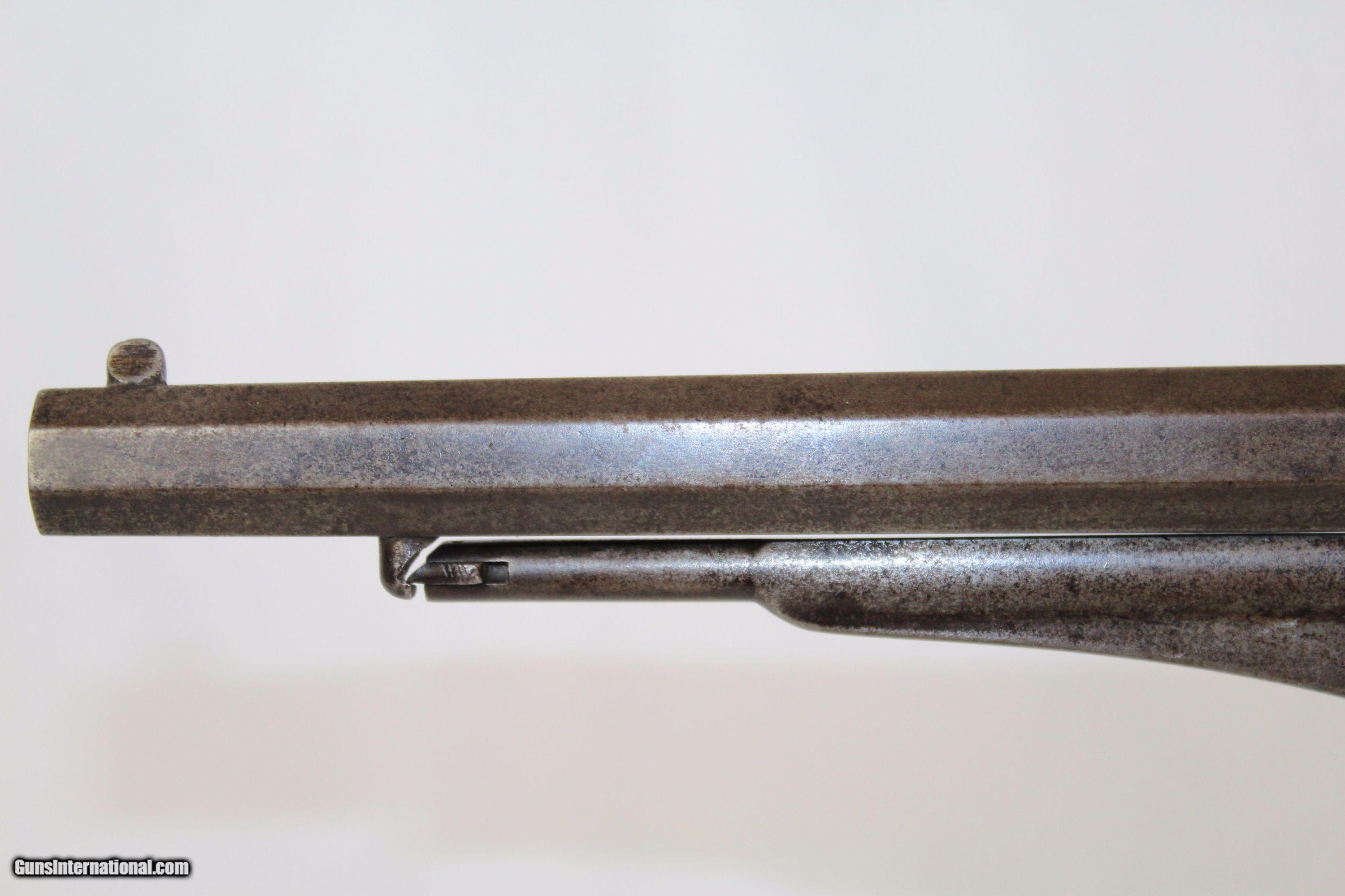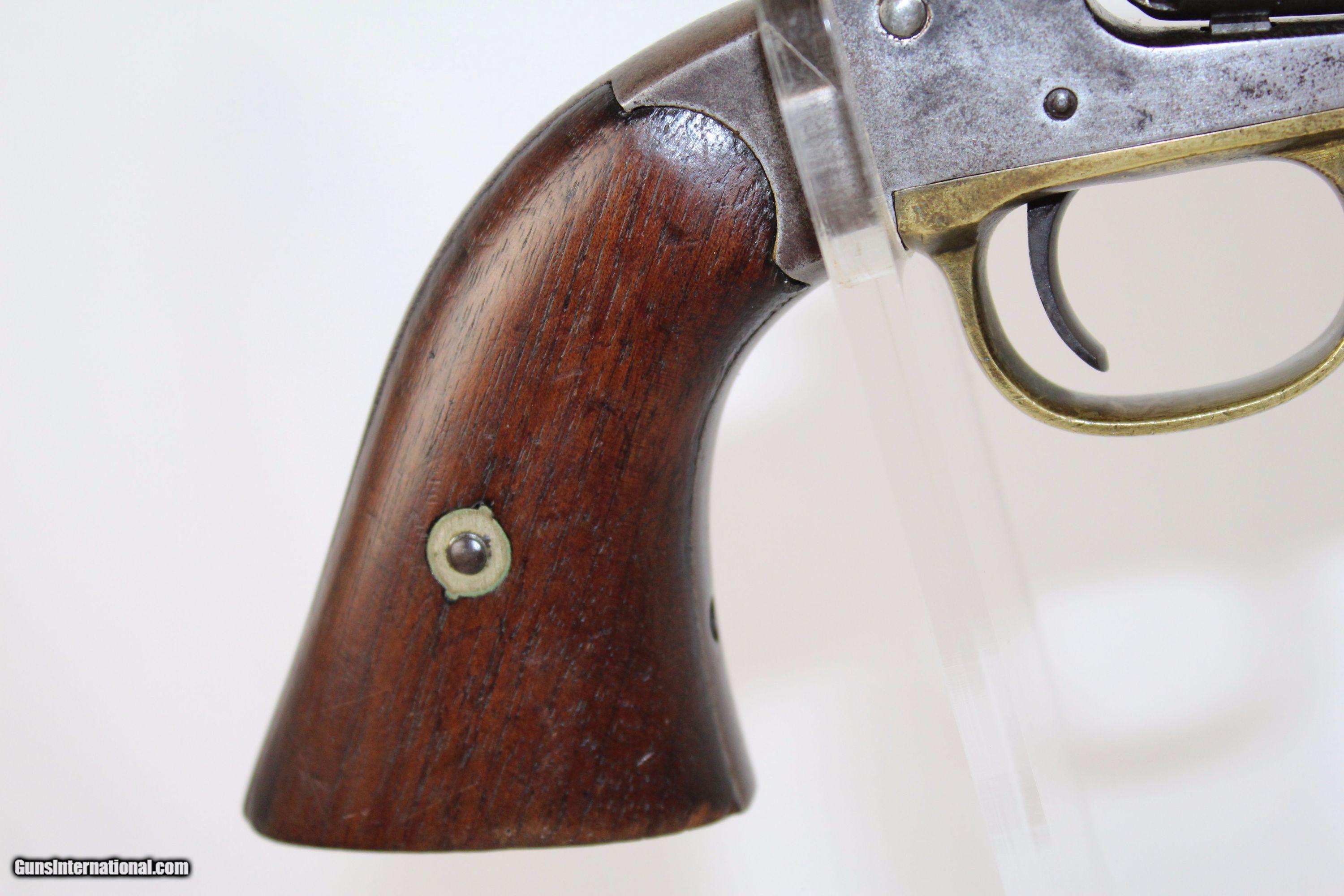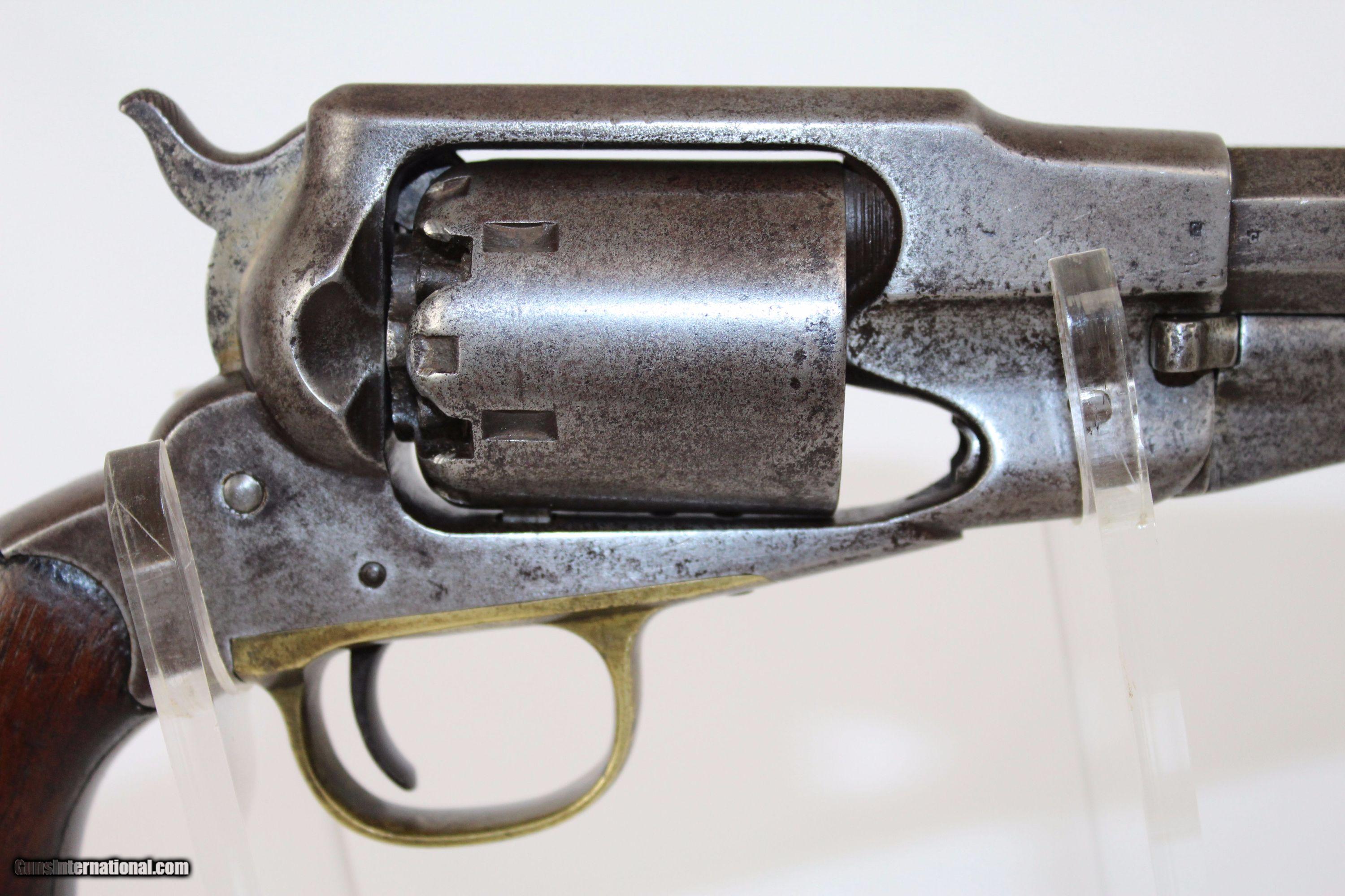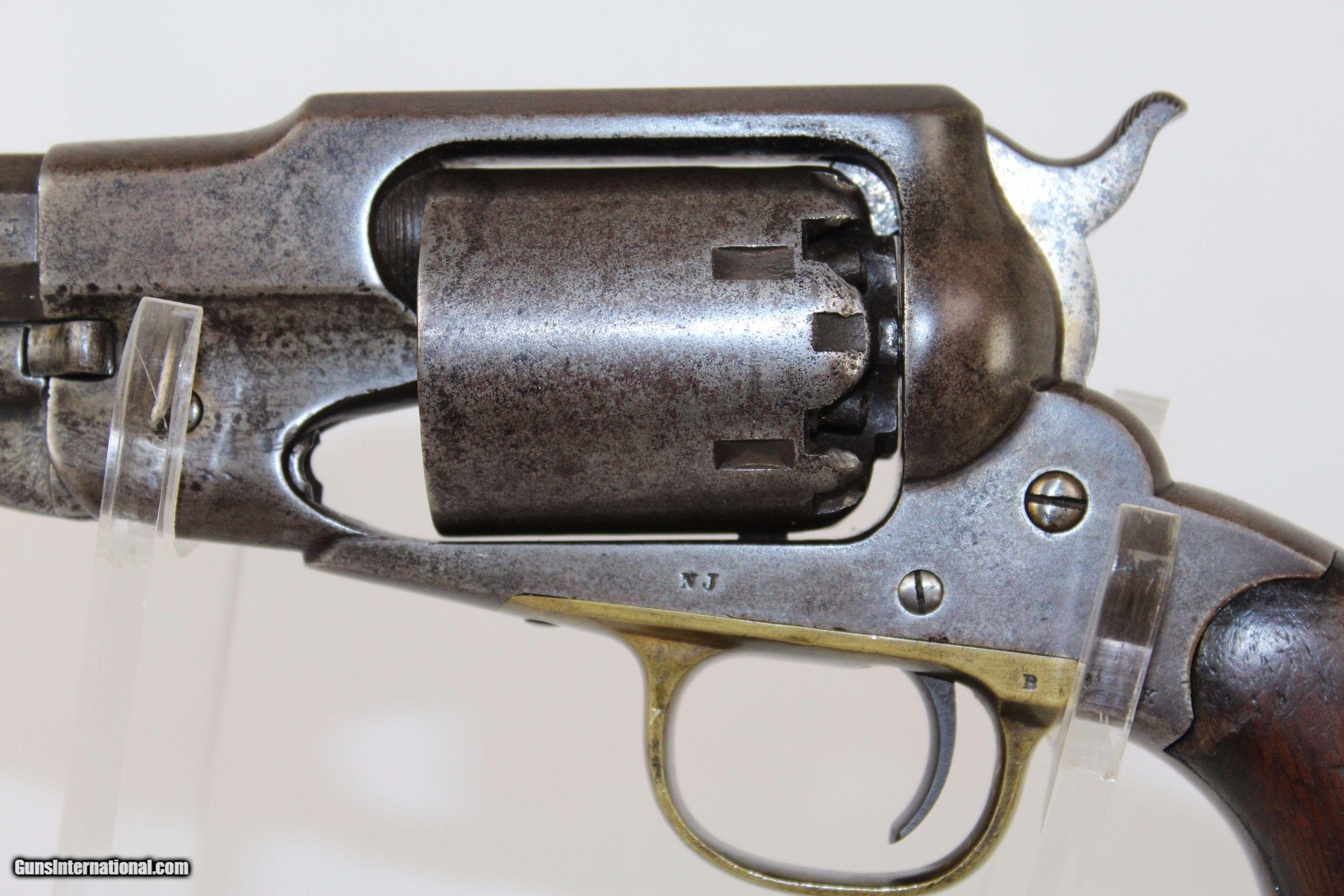 Description: RARE & LETTERED New Jersey Contract Remington Army New Model Army Revolver Issued in 1864 to NJ Militia Here we present an antique Remington New Model Army Revolver, issued to the New Jersey State Militia in 1864, during the American Civil War, according to the accompanying Remington Museum Archive Letter. Only 1,000 of these revolvers were made on this contract, a tiny fraction of the entire production. New Jersey contributed greatly to the Union war effort, fielding over 88,000 troops, a significant portion of which was integrated into the Army of the Potomac. The Remington New Model Army represents the second-most number of issued handguns found on Civil War battlefields, second only to the Colt 1860 Army. The Remington featured a strong, solid-frame design with the groove in the top for a rear sight, as opposed to Colt’s open-top design. Though Colt got the lion’s share of the government contracts, many consider the Remington New Model Army the superior firearm. This example features “NJ” markings on the rear portion of the barrel and the frame on the left side. Small government inspector markings are found throughout. The barrel address reads “PATENTED SEPT. 14 1858/E. REMINGTON & SONS ILION NY USA”. The overall condition of the piece is very good. The metal surfaces have an untouched, dark patina. The markings are clear and legible. Serial numbers match. The walnut grips are smooth and in very good condition. The grips also match the serial number. The bore is sharp and clean. The action is excellent. Here is a very nice example of a rare, New Jersey State Militia issued Remington New Model Army, complete with a Remington Museum Letter from 1980! This is not something you find every day. Own the original! This is a legitimate antique and not a reproduction. Barrel is 8 inches. Caliber: .44 Percussion Overall condition as seen in photos. Very Fast. Very Safe. FREE SHIPPING WORLDWIDE. Delivered directly to your door by express mail! Guaranteed AUTHENTIC & Includes CERTIFICATE OF AUTHENTICITY. ancestryguns $3500 #5005 SOLD Antique: Yes |