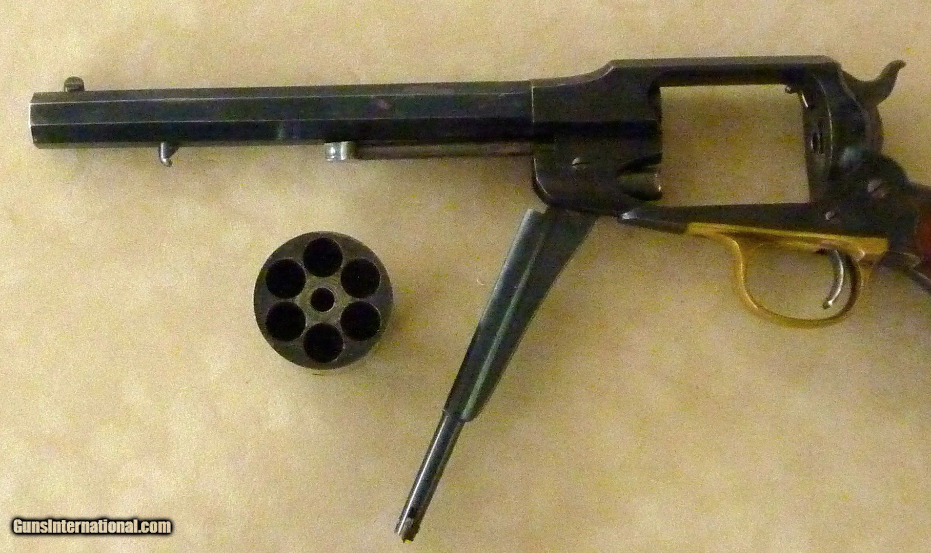 Description: Excellent, all original U.S. Civil War, Remington New Model Army 1858 revolver, .44 cap & ball. This revolver has moct of the original blue and case hardening, excellent bore and chambers. The minumal finish wear seems to be from long-term storage in a holster. All the numbered parts match and are original. All the factory markings/stamps are clear and legible. The grips have the correct GP stamp and are number matched to the gun. This gun is in remarkable condition with excellent mechanics, in perfect working order. A wporthy example for even the advanced collector. SOLD Antique: Yes Handgun Caliber: .44 |