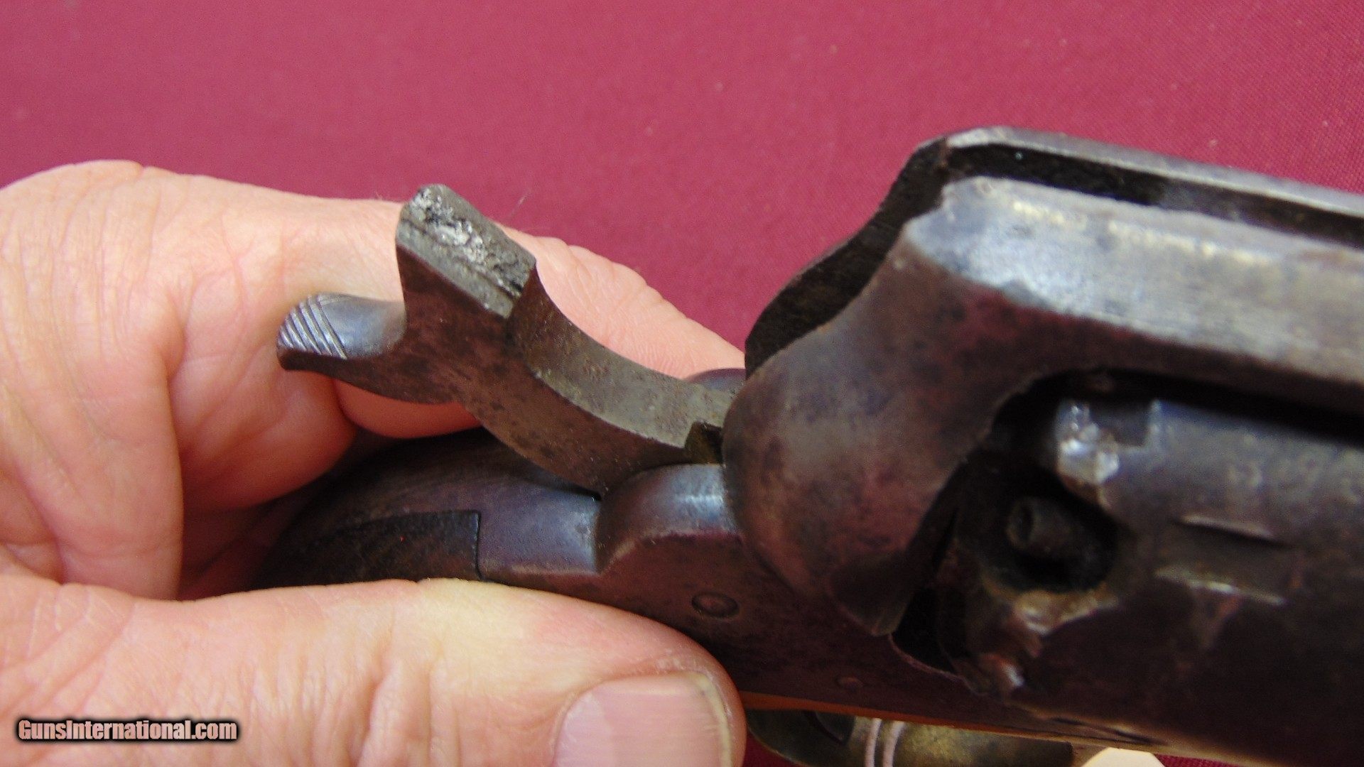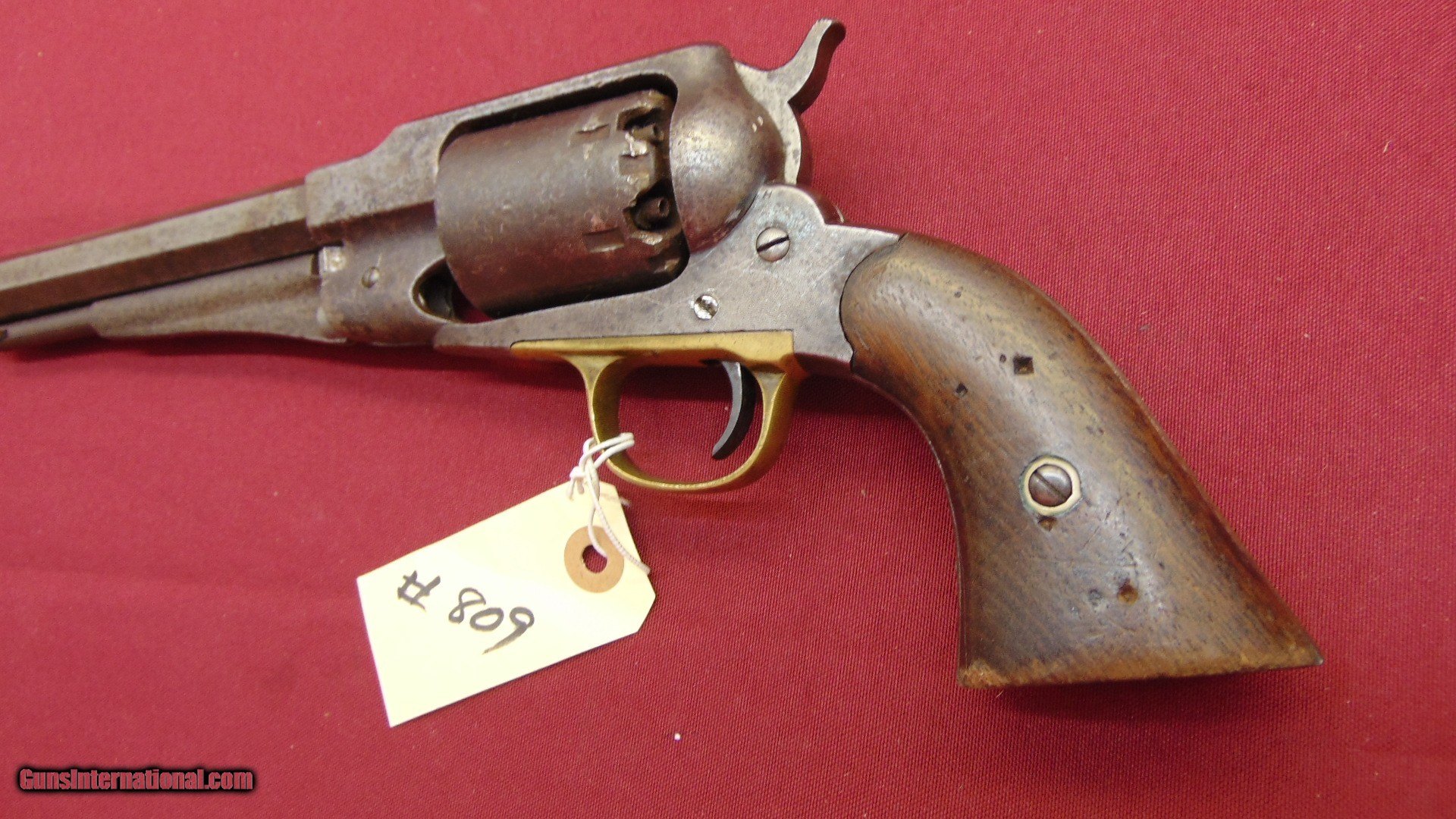 Description: REMINGTON MODEL 1858 CIVIL WAR ERA REVOLVER . CALIBER 36 PERCUSSION . 7 1/2" OCTAGON BARREL WITH APRETTY DESCENT BORE. ACTION FUNCTIONS AND WORKS. NUMBER 92742 ON THE UNDRSIDE OF THE BARREL . NUMBER 92922 ON THE FRAME UNDER THE GRIP. FACE OF THE HAMMER HAS BEEN REMOVED AND CYLINDER PIN LOOKS LIKE IT WAS MODIFIED. SELLING AS IS . ADD 35.00 UPS 2ND DAY AIR SHIPPING ANTIQUE - NO FFL LIC REQUIRED EASTERN BRANCH FIREARMS Questions e-mail or call Glen at Eastern Branch Firearms 207-215-5021 Fax number 207-588-7605 TERMS – PLEASE READ BEFORE I DO NOT HAVE A LAYAWAY OPTION ( I DO ACCEPT CREDIT CARDS ) -- I GET ALOT OF REQUEST FOR TRADES, I WOULD PERFER NOT TO DO TRADES ON MY INTERNET LISTINGS. LEGAL REQUIREMENT- Modern firearms must be transferred through a licensed FFL dealer in your area. to supply a signed copy of local dealer’s license before shipment will be made. A C&R License is acceptable for C&R firearms only (guns determined to be C&R’s by ATF and guns known to be at least 50 years old). California law will NOT allow shipment of C&R handguns direct to a C&R holder in the State of California, a 01 FFL LIC. dealer must be used. Antique firearms require to supply proof of age. Some areas still require an FFL transfer for antique & black powder firearms (New Jersey, NYC, etc.) Large capacity magazine restrictions: New Jersey - 15 round maximum for semi-automatic firearms only. California - 10 round maximum for all magazines. Maryland - 20 round maximum for all magazines. Massachusetts - over 10 rounds. Hawaii - 10 round maximum for all handgun magazines. PAYMENT OPTIONS- We accept money orders, cashier’s checks , bank checks. sorry no personal checks. We accept all major credit cards please add 3% to the ’s cash discount price.(Maine Residents to pay 5% sales tax) .Handguns and long guns do need to be shipped separate. PLEASE do not send payment via FED EX . USPS & UPS are fine. Thank you. We include a signed copy of our FFL with each firearm shipped. AMMO •WARNING: Buyer must be over the age of 21 with proof of age to purchase. All state, local and federal laws apply. Please do notif you are prohibited from buying this item in your area. No ammunition will ship to prohibited areas such as the cities of Los Angeles, Oakland and San Francisco. No Shipments to Massachusetts, New York City or Washington D.C. No Shipments to Chicago, IL residents must provide a FOID card. We cannot ship to Alaska or Hawaii. If you are a resident of one of these areas please do not bid. Thank you. SAFTY NOTICE- Buyer is solely responsible for determining that a used gun is safe to shoot. The firearms offered have not been test fired but have been given a visual inspection only for purposes. It is a requirement that every used firearm is inspected by a qualified gunsmith before firing. By , the buyer agrees to hold seller harmless against damages, injury, or death caused by defective merchandise. RETURN POLICY- All firearms come with a 3-day non firing , non messing with ( turning srews ,taking apart,removing parts, scoping. firing, cleaning or messing with in anyway) inspection/return privilege.Inspection is based on a visual review of the gun to confirm the gun is in the condition stated. In the case of a return, buyer pays all shipping charges & if paid for with a credit card buyer absorbs the 3% credit card charges . So please ask questions BEFORE you bid. Thanks for Looking and Good Luck!! U.S. sales only, no exports…this includes antiques. I will ship to third party for exporting- SOLD Antique: Yes |