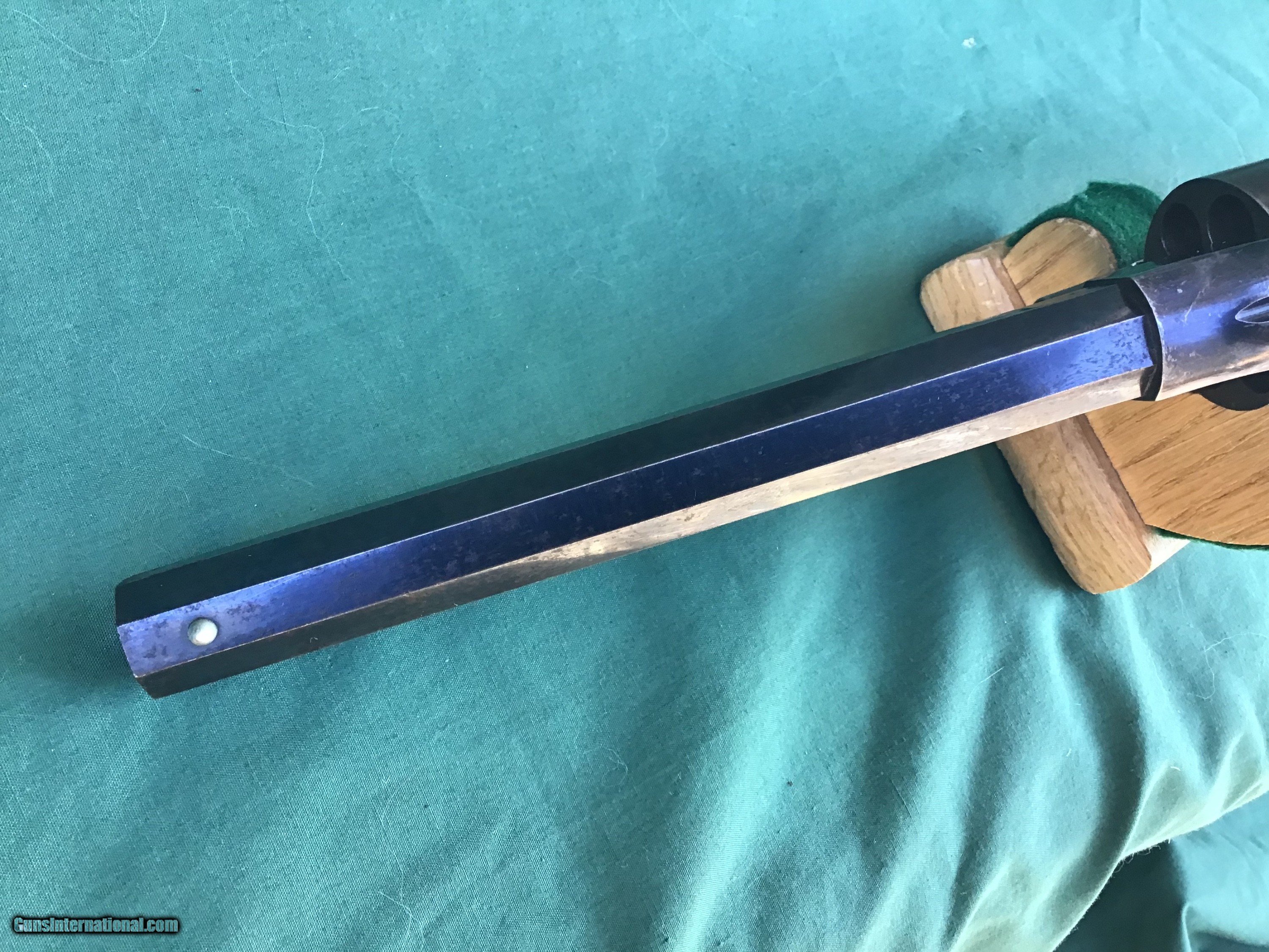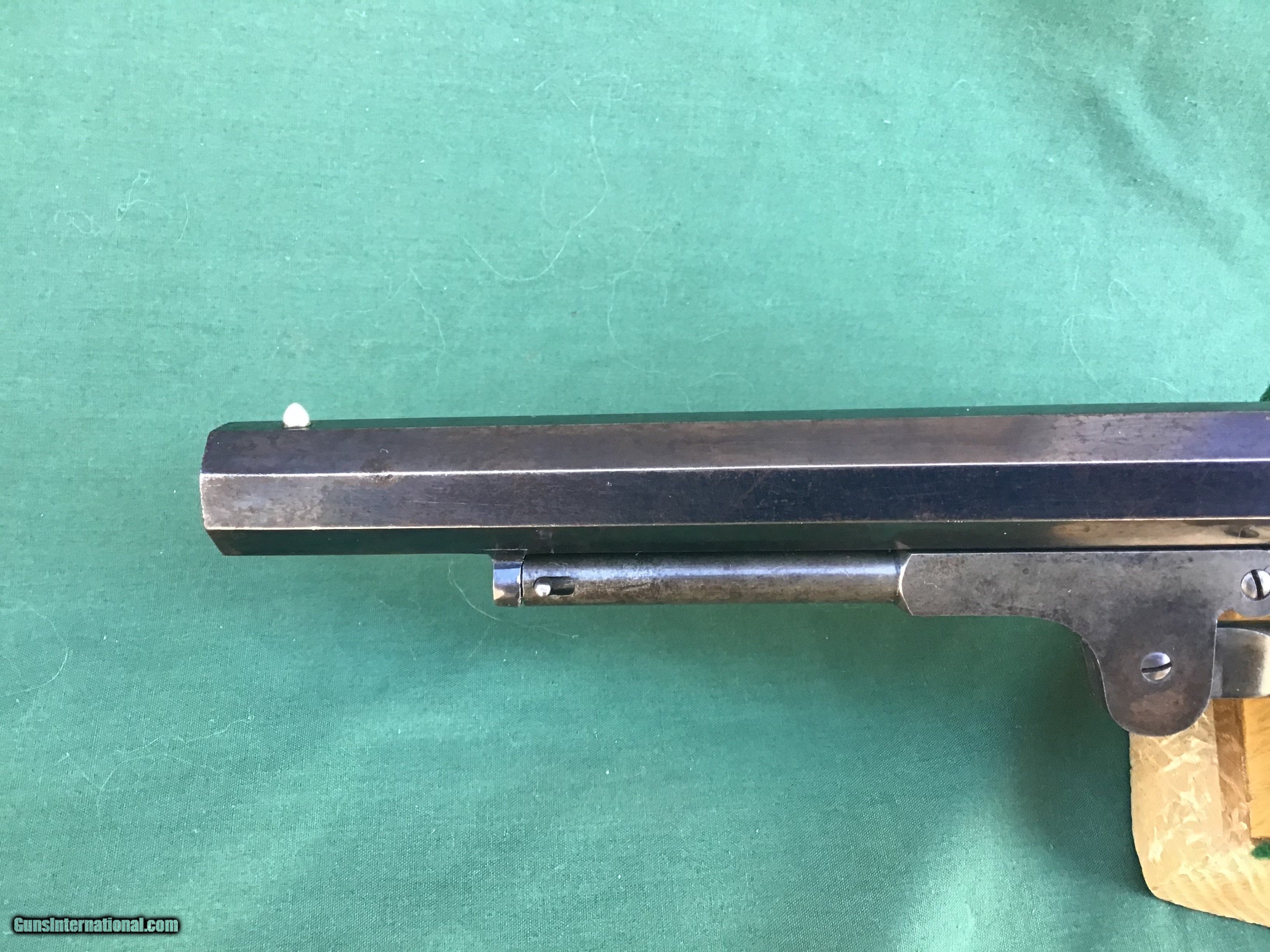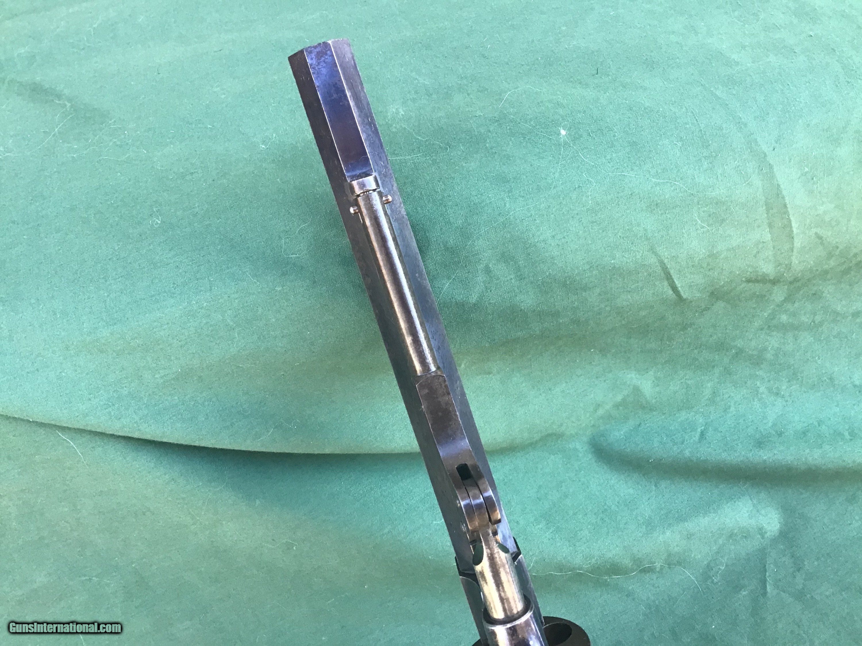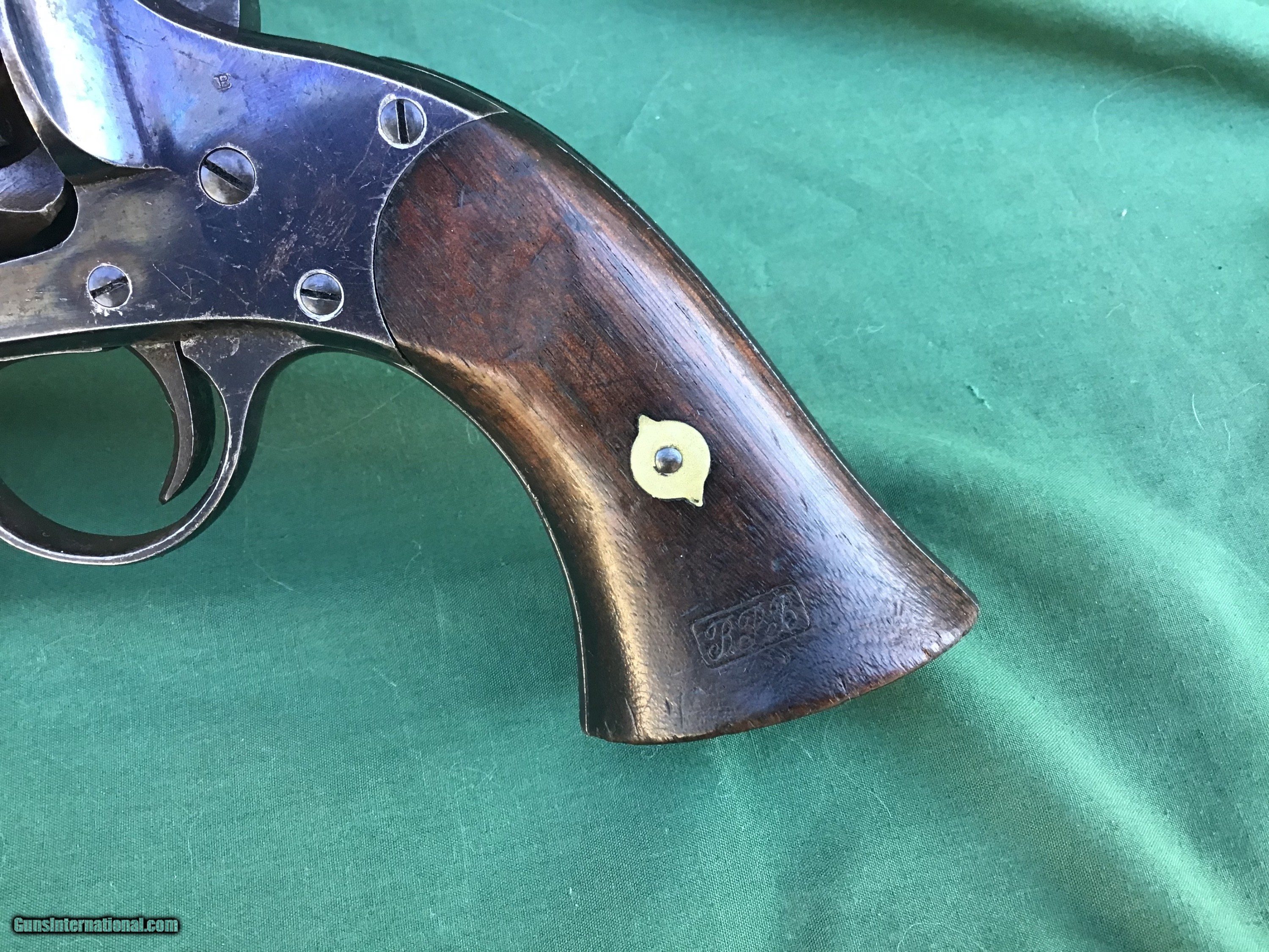 Description: Rogers and Spencer Revolver serial number 1194. It has all matching serial numbers. Very nice grips with inspector marks and cartouche. Some light chipping on right grip on lower edge (see pic). Barrel retains 85 to 90% original blue. Receiver exhibits about the same 85 to 90%. Case colors are still showing on loading lever. All the sub inspector marks are present on the various parts. Blackstrap retains 70 to 75% original blue as well. Silvered out case colors on hammer and cylinder exhibits a nice brown patina. Nice bore. Gun functions as it should. Hammer functions when fired, but if held back by thumb it's a little sticky. Should be cleaned. Please make no mistake, the revolver indexes and functions properly (great mainspring but sticky / gummy hammer). If your looking for an above average Rodgers and Spencer here is your chance. Please feel free to contact me with questions. SOLD Antique: Yes |