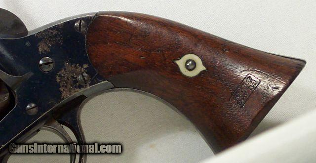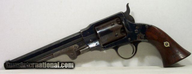 Description: Rogers & Spencer Army Model percussion 44 cal revolver; SN2041; standard model made for Union Army circa 1863-1865; 7 ½” bbl.; six-shot cylinder; 100% correct; ‘RPB’ cartouche on grips; all inspectors marks on medal; most of original Hi-luster blue and case colors remain; most blue wear on cylinder; good condition grips; PERFECT action and bore; GREAT 152+ year old Civil War revolver; antique, no FFL/C&R required for shipping; All items shipped fully insured Priority Mail- -Hand guns $30 --Long guns $45-- Spurs $30-- Knives, Swords & Sabers $30—Grips $20 (Texas residents please add 6.75% sales tax); return policy: three days inspection from the date the item is received; full refund of shipping both ways ONLY IF THE ITEM IS MISREPRESENTED. Note: International sales only as laws permit. Will ship C&R eligible items to C&R license. Antiques shipped without license to anyone EXCEPT New Jersey and City of New York where a FFL is required. SOLD Antique: Yes Manufacturer: Rogers-Spencer Model: Civil War Serial Number: 2041 |