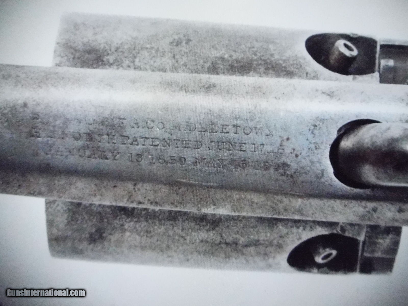 Description: SALE PENDING.....LAYAWAY?..... .36 caliber, 7" barrel, S/N 8474. Blued finish, smooth two-piece walnut grips. Standard 3-line topstrap marking. Assembly number 11 throughout including grips and with the full serial number on bottom of barrel, left of frame under grip and on rear of triggerguard. The initials NFK are carved in the upper portion of the left grip. Condition: Good. Retains no finish, with a moderately oxidized brownish-gray patina and scattered light pitting. Mechanically functional, good bore with pitting. Grips with moderate wear, some chipped loss, dings and mars. S/H $25. Second firearm ships FREE, with this one. Thanks...Greg 5/21 9930-32 SOLD Antique: Yes Handgun Caliber: .36 Manufacturer: Savage Model: Navy Serial Number: 8474 |
