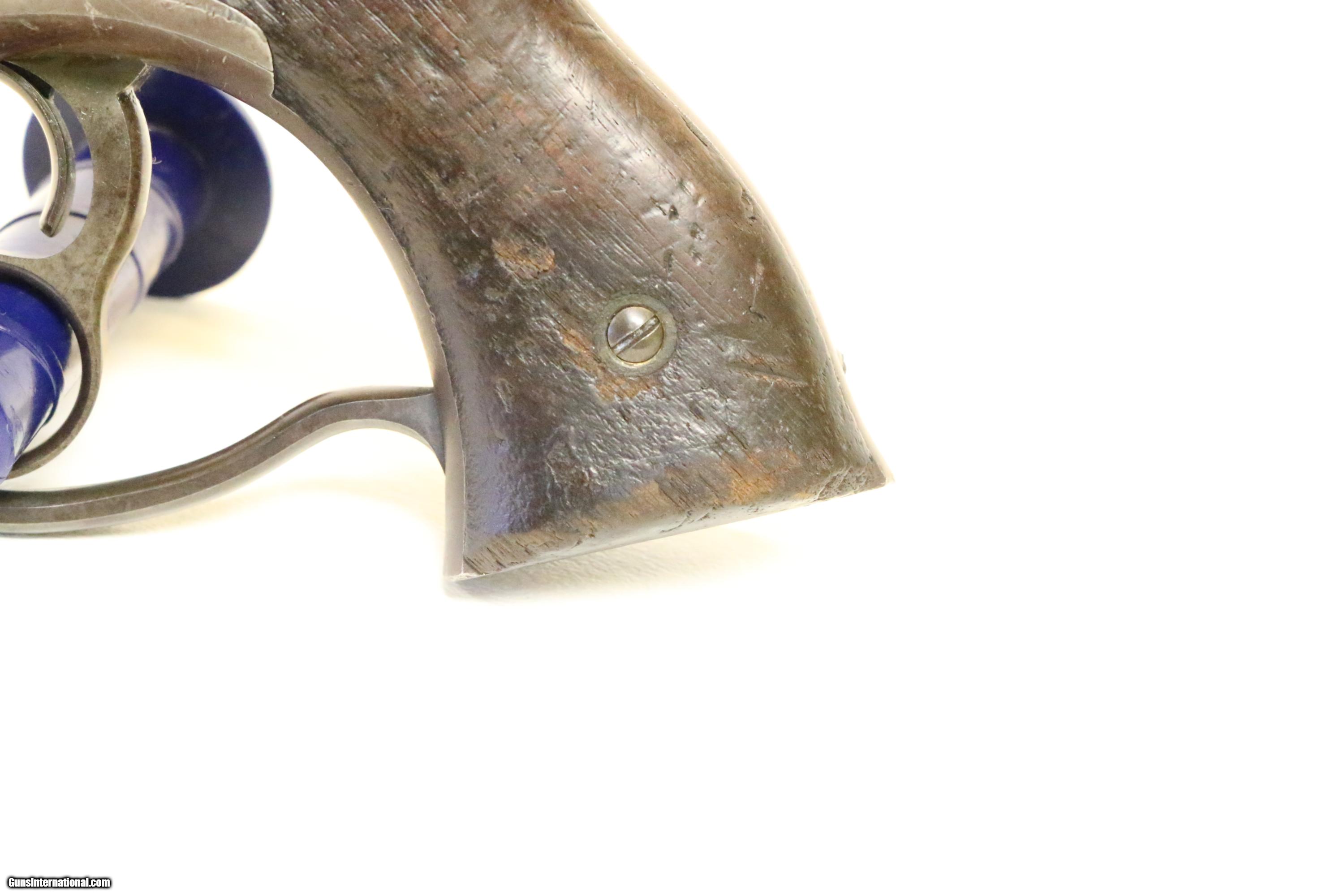 Description: Savage Revolving Fire Arms Co martially marked 36 Cal. Numbers matching and shows correct small inspectors marks throughout. Left grip has inspectors carrtouche. traces of original finish. Good to very good bore. Correct and smooth operation. Nice example from mid production run. SOLD Antique: Yes |