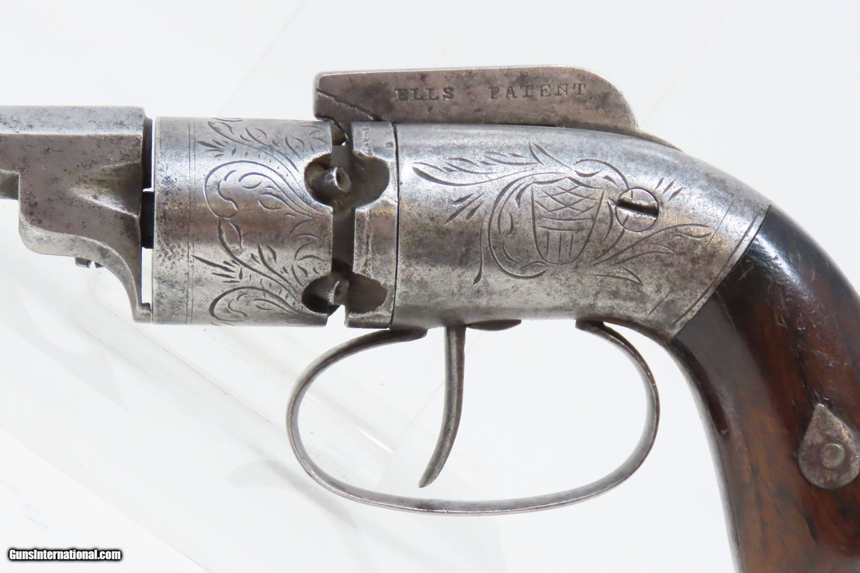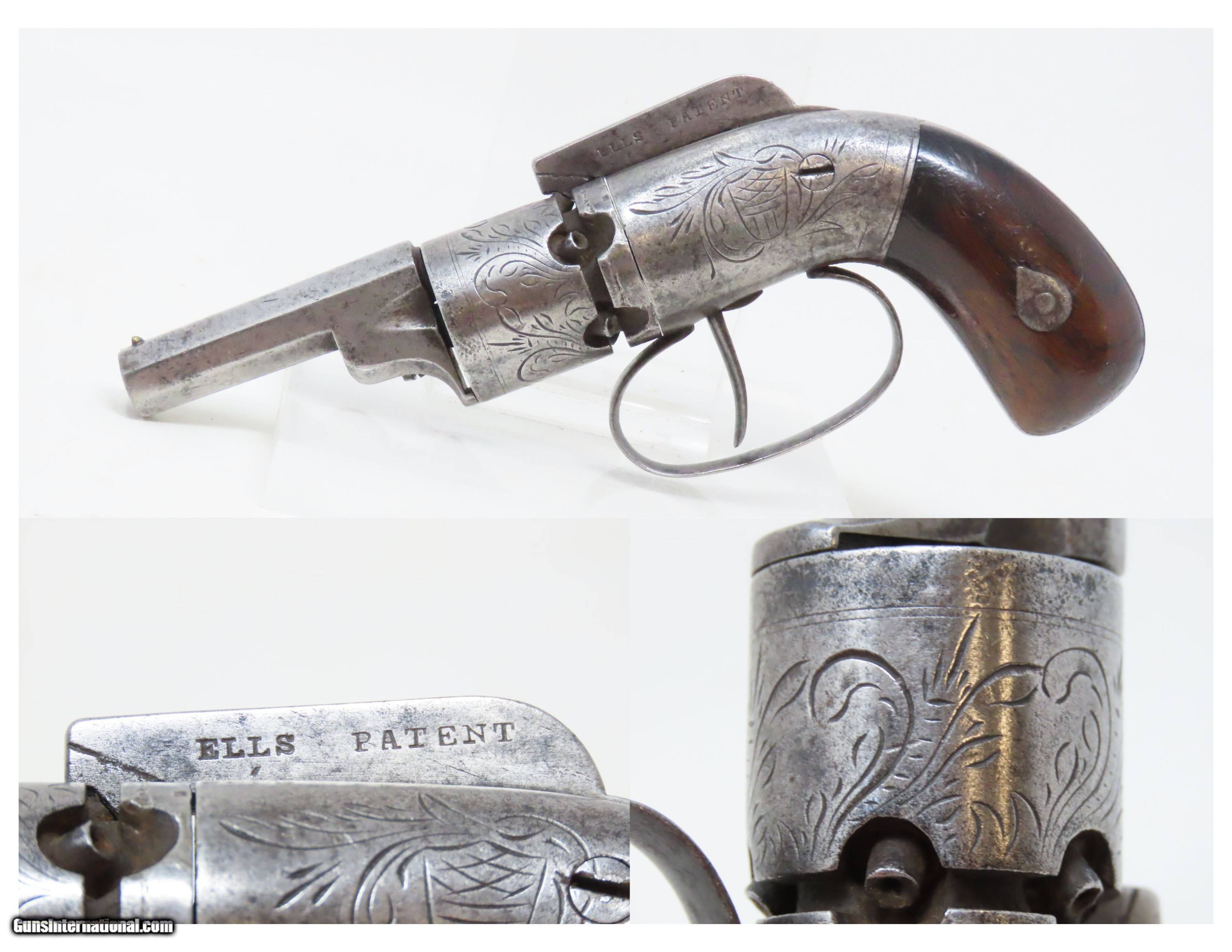 SCARCE 1 of 625 Antique JOSIAH ELLS Bar Hammer .31 Perc. Revolver CIVIL WAR RARE FIRST MODEL Engraved Antebellum Revolver