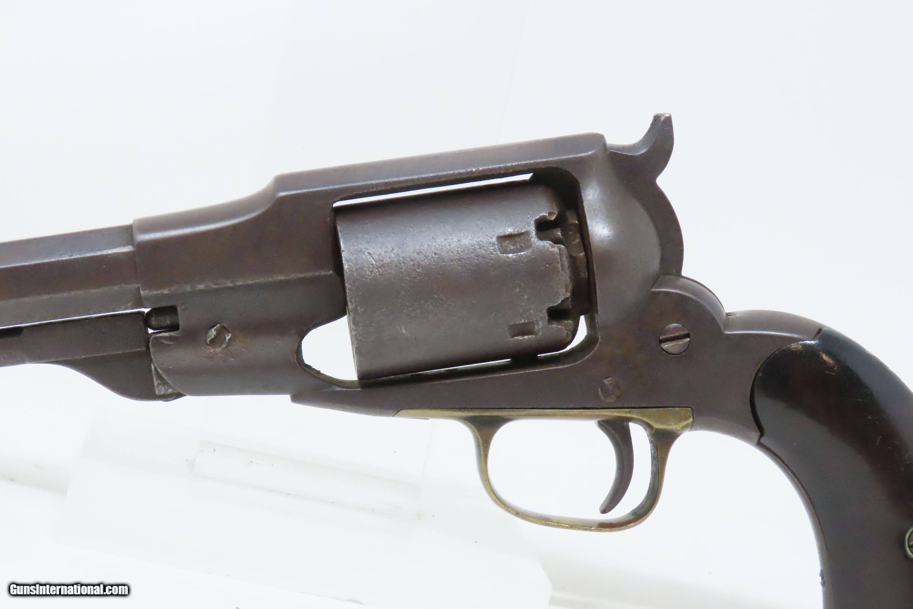 Description: SCARCE Antique CIVIL WAR / WILD WEST Remington-Beals .36 NAVY Percussion EARLY 1860s SINGLE ACTION .36 Caliber Revolver Here we present an antique Remington-Beals Navy Percussion Revolver, manufactured circa 1861-1862 at the Remington Armory in Ilion, New York. The Remington-Beals model revolvers were percussion revolvers manufactured by Eliphalet Remington & Sons in three different calibers, those being the .31 caliber Pocket, the .36 caliber Navy, and the .44 caliber Army, used during the American Civil War, and was the beginning of a successful line of medium and large frame pistols. Fordyce Beals (1807-1870) was a firearm engineer who worked both for the Whitneyville Armory and then the Remington Armory in the mid-1850s. During his time at Remington, he developed the Remington-Beals six shot, single action, Army revolver which appeared in 1861. It was prominent as a revolver that saw service with both sides of the American Civil War. This gun’s design is typical of the period. The grip is integral and covered in wood for comfort, and the solid frame added robustness to the design. This gun is commonly, though inaccurately, referred to as the Model 1858 due to the patent markings that appeared on the firearm, although wide scale production did not start until 1861. The Remington revolver was a secondary, supplemental issue firearm for the Union Army until the Colt factory fire of 1864, when it became the primary. Due to the fire, the Colt 1860 Army was not available for some time. Subsequently, large numbers of the Remington revolver were ordered by the U.S. government. It was more expensive than the Colt, but those who could afford it remarked on its durability. The overall condition is good. Dark patina throughout. The action (hammer/trigger) is strong but the muzzle needs to be pointed down while cocking the hammer for the cylinder to revolve due to a weak hand spring. The bore is patinated with thin rifling. The top of the hammer spur was chipped during the period and it has smoothed with continued use and has a patina like the rest. The numbers match. Solid grips. Own the original! This is a legitimate antique and not a reproduction. Barrel is 7-1/2 inches. Caliber: .36 Percussion Overall condition as seen in photos. Very Fast. Very Safe. FREE SHIPPING WORLDWIDE. Delivered directly to your door by express mail! Guaranteed AUTHENTIC & Includes CERTIFICATE OF AUTHENTICITY. ancestryguns $1600 #233075 SOLD Antique: Yes |