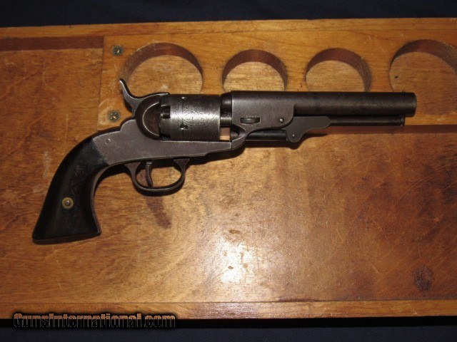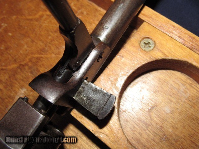 Description: ****** SOLD STEVE IN FL ****** James Bacon left the Manhattan Firearms Company to start his own firearms business, and made 3 versions of percussion revolvers. This is a very early Third Model - 5" round barrel, non-engraved frame, roll-engraved cylinder scene, Whitney-type loading lever with ball-type latch, 5-shot cylinder, caliber .31 percussion like the Colt 1849 Pocket Model. Best thing is the serial number - single digit - #8! Number matches on back of cylinder, bottom of barrel, wedge, loading lever and left side of frame under grip. Original finish was blued with wooden grips. Several other manufacturers made these, but this one has the Bacon barrel address, making it only 1 of 1400 in all types to be made at the Bacon factory. All blued finishes have turned patina with stronger color in the protected areas under the recoil shield and barrel/loading lever junction. Cylinder retains 75% scene and all 5 nipples are original with no damage. Action is a little sticky but does function and fire. Grips show expected nicks and toe wear but are solid with no splits or cracks. Barrel-to-frame junction is tight with no wobble. Decent bore with expected wear and black powder fouling but no major issues. Overall grades NRA Antique Very Good and will make a nice addition to your Civil War firearm collection. TERMS: FREE SHIPPING FREE SHIPPING FREE SHIPPING! No international sales and no sales to Alaska or Hawaii. Antique so it can ship directly to you. Please know your local laws and abide by them - if your state requires shipping to an FFL, please let me know, as I can't know every individual state's laws. Sold as a collector's item only. If you intend to shoot this firearm, have it checked first by a competent gunsmith and then use the proper loads! Price listed is for payment by check or money order. All major credit cards also accepted with 4% added to final price. 3 day non firing inspection. Buyer pays return shipping. Packed with care and sent by UPS Ground or USPS Priority Mail. Offers welcomed so please text or call if interested. Please see my other items and thanks for looking! SOLD Antique: Yes Handgun Caliber: .31 Manufacturer: Bacon Model: Pocket Serial Number: 8 Barrel Length: 5" Round Condition: Very good Metal Condition: Very good Wood Condition: Very good Bore Condition: Good Action: Single Action Revolver Triggers: Standard/plain Sights: Standard Manufacture Date: 1864 |