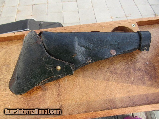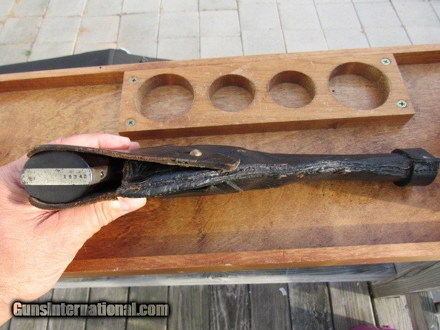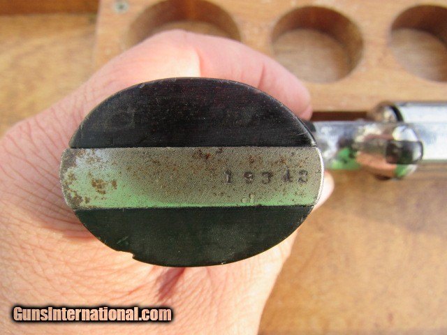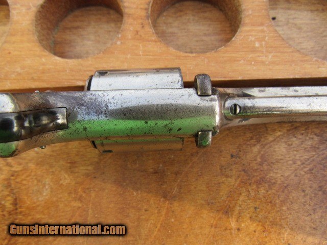 Description: DESCRIPTION: Smith & Wesson #2 Old Model Army 6-shot revolver in caliber 32 Rimfire Long, 6" octagon barrel, full nickel finish, rosewood grips, square butt design, single-line barrel address on top rib and single-line patent date on the correct unfluted cylinder, half-moon brass front sight, rear sight notch integral with cylinder catch, top-hinge with barrel catch at bottom, single action, correctly lacking a half cock or safety feature, smooth spur trigger, serial # 19342, made 1864, was a popular backup gun for many Civil War participants. Comes with a correct black leather holster in which the revolver fits perfectly. CONDITION: Retains 90% original thinning nickel plate over the blued barrel and brass frame, with the loss being spotty, especially in the high-traffic areas. Original rosewood grips are in near new condition, having only one ding at bottom left. Serial # matches on bottom of grip and inside of left grip wood. Assembly number matches on left lower frame, cylinder and barrel at breech. Bore is very good with sharp rifling and just minor scattered black powder fouling. Action is very tight and cylinder indexes perfectly every time. Just a hint of play in the top hinge. Holster is not marked anywhere that I can find and shows much cracking from age/drying but all rivets intact as well as brass flap catch. Hard to find a 155-year-old gun in this condition so don't pass this one up!! TERMS: No international sales. Antique, so it can ship directly to you assuming your local laws allow it. Payment by bank check, money order, personal check, or all major credit cards with 3% surcharge. 3 day non-firing inspection. Buyer pays return shipping. Layaway available with 25% down and equal payments over 90 days. Offers considered. Thanks for looking. Interested in buying single pieces and collections of old firearms, especially Winchester, Colt, S&W, Marlin, Savage and Remington. 315.251.4799 with questions or concerns. SOLD Antique: Yes Manufacturer: Smith & Wesson Model: #2 Old Model Army Serial Number: 19342 Caliber Info: 32 Rimfire Barrels: 6" octagon Manufacture Date: 1864 Item Location: New York |