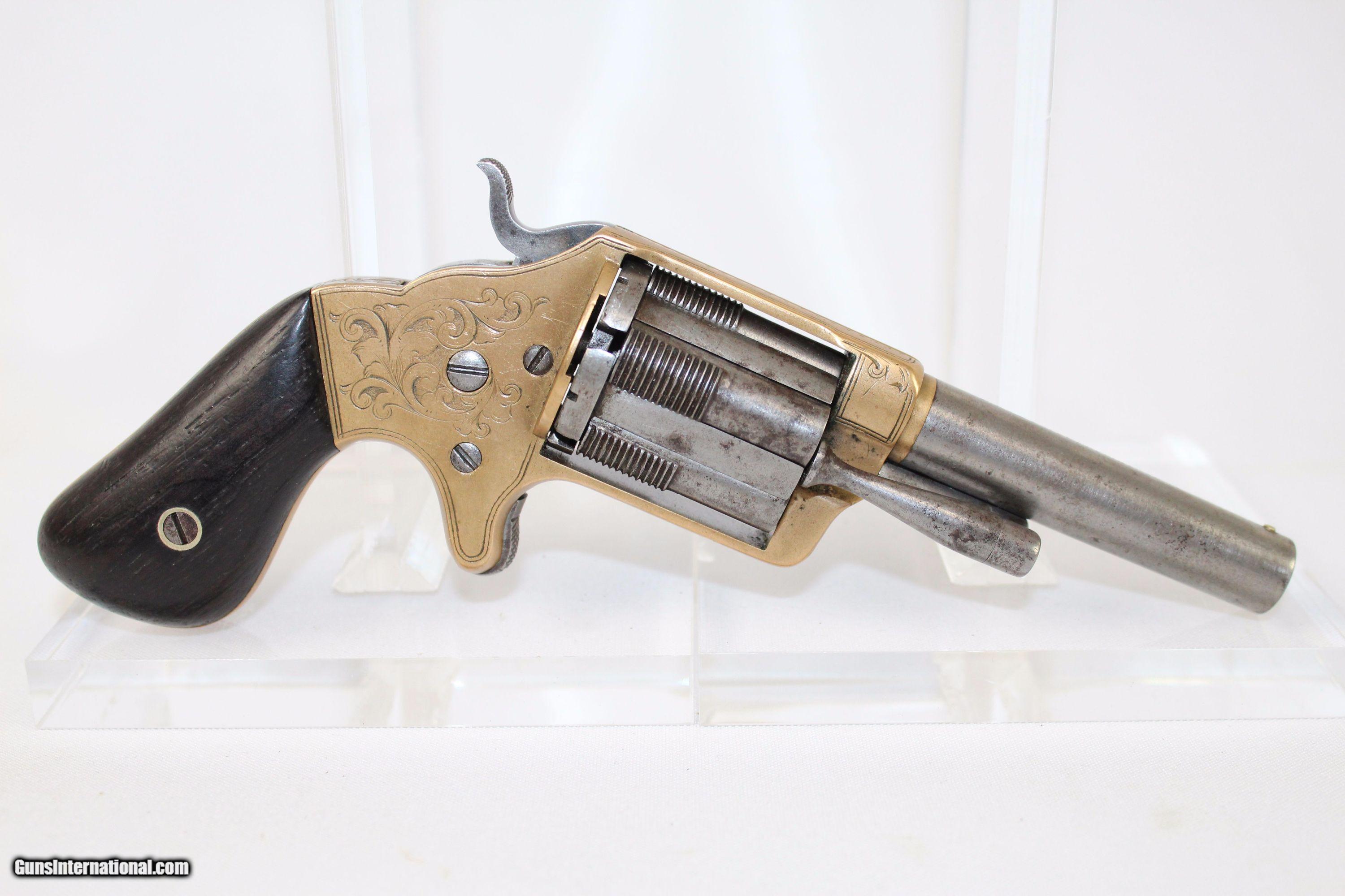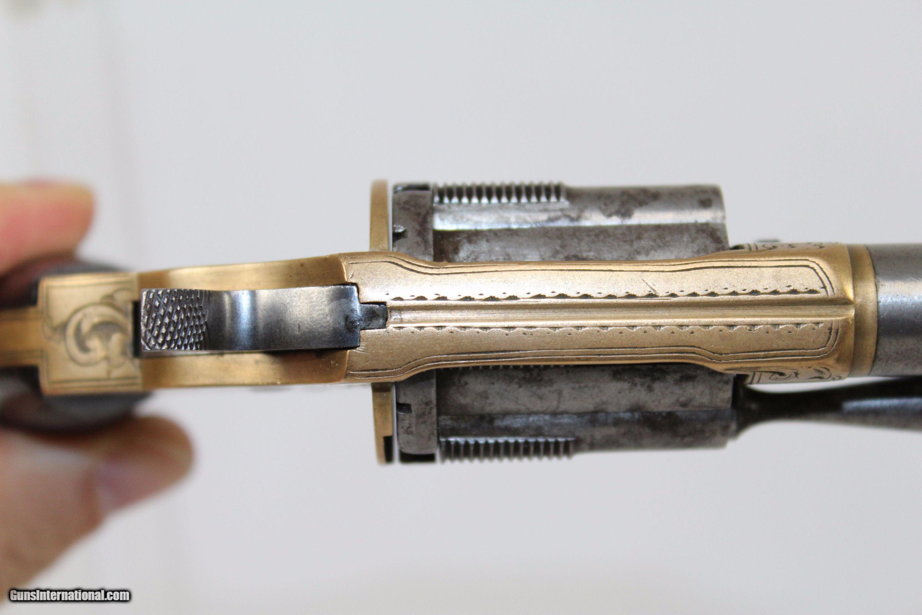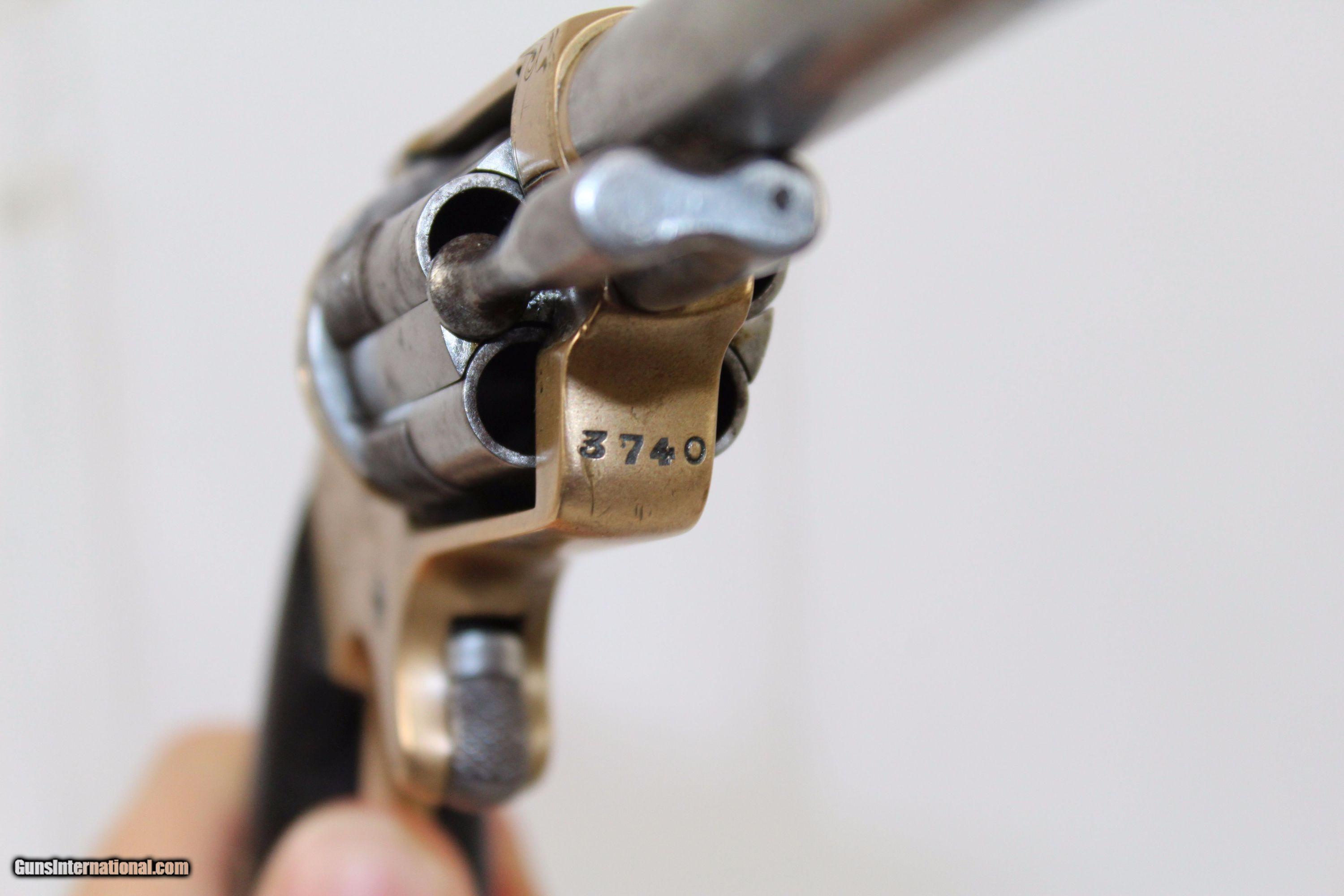 Description: Unique CIVIL WAR Antique Brooklyn SLOCUM Revolver With Rollin White By-Passing Sliding Chambers Here we present an antique Brooklyn Arms Co. Slocum Patent Pocket Revolver, made circa 1863 in Brooklyn, New York. Only about 10,000 were produced. Firearms technology was rapidly advancing in the 19th Century with Colt introducing his revolver, and Smith & Wesson introducing the “bored through” cylinder that allowed revolvers to be used with metallic cartridges. This development was the intellectual property of an inventor by the name of Rollin White, a former Colt employee who took his idea to Samuel Colt himself, and was fired for his efforts. White found a buyer for his patent in Horace Smith and Daniel Wesson, giving their new company an enormous advantage for the next 12 years. However, with the Civil War in full fury and arms supply and manufacturing what it was, many different inventors, mechanics and manufacturers popped up to take advantage of the need for arms. Many makers of revolvers attempted to design and manufacture their own concept, but ended up violating the Rollin White Patent, for which Smith & Wesson and Rollin White aggressively sued. Other companies came up with creative solutions to navigate around the patent and some succeeded. This is one of those success stories, at least in the sense that a functional revolver was created to use metallic rimfire ammunition without violating the patent. Each chamber slides in its channel. Though this relatively small pocket revolver was no official armament of the Civil War, like so many others, plenty of them were carried into battle by soldiers who purchased them privately. This revolver features nice scroll engraving. The top of the barrel reads “B.A. CO. PATENT APRIL 14 1863”. The overall condition is very good. The brass frame has a mild patina. The barrel and cylinder have been lightly polished. The markings and engraving are clear and legible. The numbers match including the grips. The grips are smooth and solid. The bore is in good condition. The action is excellent. Own the original! This is a legitimate antique and not a reproduction. Barrel is 3 inches. Caliber: .32 Rimfire Overall condition as seen in photos. Very Fast. Very Safe. FREE SHIPPING WORLDWIDE. Delivered directly to your door by express mail! Guaranteed AUTHENTIC & Includes CERTIFICATE OF AUTHENTICITY. ancestryguns $900 #5451 SOLD Antique: Yes |