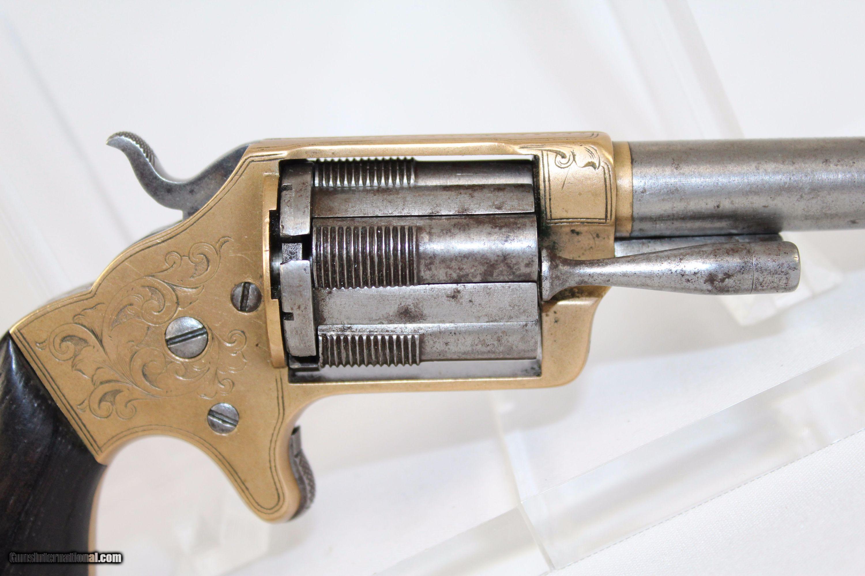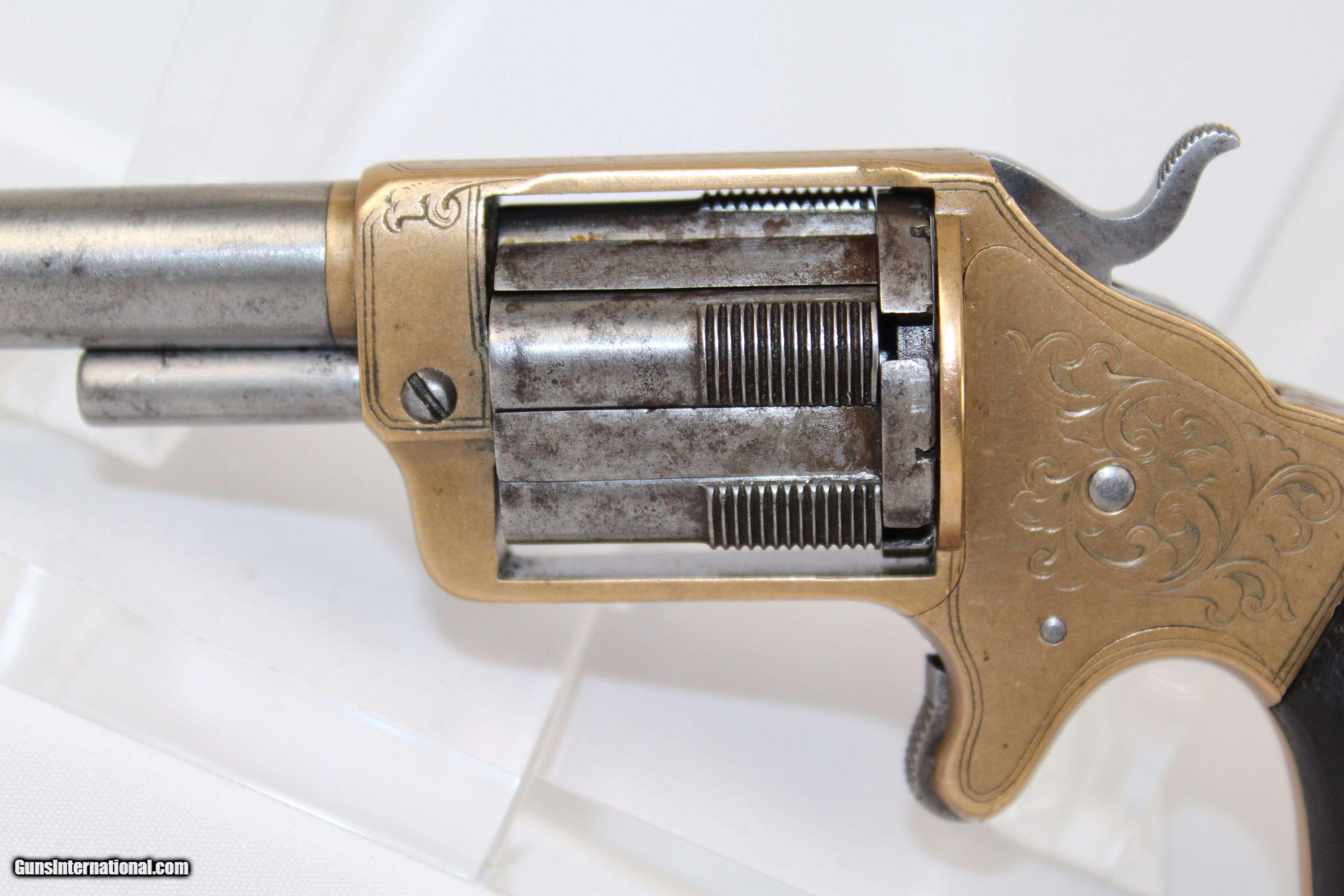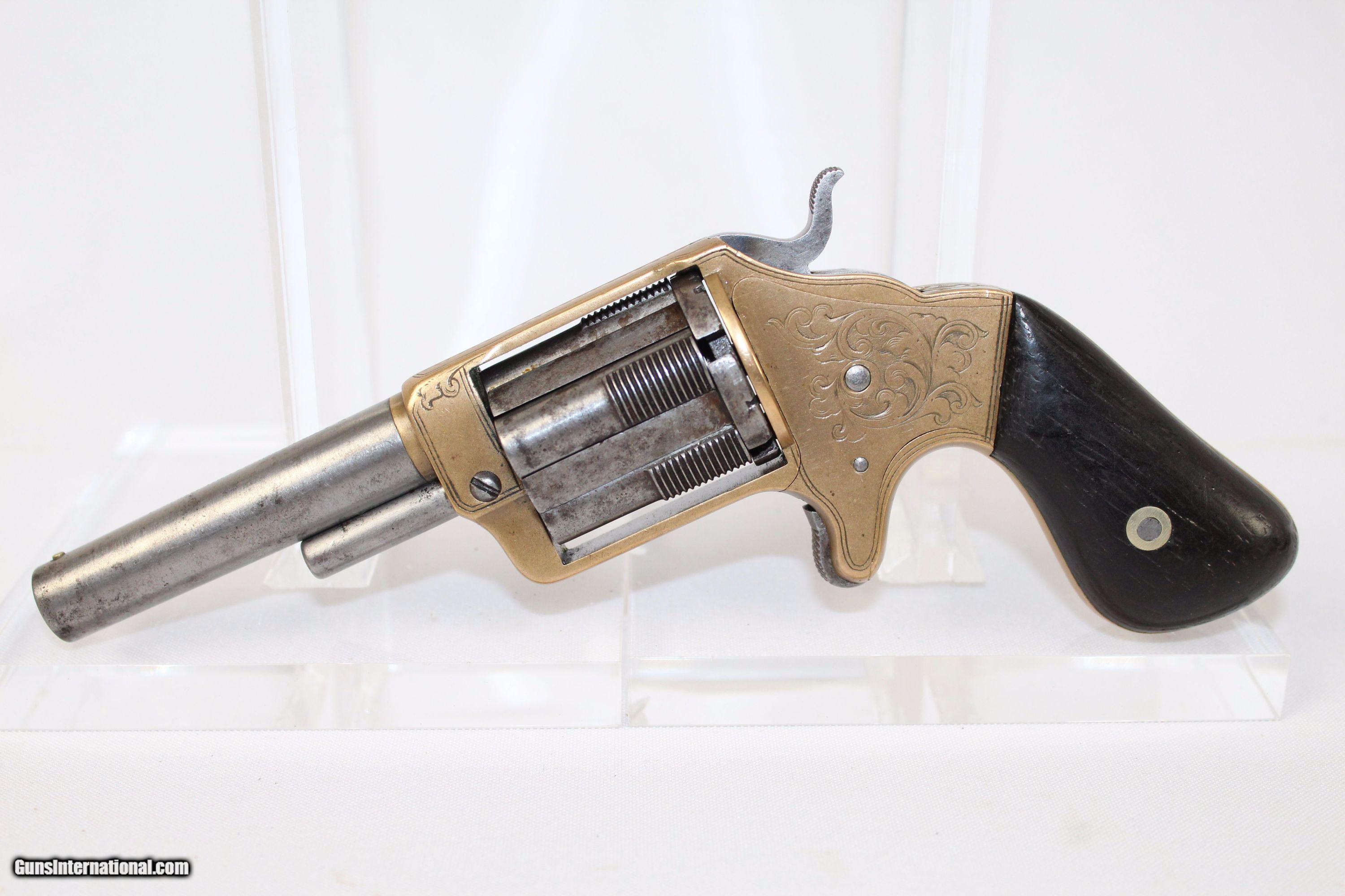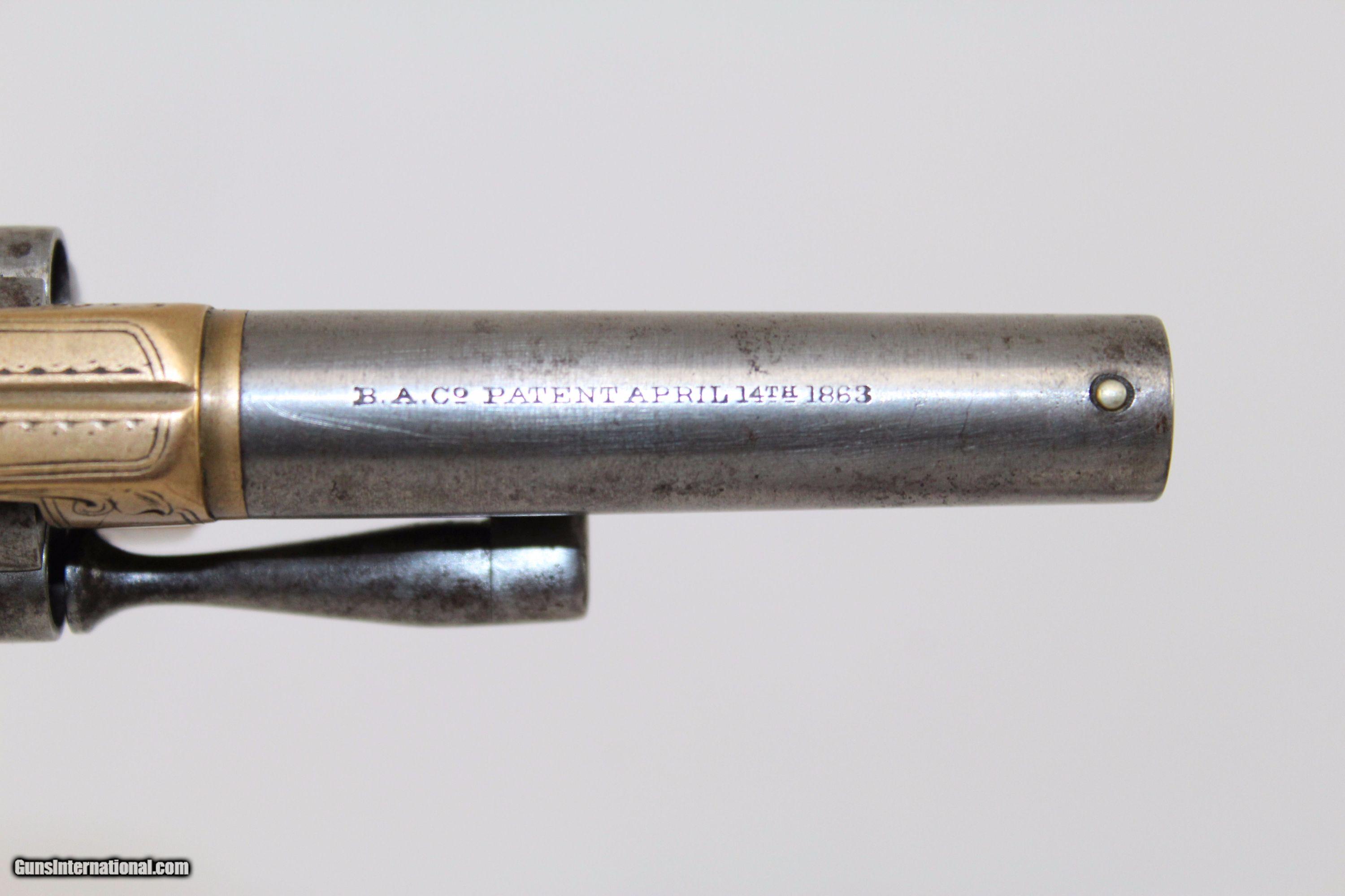 Description: Unique CIVIL WAR Antique Brooklyn SLOCUM Revolver With Rollin White By-Passing Sliding Chambers Here we present an antique Brooklyn Arms Co. Slocum Patent Pocket Revolver, made circa 1863 in Brooklyn, New York. Only about 10,000 were produced. Firearms technology was rapidly advancing in the 19th Century with Colt introducing his revolver, and Smith & Wesson introducing the “bored through” cylinder that allowed revolvers to be used with metallic cartridges. This development was the intellectual property of an inventor by the name of Rollin White, a former Colt employee who took his idea to Samuel Colt himself, and was fired for his efforts. White found a buyer for his patent in Horace Smith and Daniel Wesson, giving their new company an enormous advantage for the next 12 years. However, with the Civil War in full fury and arms supply and manufacturing what it was, many different inventors, mechanics and manufacturers popped up to take advantage of the need for arms. Many makers of revolvers attempted to design and manufacture their own concept, but ended up violating the Rollin White Patent, for which Smith & Wesson and Rollin White aggressively sued. Other companies came up with creative solutions to navigate around the patent and some succeeded. This is one of those success stories, at least in the sense that a functional revolver was created to use metallic rimfire ammunition without violating the patent. Each chamber slides in its channel. Though this relatively small pocket revolver was no official armament of the Civil War, like so many others, plenty of them were carried into battle by soldiers who purchased them privately. This revolver features nice scroll engraving. The top of the barrel reads “B.A. CO. PATENT APRIL 14 1863”. The overall condition is very good. The brass frame has a mild patina. The barrel and cylinder have been lightly polished. The markings and engraving are clear and legible. The numbers match including the grips. The grips are smooth and solid. The bore is in good condition. The action is excellent. Own the original! This is a legitimate antique and not a reproduction. Barrel is 3 inches. Caliber: .32 Rimfire Overall condition as seen in photos. Very Fast. Very Safe. FREE SHIPPING WORLDWIDE. Delivered directly to your door by express mail! Guaranteed AUTHENTIC & Includes CERTIFICATE OF AUTHENTICITY. ancestryguns $900 #5451 SOLD Antique: Yes |