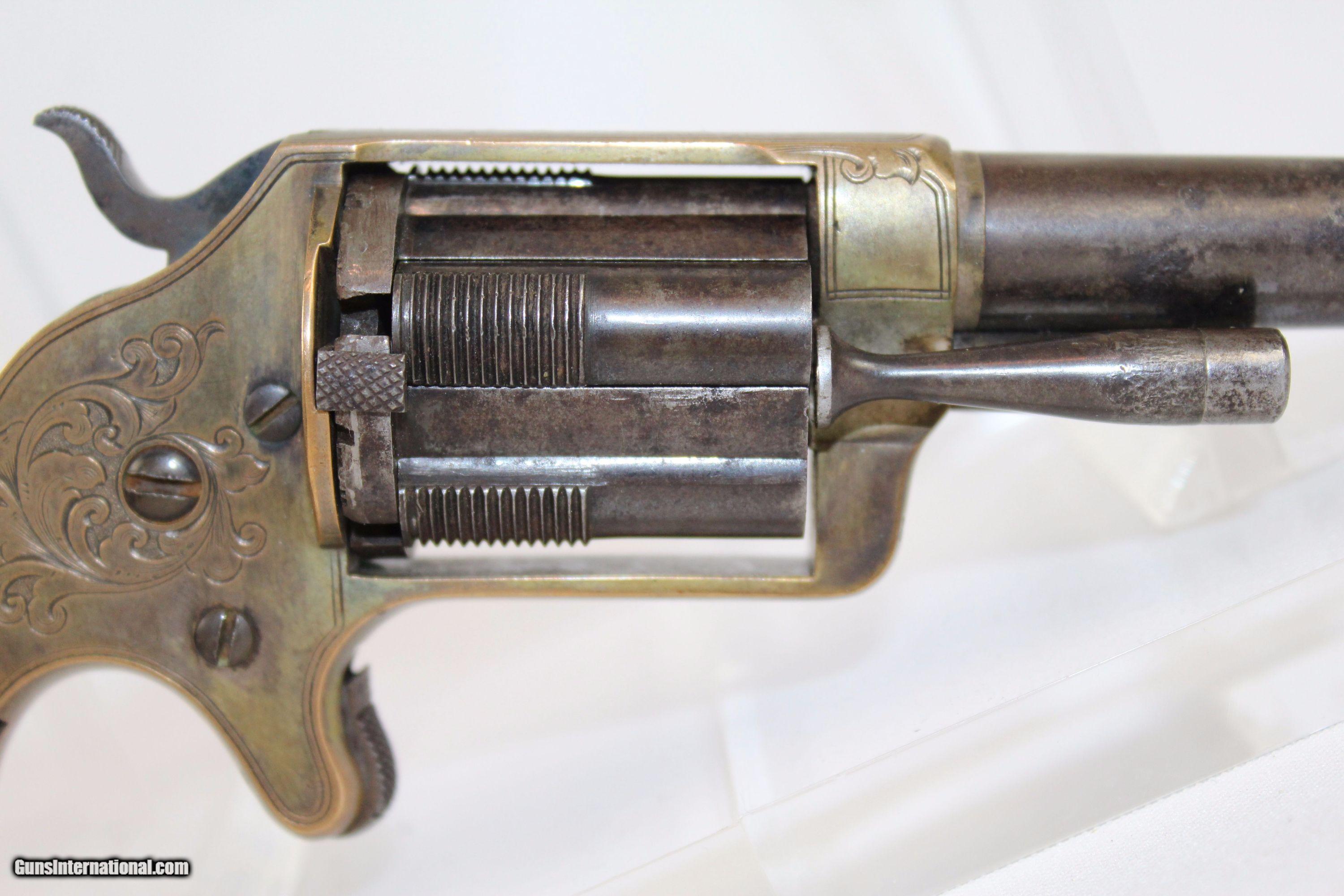 Description: Unique CIVIL WAR Antique Brooklyn SLOCUM Revolver With Rollin White By-Passing Sliding Chambers Here we present an antique Brooklyn Arms Co. Slocum Patent Pocket Revolver, made circa 1863 in Brooklyn, New York. Only about 10,000 were produced. Firearms technology was rapidly advancing in the 19th Century with Colt introducing his revolver, and Smith & Wesson introducing the “bored through” cylinder that allowed revolvers to be used with metallic cartridges. This development was the intellectual property of an inventor by the name of Rollin White, a former Colt employee who took his idea to Samuel Colt himself, and was fired for his efforts. White found a buyer for his patent in Horace Smith and Daniel Wesson, giving their new company an enormous advantage for the next 12 years. However, with the Civil War in full fury and arms supply and manufacturing what it was, many different inventors, mechanics and manufacturers popped up to take advantage of the need for arms. Many makers of revolvers attempted to design and manufacture their own concept, but ended up violating the Rollin White Patent, for which Smith & Wesson and Rollin White aggressively sued. Other companies came up with creative solutions to navigate around the patent and some succeeded. This is one of those success stories, at least in the sense that a functional revolver was created to use metallic rimfire ammunition without violating the patent. Each chamber slides in its channel. Though this relatively small pocket revolver was no official armament of the Civil War, like so many others, plenty of them were carried into battle by soldiers who purchased them privately. This revolver features nice scroll engraving. The top of the barrel reads “B.A. CO. PATENT APRIL 14 1863”. Overall condition is very good. The barrel and cylinder bear solid traces of original blue finish. An aged patina makes up the balance. Traces of silver remain on the engraved brass frame. Markings and engraving are clear and legible. The walnut grips are in nice shape, showing a bit of period wear. The bore is in very good condition. The action is excellent. Here is a very interesting and unique Civil War-era Pocket Pistol! Own the original! This is a legitimate antique and not a reproduction. Barrel is 3 inches. Caliber: .32 Rimfire Overall condition as seen in photos. Very Fast. Very Safe. FREE SHIPPING WORLDWIDE. Delivered directly to your door by express mail! Guaranteed AUTHENTIC & Includes CERTIFICATE OF AUTHENTICITY. ancestryguns $1000 #5143 SOLD Antique: Yes |