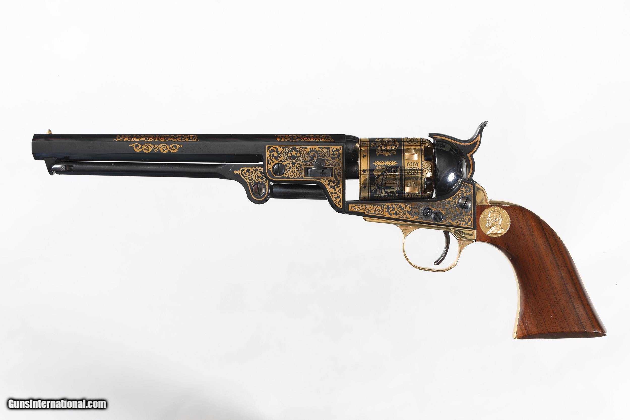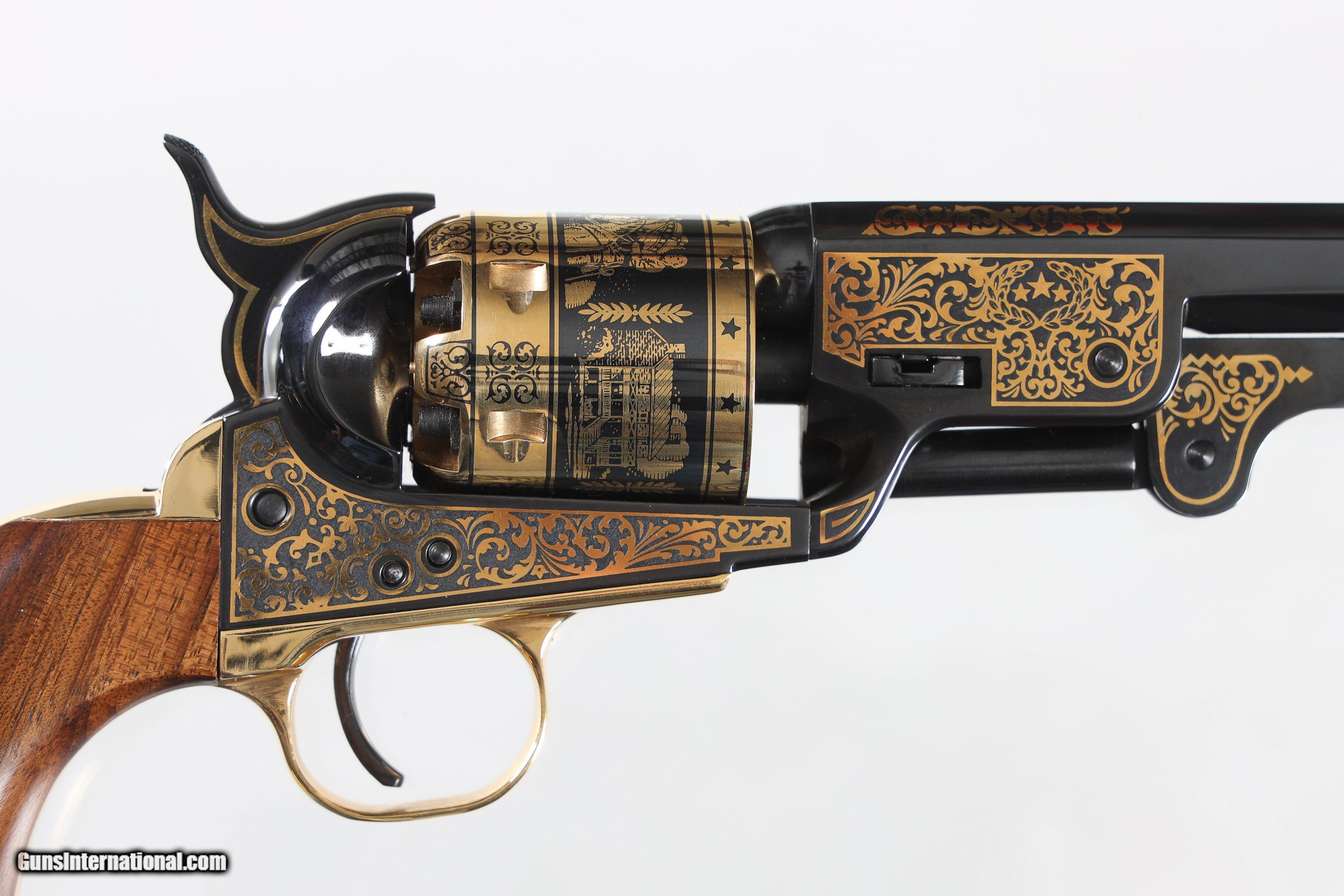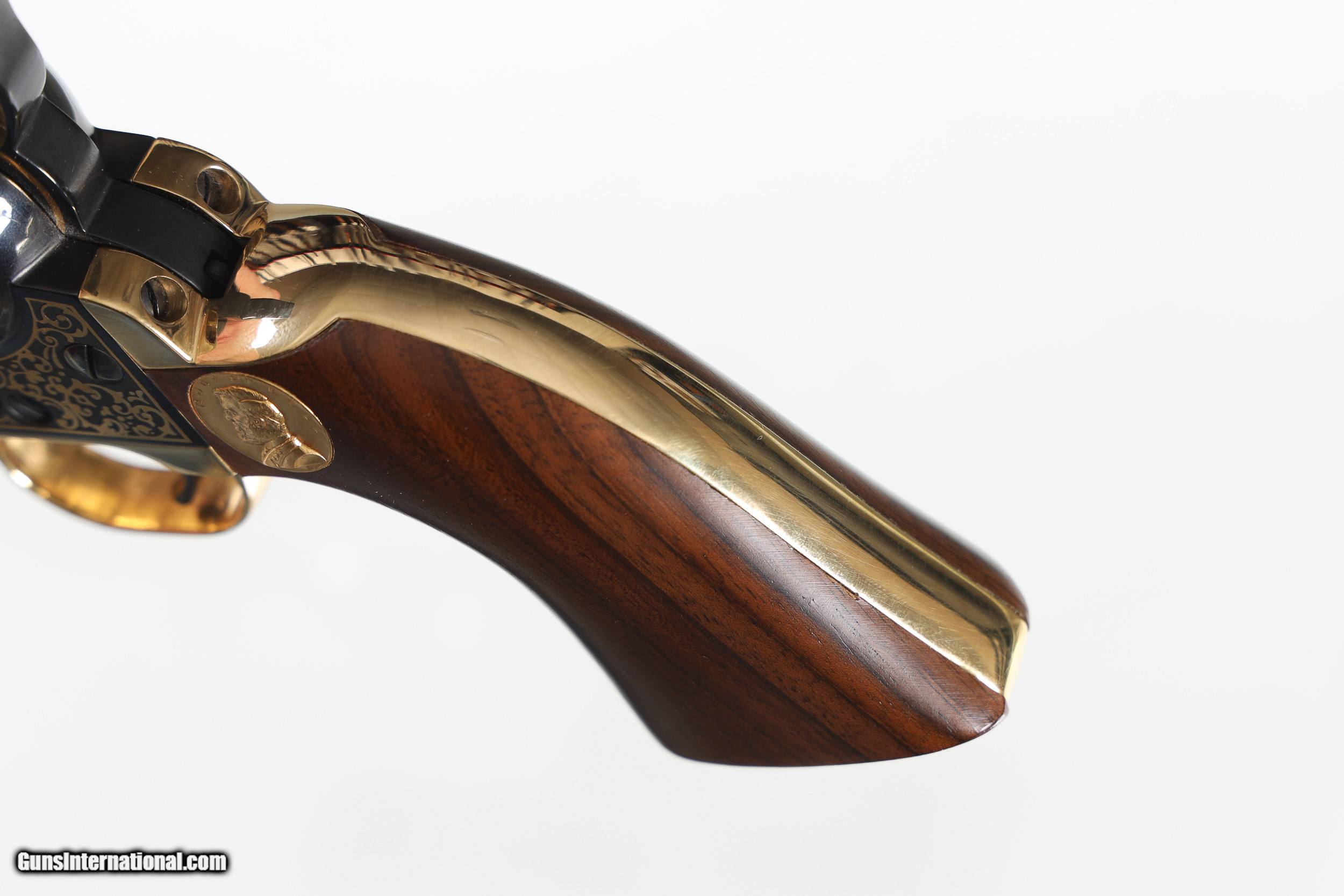 Description: Robert E. Lee Commemorative gold overlay with medallion inleaded into left stock with coin silver plated powder flask, gold plated shot, Robert E. Lee engraved cap box, key, in presentation case. Revolver remains near mint, light handling marks to display case. Williamsburg Firearms Manufactory From the original '51 Navy Colt at the Confederate Museum. With paper work and white gloves. Free Shipping, No Credit Card Fees! SOLD Manufacturer: Williamsburg Firearms Model: Navy Serial Number: 1378 Caliber Info: .36cal Barrels: 7 1/2 |
