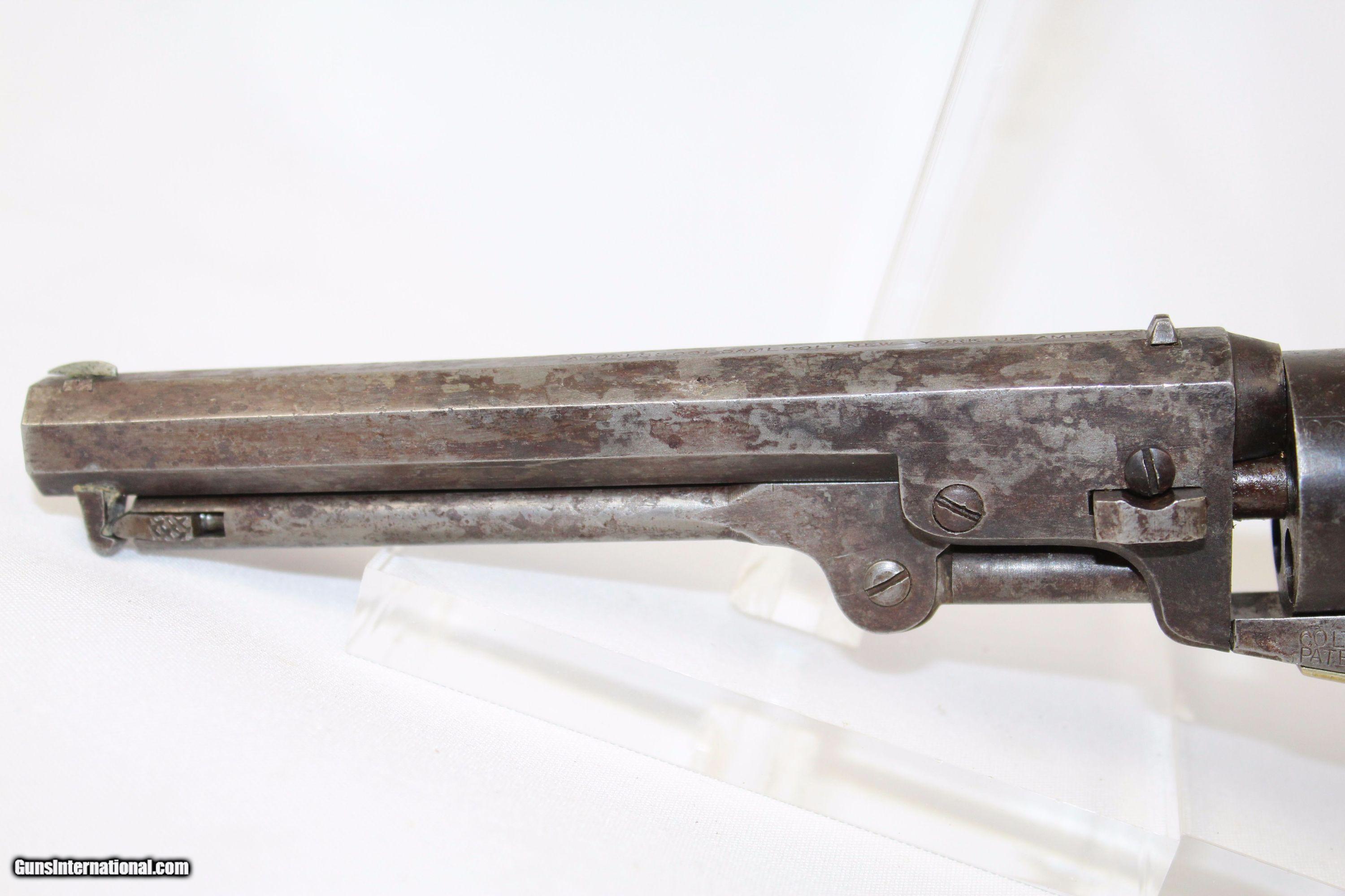 Description: Antiqued COLT 1849 Pocket Revolver Copy Reproduction of Samuel Colt’s Famous Civilian Revolver Here we present a Reproduction of the Venerable Colt Model 1849 Pocket Revolver. This piece appears to have been made in the 20th Century, though no maker’s mark or proof marks are to be found. The Model 1849 Pocket was a homerun for Samuel Colt, being a very small and handy firearm, perfect for 19th Century defensive carry. Over 280,000 were produced by the end of the American Civil War. Condition is good. The metal surfaces have been force-patinaed. The markings are clear and legible. The numbers match. The grips are solid. The bore is serviceable. The action is strong. Barrel is 5-7/8 inches. Caliber: .31 Percussion Overall condition as seen in photos. Very Fast. Very Safe. FREE SHIPPING WORLDWIDE. Delivered directly to your door by express mail! ancestryguns $750 #5283 SOLD Antique: Yes |