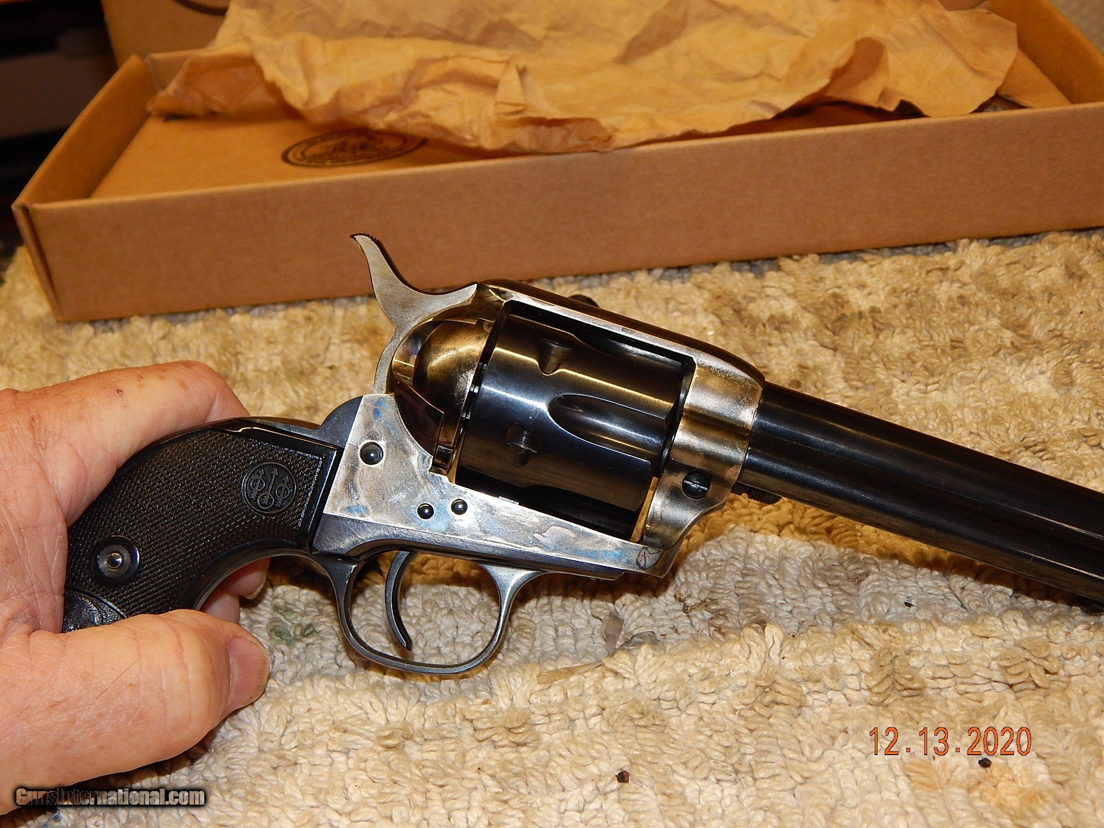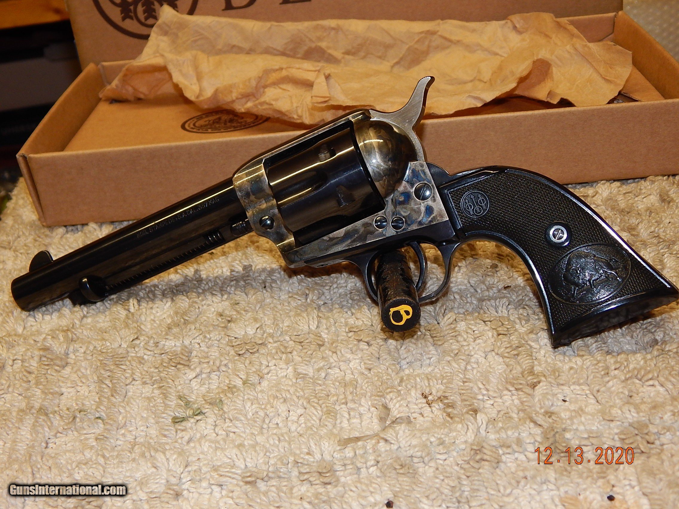 Description: A new old stock unfired Beretta Stampedee single action revolver in original box. A super nice gun that is a copy of a Colt Peacemaker. Gun is in as new condition, a great pistol to shoot or collect. Priced to sell at $700.00 with free shipping. Shipped to your FFL dealer. Has a 5 1/2 inch barrel. Payment by postal money order or check will also accepet Paypal for an additional $21.00. Cash or check $700.00 Paypal $721.00. Thanks Jerry 8258-421-9947 SOLD Handgun Caliber: .357 Magnum Manufacturer: Berretta Model: Stampede Condition: Mint |