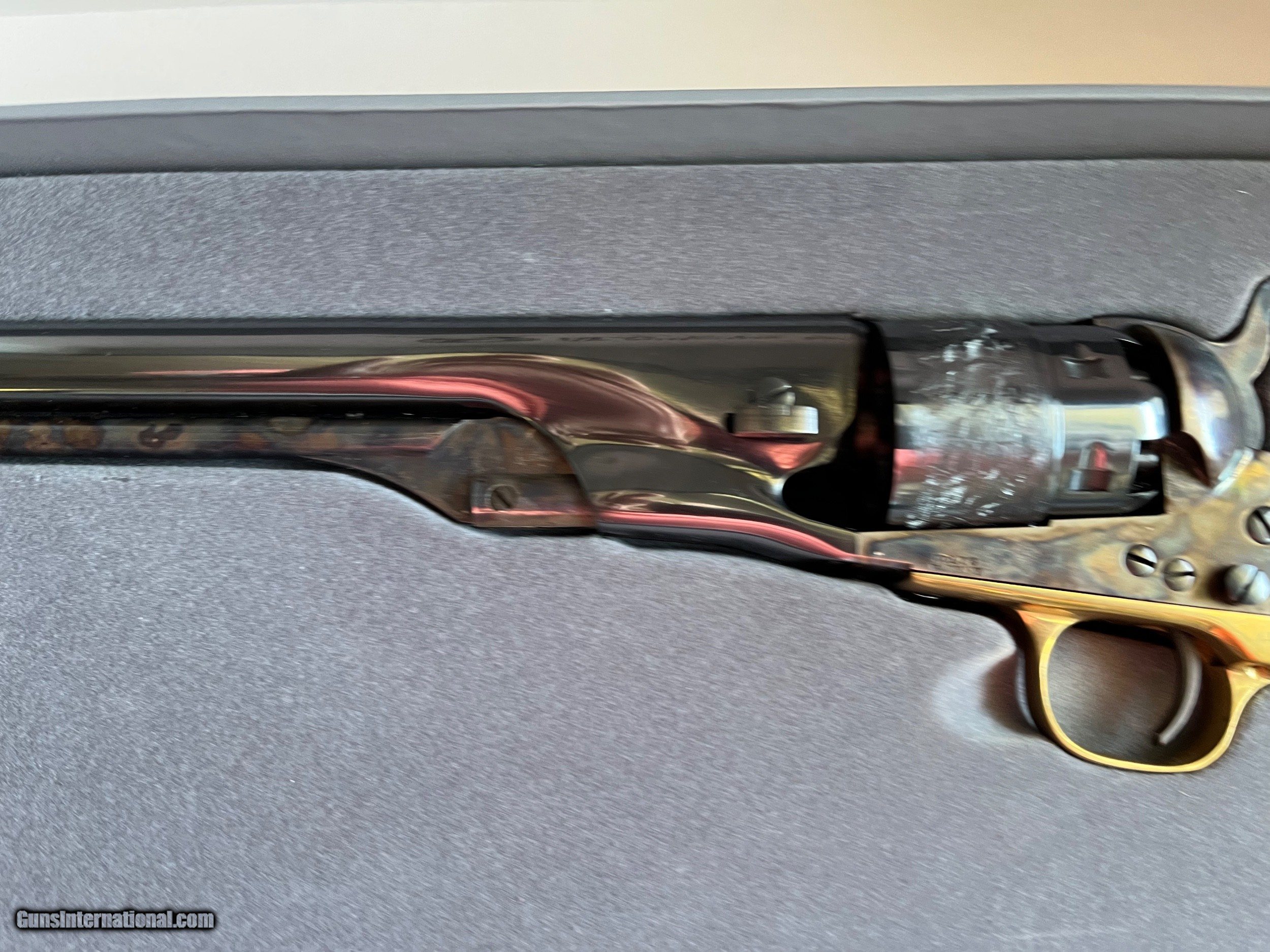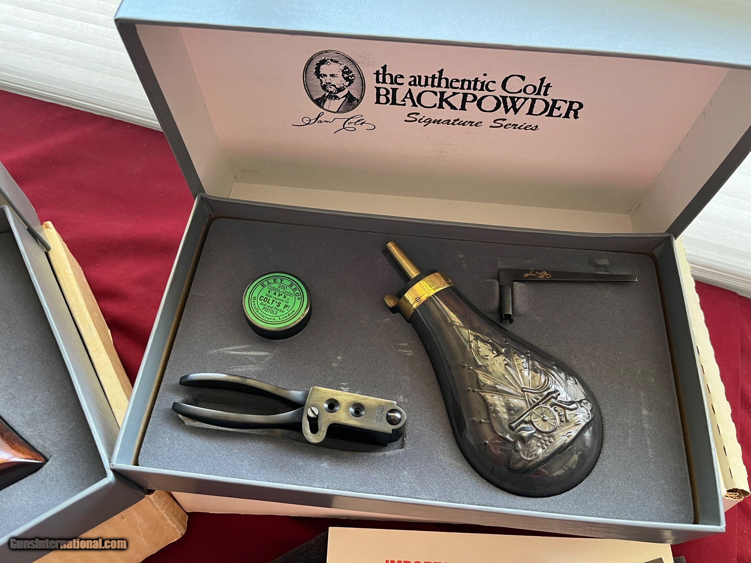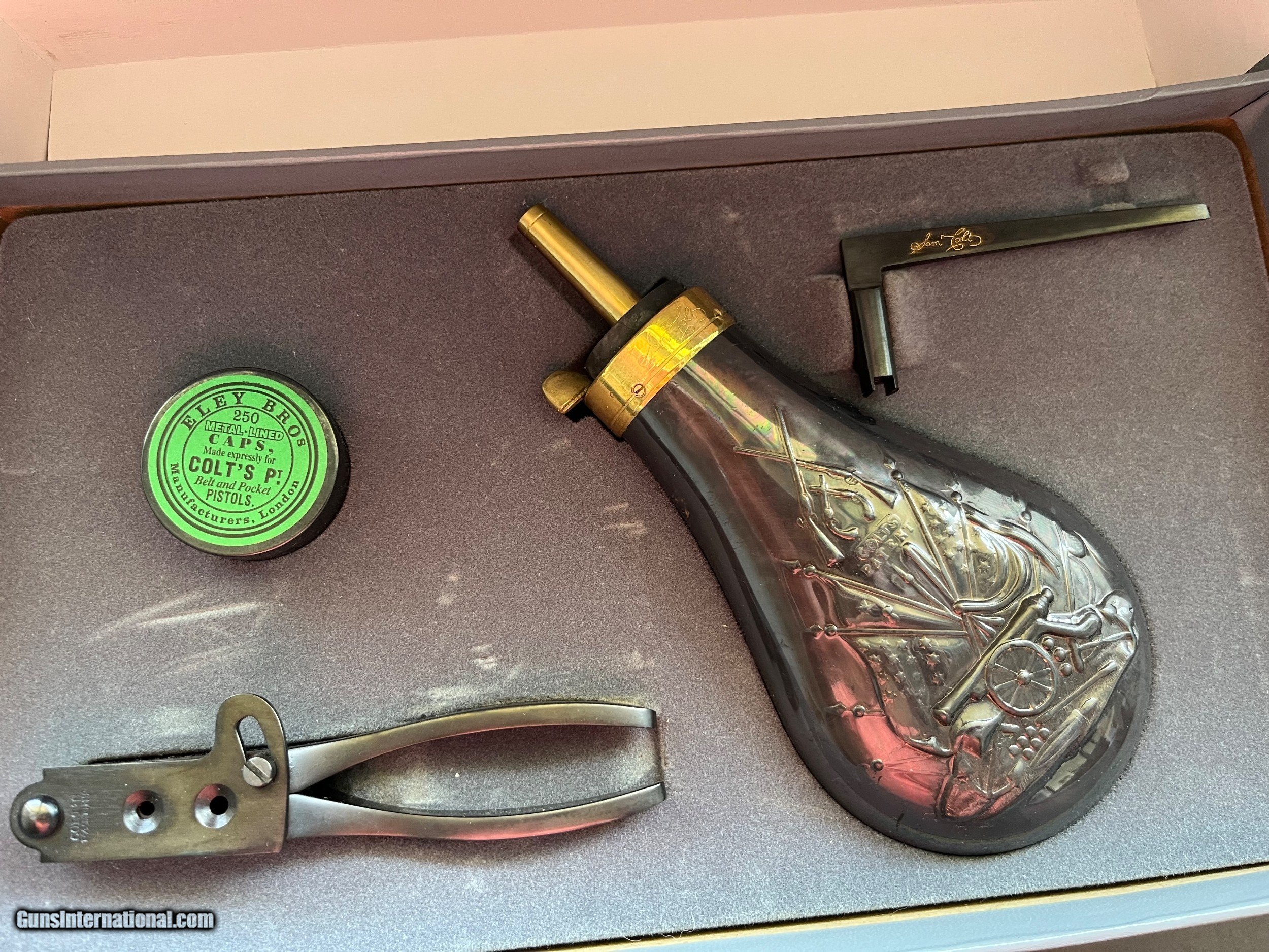 Description: COLT BLACK POWDER SERIES MODEL 1860 ARMY REVOLVER. BEAUTIFUL GUN WITH ENGRAVING. GUN IS MINTY AND IN UNFIRED CONDITION . ALL COMES WITH THE COLT BLACK POWDER ACCESSORY KIT. BOTH GUN AND KIT COMES WITH HTE ORIGINAL BOXES AND PACKING BOXES. NO FFL LIC REQUIRED FOR SHIPPING ADD 60.00 SHIPPING EASTERN BRANCH FIREARMS OPTIONAL INSURANCE IS AVAILABLE AT 1.25 PER 100.00 SORRY NO MORE UPS SHIPPING – THERE POLICY NOT TO SHIP GUN AS OF 8/29/2022 Questions e-mail or call Glen at Eastern Branch Firearms 207-215-5021 TERMS – PLEASE READ BEFORE I DO NOT HAVE A LAYAWAY OPTION ( WE ACCEPT CREDIT CARDS ) -- I GET ALOT OF REQUEST FOR TRADES, I WOULD PERFER NOT TO DO TRADES ON MY INTERNET LISTINGS PAYMENT OPTIONS- We accept money orders, cashier’s checks , bank checks. sorry no personal checks. We accept all major credit cards please add 3% to the ’s cash discount price.(Shipping within the state of Florida - Florida Residents must pay sales tax) .Handguns and long guns do need to be shipped separate. PLEASE do not send payment via FED EX . USPS & UPS are fine. Thank you. We include a signed copy of our FFL with each firearm shipped. SAFTY NOTICE- Buyer is solely responsible for determining that a used gun is safe to shoot. The firearms offered have not been test fired but have been given a visual inspection only for purposes. It is a requirement that every used firearm is inspected by a qualified gunsmith before firing. By , the buyer agrees to hold seller harmless against damages, injury, or death caused by defective merchandise. RETURN POLICY- All firearms come with a 3-day non firing , non messing with ( turning srews ,taking apart,removing parts, scoping. firing, cleaning or messing with in anyway) inspection/return privilege.Inspection is based on a visual review of the gun to confirm the gun is in the condition stated. In the case of a return, buyer pays all shipping charges & if paid for with a credit card buyer absorbs the 3% credit card charges . So please ask questions BEFORE you bid. Thanks for Looking and Good Luck!! U.S. sales only, no exports…this includes antiques. I will ship to third party for exporting SOLD |