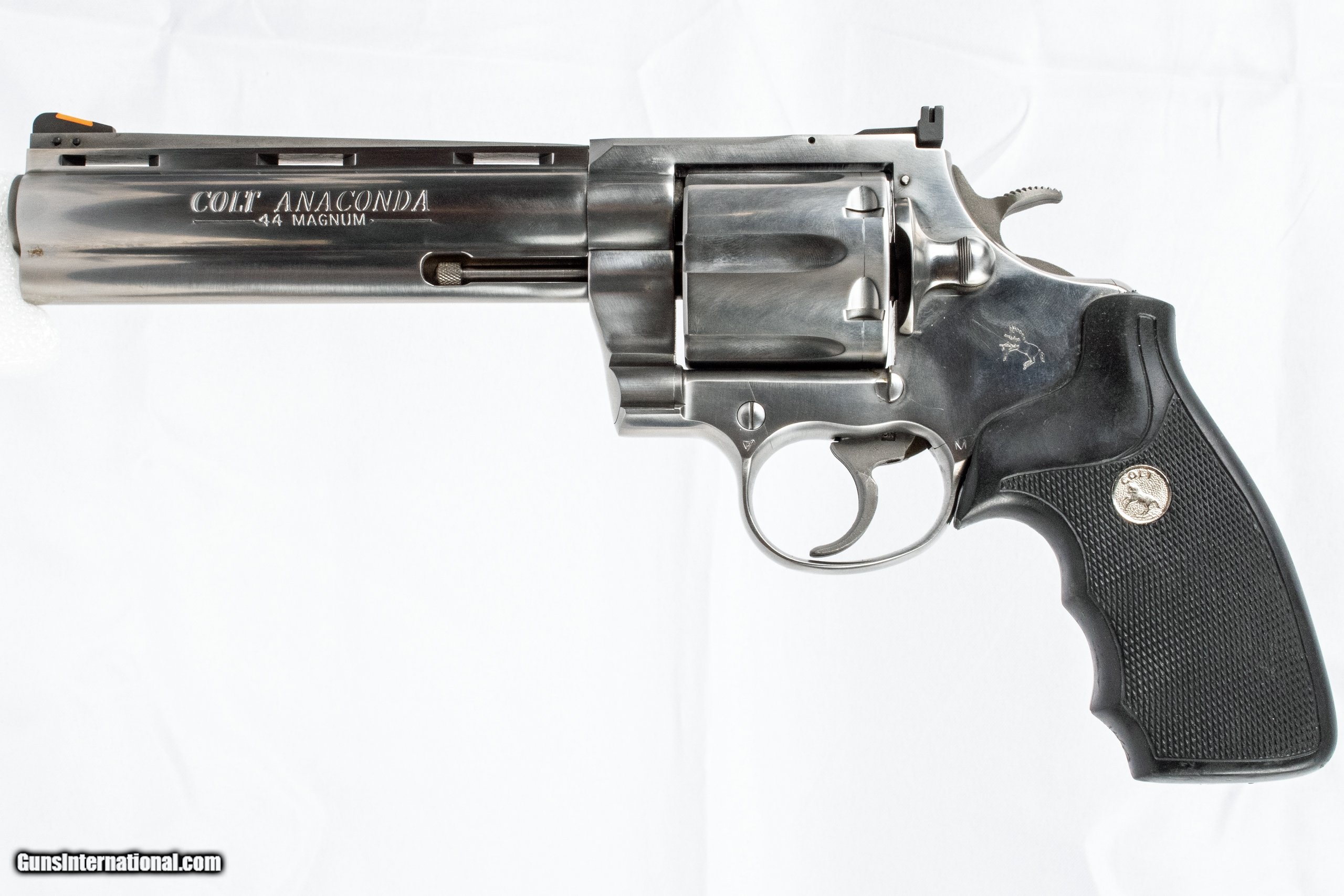 Description: Colt Anaconda chambered in 44 magnum with a 6 inch barrel, bright & shiny bore and was manufactured in 1994. The NRA grading condition for this firearm is Excellent. Dury's Lifetime Warranty: All firearms purchased from Dury’s Gun Shop, NEW or USED, are covered by a lifetime warranty. We will repair or replace, at our discretion, any firearm purchased from Dury’s Gun Shop, Inc. for as long as it is owned by the purchaser. This warranty is not transferable. WE BUY GUNS! NO COLLECTION TOO BIG OR SMALL FOR OUR GUNS INTERNATIONAL CUSTOMERS ALL OF OUR FIREARMS CAN BE PURCHASED DIRECTLY FROM OUR DURY'S GUNS ! SOLD Manufacturer: Colt Model: ANACONDA Caliber Info: 44 MAGNUM Barrels: 6inches |