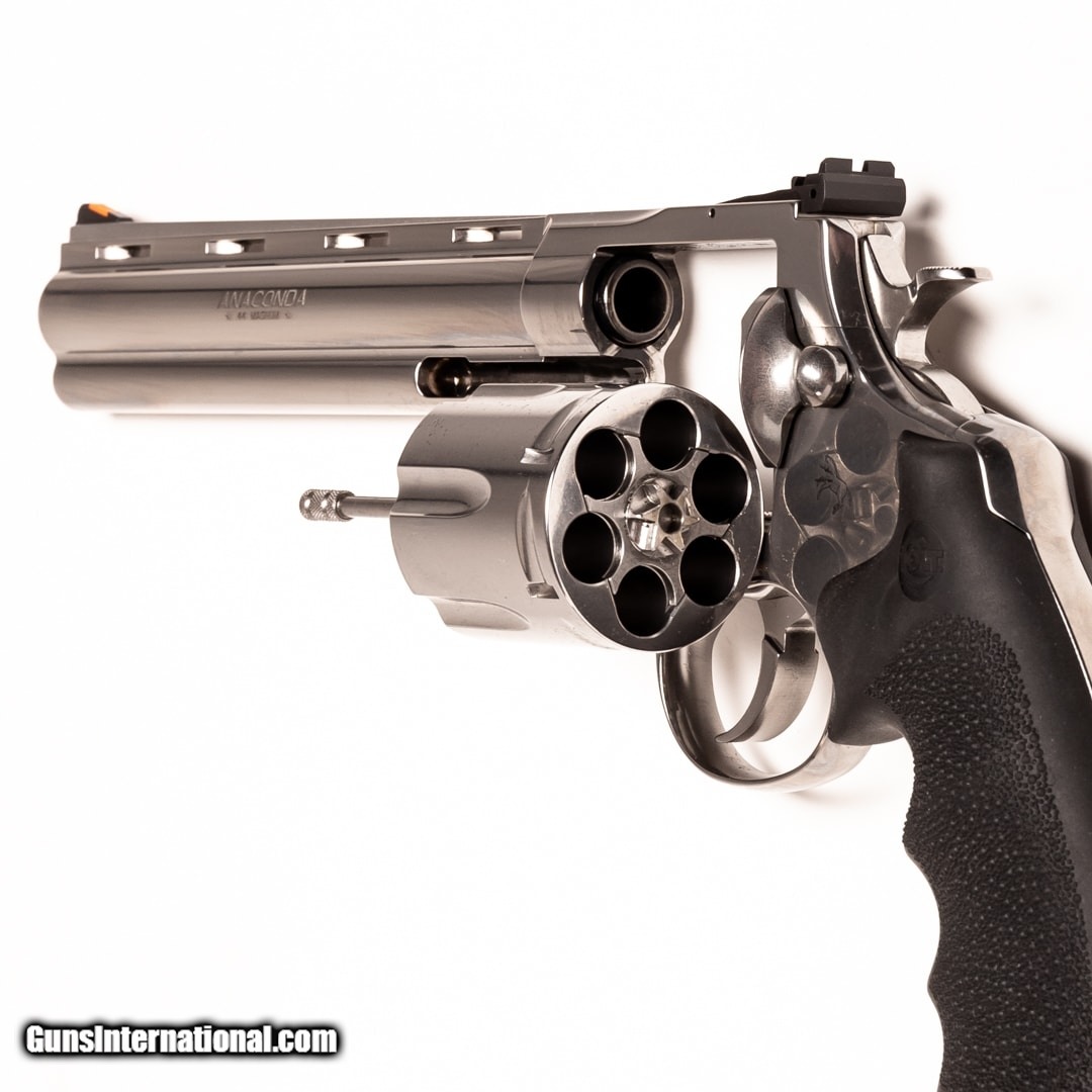 Description: Guns Listing ID: 632979 For sale is a Colt Anaconda. The big brother in Colt‚‚s \"Snake Gun\" line-up, it boasts steel construction with a stainless finish and a 8\" barrel. It delivers six rounds of the mighty 44 Magnum and is a more than capable self-defense sidearm. This Anaconda includes the original hard case and owner‚‚s manua SOLD Manufacturer: COLT Model: ANACONDA Caliber Info: .44 MAGNUM Condition: Used - Certified Barrels: 8.00 barrel Finish: STAINLESS |