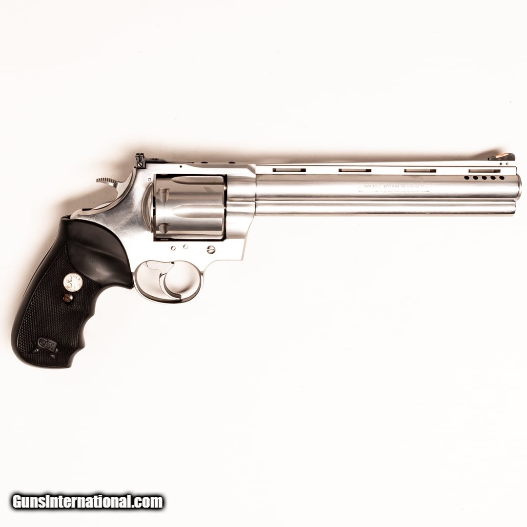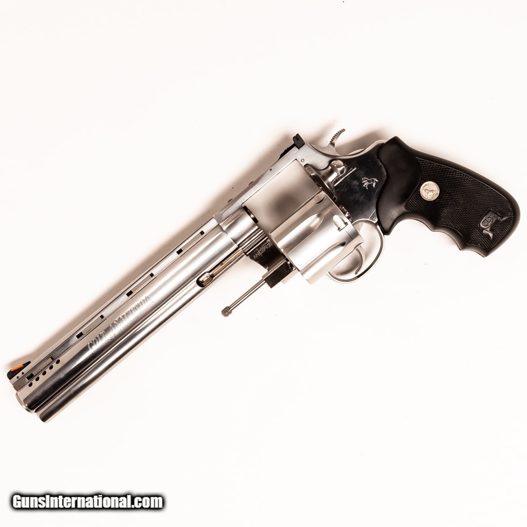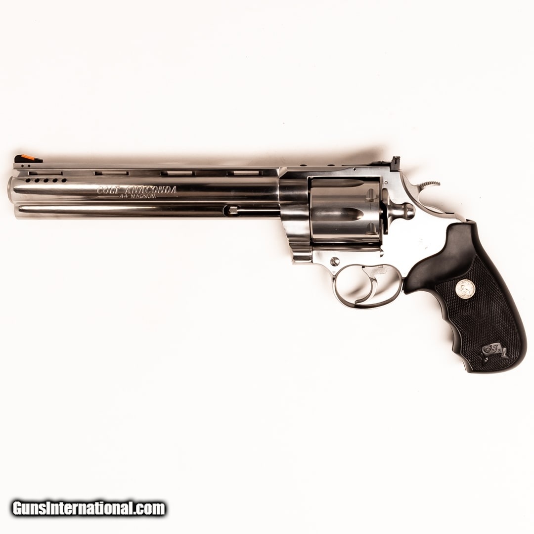 Description: Guns Listing ID: 635381 For sale is a Colt Anaconda. The big brother in Colt‚‚s \"Snake Gun\" line-up, it boasts steel construction with a stainless finish and a 8\" barrel. It delivers six rounds of the mighty 44 Magnum and is a more than capable self-defense sidearm. This Anaconda is factory ported, drilled, and tapped SOLD Manufacturer: COLT Model: ANACONDA Caliber Info: .44 MAGNUM Condition: Used - Certified Barrels: 8 barrel Finish: STAINLESS |