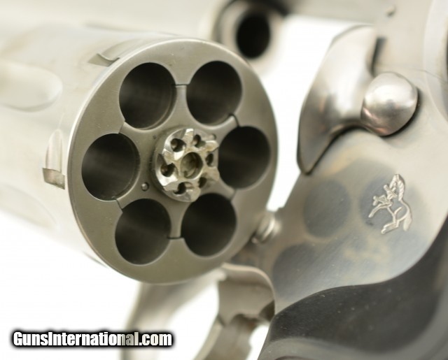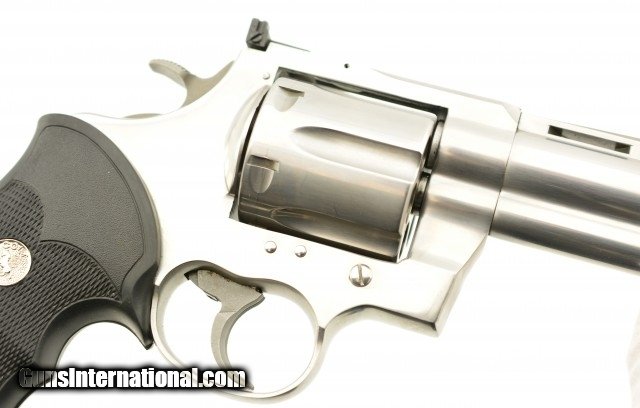 Description: Serial #MM39593, .44 Magnum, 6" barrel with an excellent, bright bore. This stainless steel revolver exhibits a minor turn-ring on the cylinder, and has a few very mild surface scratches scattered about the otherwise excellent stainless steel surfaces. The original Pachmayr Presentation, Colt medallion grips are likewise in excellent, almost unworn condition. The lock-up is tight and the mechanism functions flawlessly. This is a splendid 1990s, .44 Colt "Snake Gun" and is in excellent overall condition. FFL SOLD |