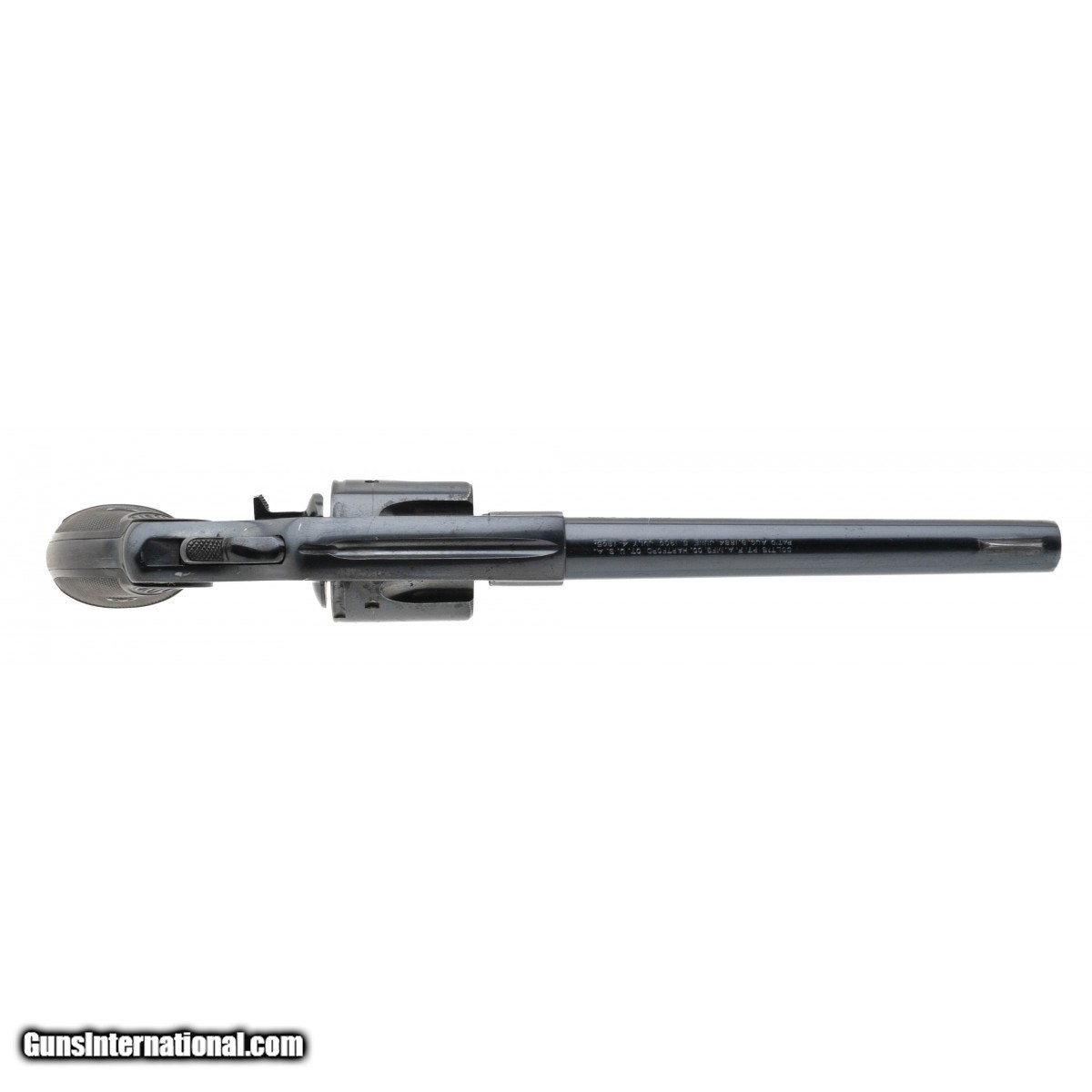 Description: " SN: 4830. Made in 1892. .38 with a 6"" barrel. Bore is bright with strong rifling. Antique Colt double action revolver. Blue finish is in good condition with area starting thin near the muzzle. Colt grips are in good condition with a chip on the bottom of the grips. Overall good condition. Consignment. SOLD Antique: Yes |