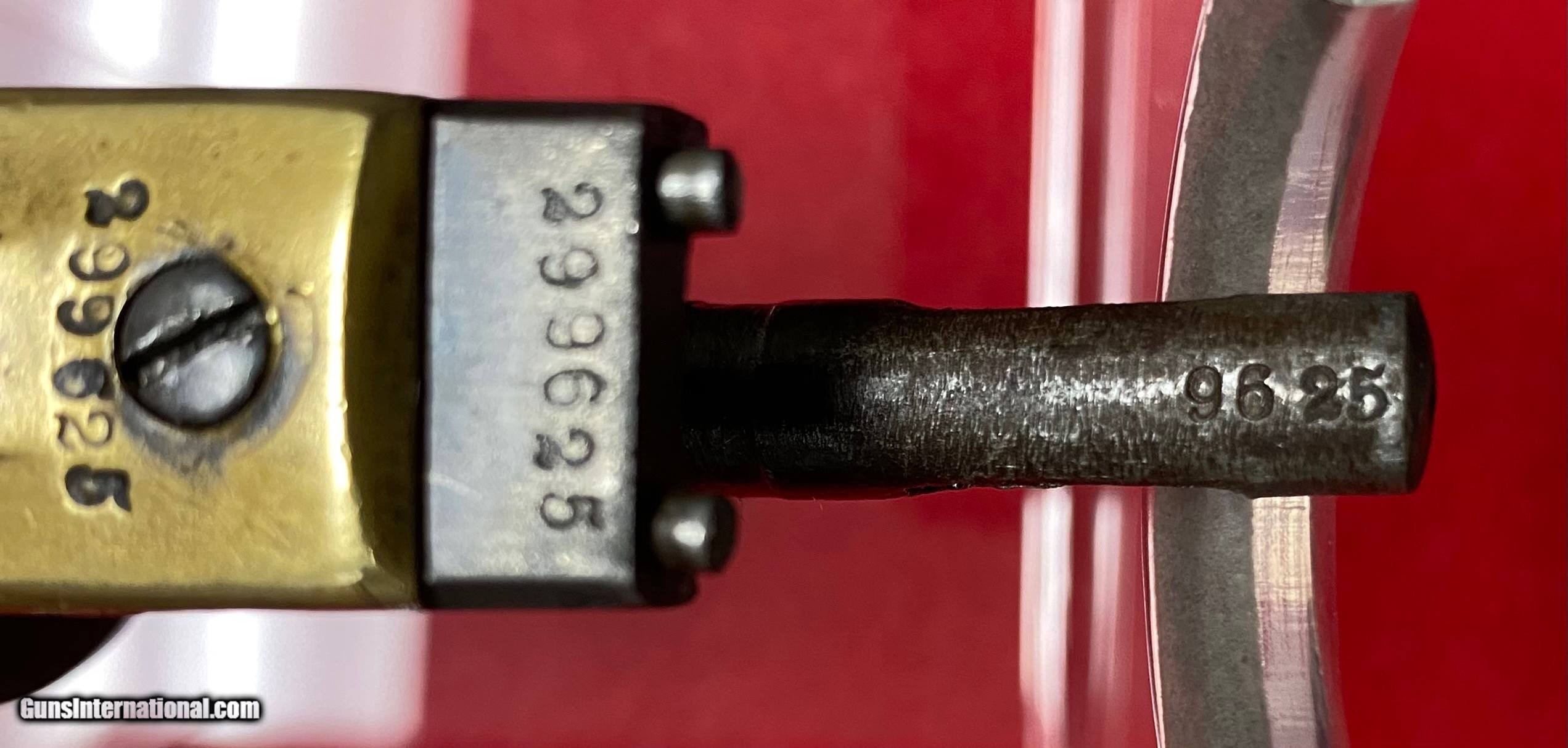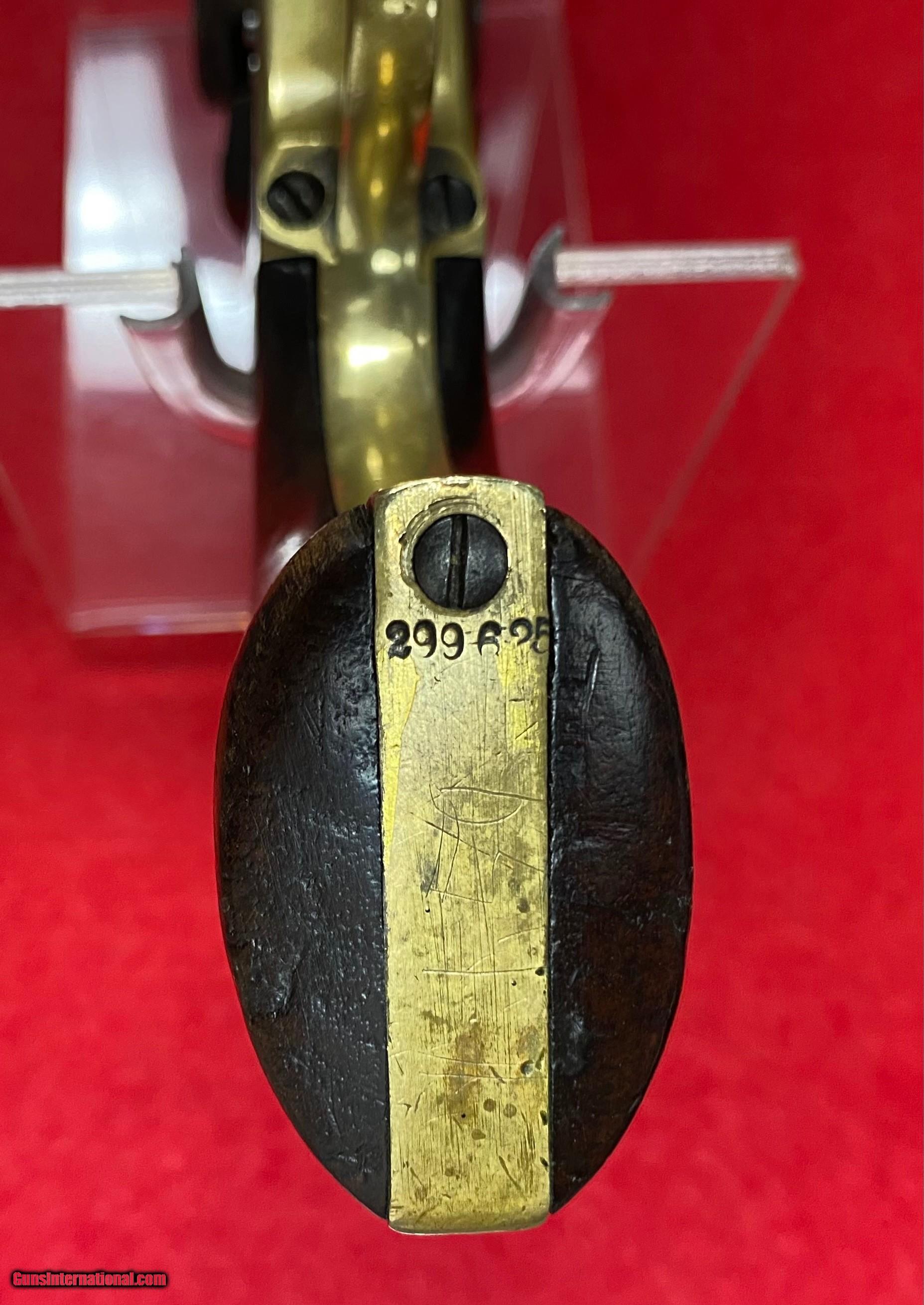 Description: Antique Colt Model 1849 Pocket Revolver .31 percussion 5 shot cylinder and 6" barrel manufactured in 1867 right after the Civil War. Very nice stagecoach scene still present on the cylinder. All matching number gun that is tight and solid. Action could use a visit to the gunsmith as it occasionally locks up. Overall a very good collectible Colt that's nearly 160 years old. $35.00 insured shipping. SOLD Antique: Yes Handgun Caliber: .31 Manufacturer: Colt Model: Model 1849 Serial Number: 299625 Barrel Length: 6” Chambers: Five Condition: Very good Metal Condition: Very good Wood Condition: Very good Bore Condition: Very good Action: SA Finish: Blued Sights: Fixed Manufacture Date: 1867 Item Location: WV |