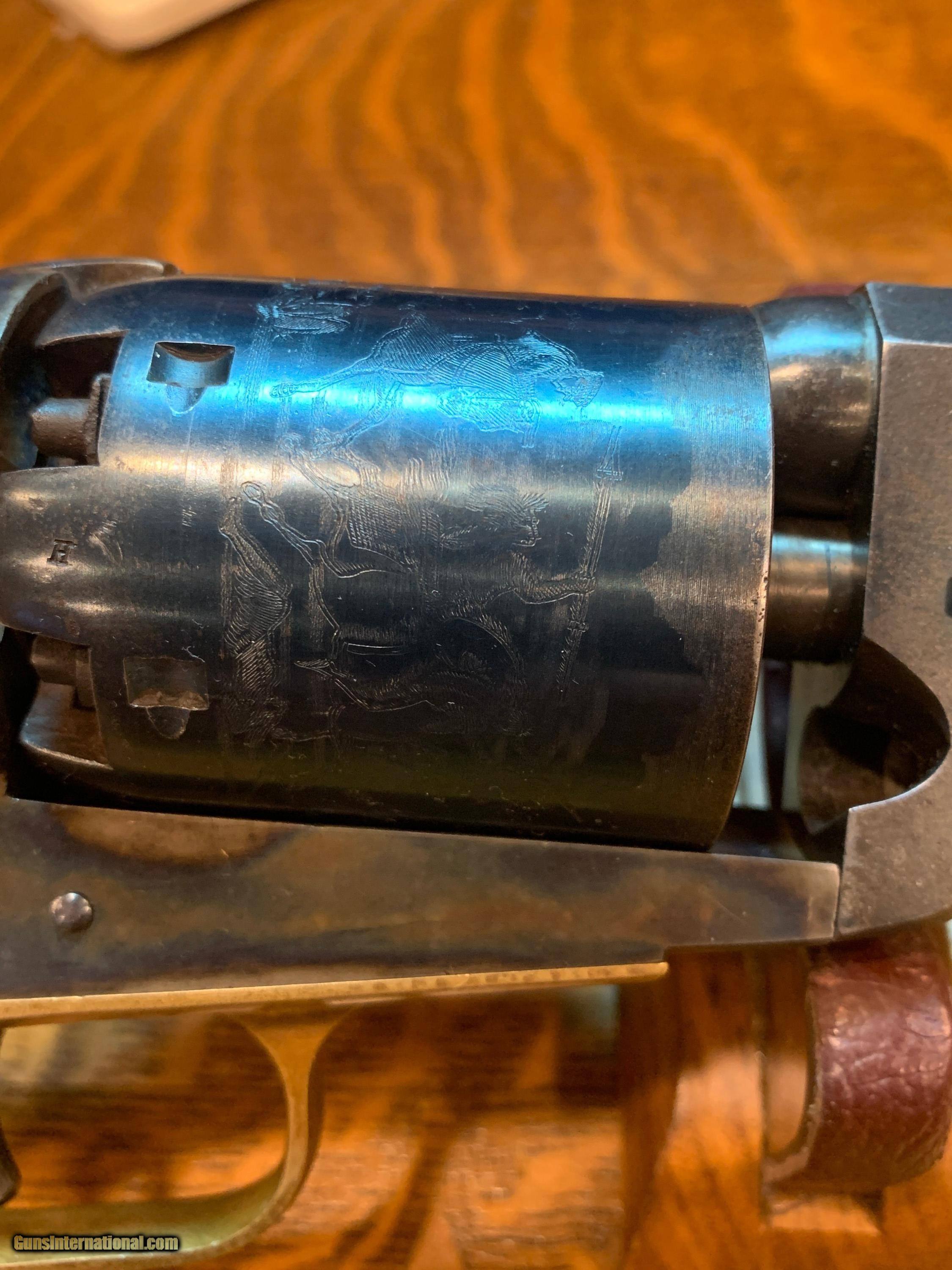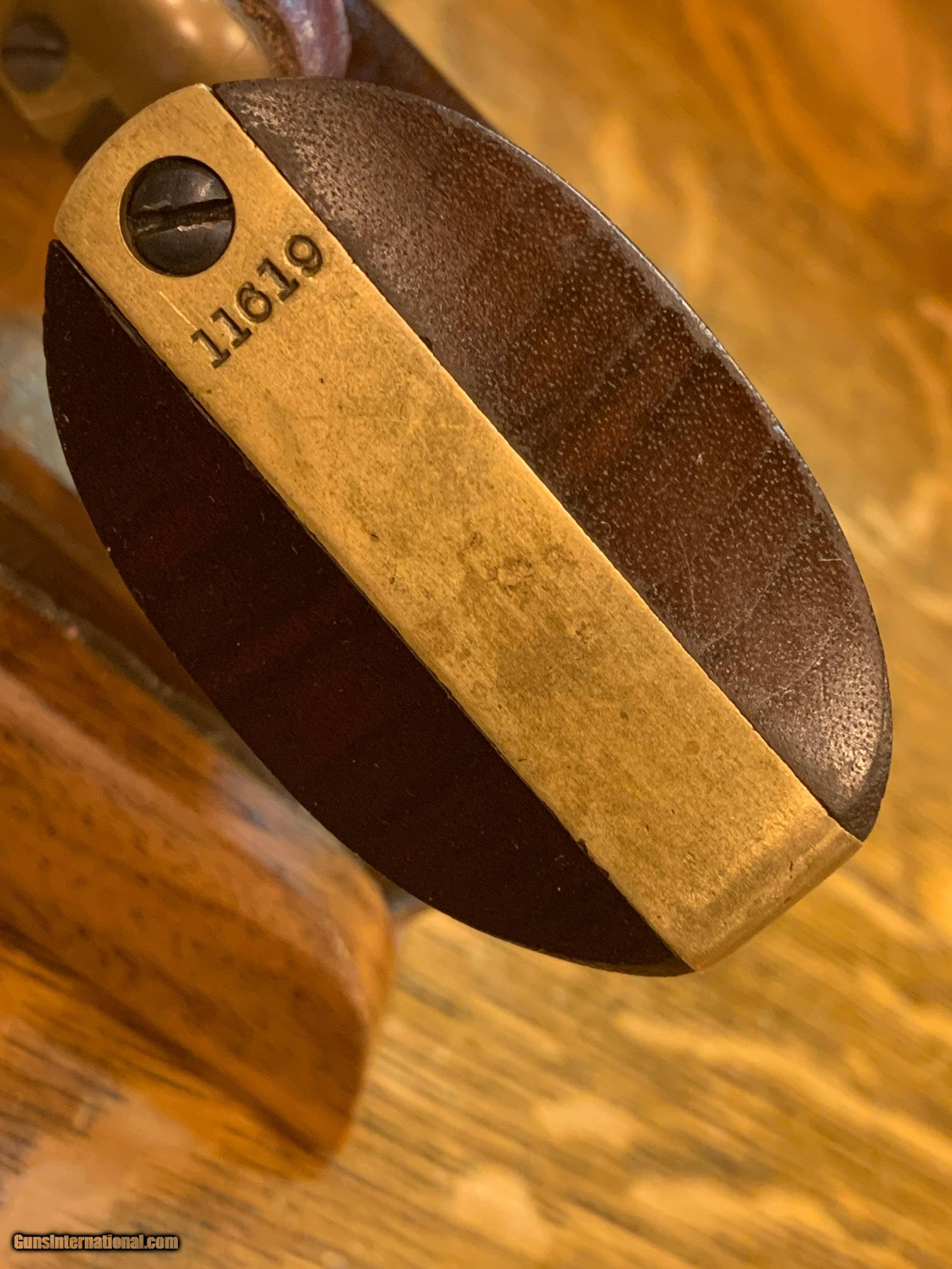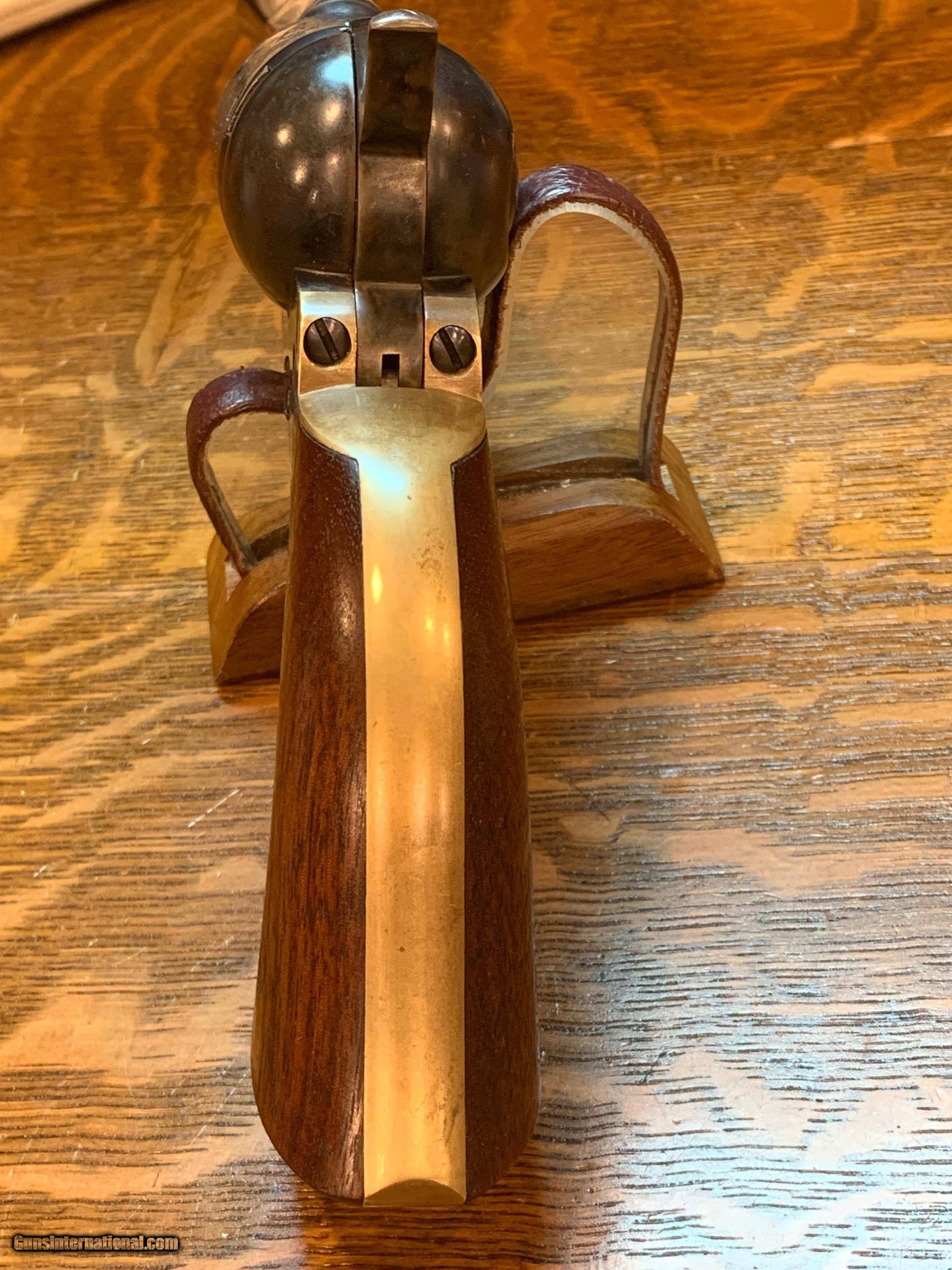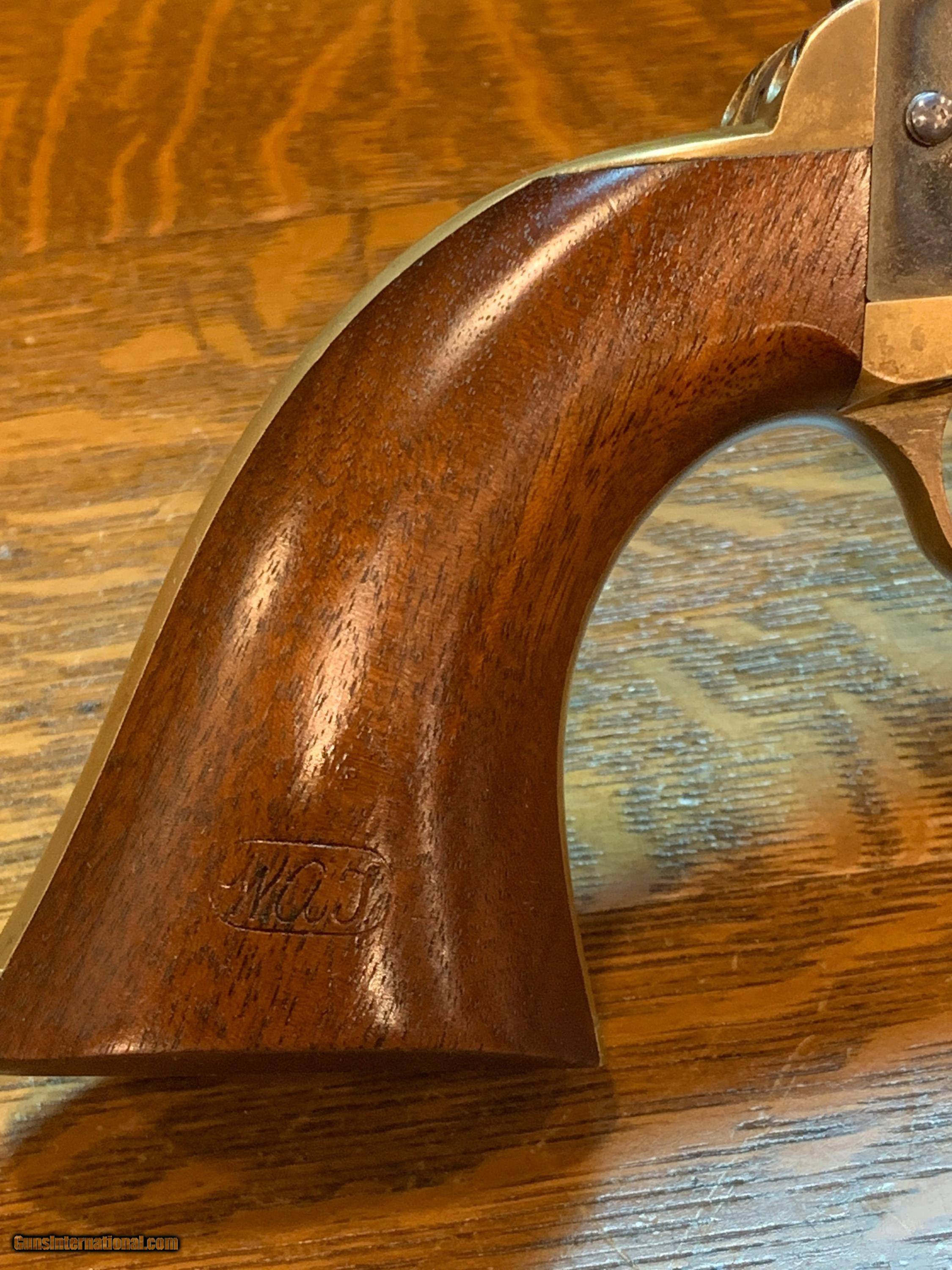 Description: COLT 1848 THIRD MODEL MARTIAL DRAGOON. SERIAL NO.11619. PRODUCED IN 1851.THIS EXQUISITE EXAMPLE HAS BEEN EXPERTLY RESTORED BY TOM HAAS SR. YEARS AGO. IT WAS IN THE FAMOUS COLLECTION OF EDWARD SCOTT MEADOWS, AUTHOR OF MANY PUBLICATIONS IN THE U.S.MILITARY PISTOL COLLECTING AND RESEARCH HOBBY. THE BLUEING IS JUST LIKE COLT DID. CASECOLORS THE SAME. ALL CORRECT MILITARY SMALL INSPECTION MARKS AND CARTOUCHES ARE PRESENT. CYLINDER SCENE IS PERFECT. ALL NUMBERS MATCH. GRIPS HAVE SOME RAISED GRAIN AND ARE GORGEOUS. ACTION IS TIGHT. BORE HAS GREAT RIFLING WITH SOME DARKNESS. THIS COLT DRAGOON HAD TO BE IN EXCELLENT CONDITION BEFORE TOM HAAS SELECTED IT FOR A WORLD CLASS RESTORATION. IT DOES HAVE A FEW TINY AREAS OF PATINA AFTER THE RESTORATION THAT ADDS TO THE BEAUTY OF IT. THEY DON'T EXIST ANY BETTER! AN ORIGINAL CONDITION EXAMPLE, IN THIS CONDITION (IF ONE EXISTS), WOULD BE $200-300 THOUSAND DOLLARS. A GREAT DRAGOON FOR YOUR COLLECTION. PLEASE CALL 973-214-3407 WITH QUESTIONS. THANKYOU SOLD Antique: Yes |