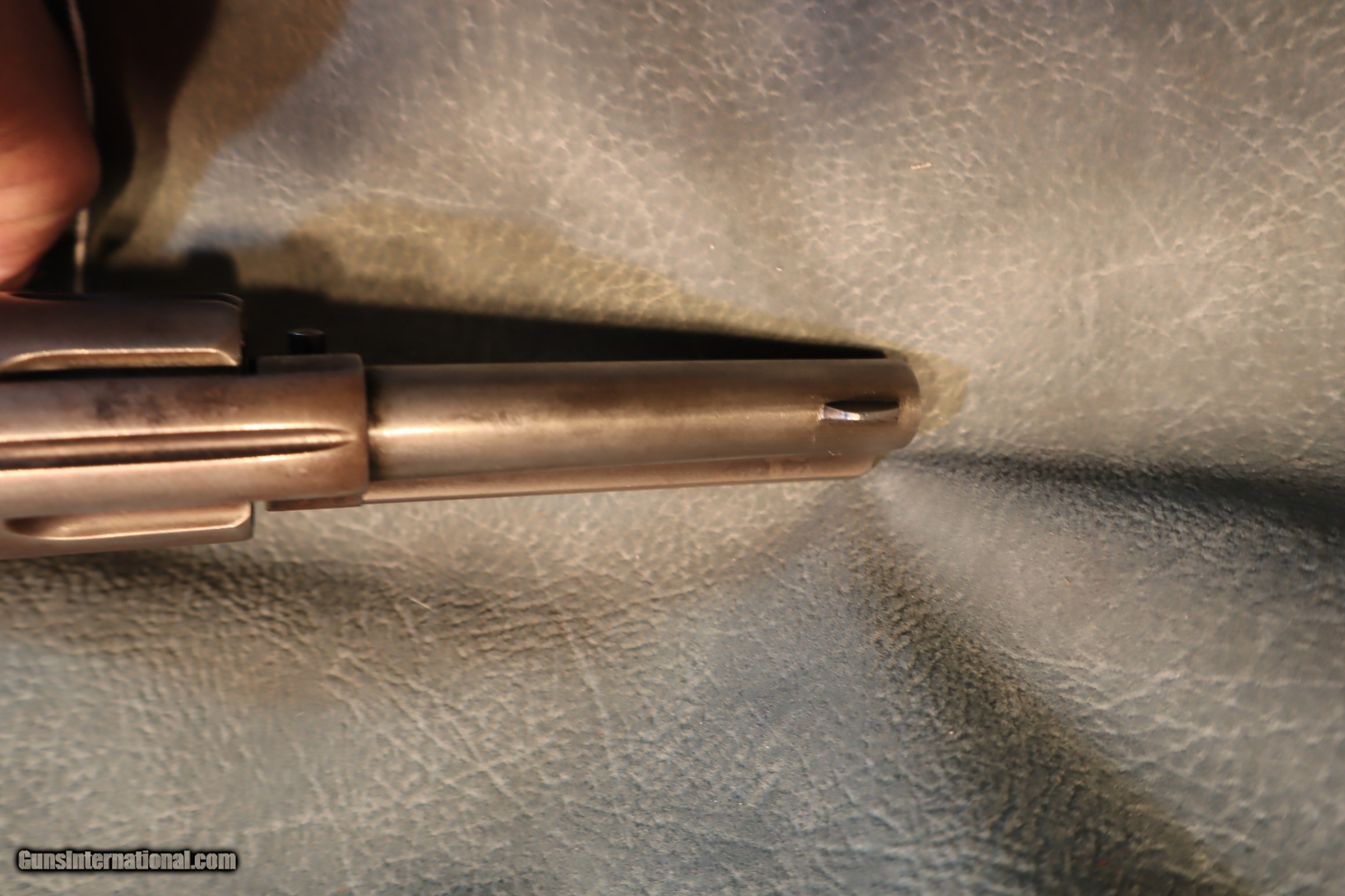 Description: Colt 1878 DA Antique 45LC 4 3/4" barrel with good bore and no markings,serial #20855,action seems to work OK,chip out of the left grip,fairly nice condition with some original bluing. GUN COLLECTIONS WANTED FOR CASH! We buy, sell, consign and trade new and used firearms. This is our 48th year in business. We offer 90 day layaways with 20% down. No return on layaways. Firearms will need to be transferred through a FFL dealer. Prices reflect a cash discount. There will be 3% added to credit card sales. We trade for gold and silver. THANK YOU! SOLD |
