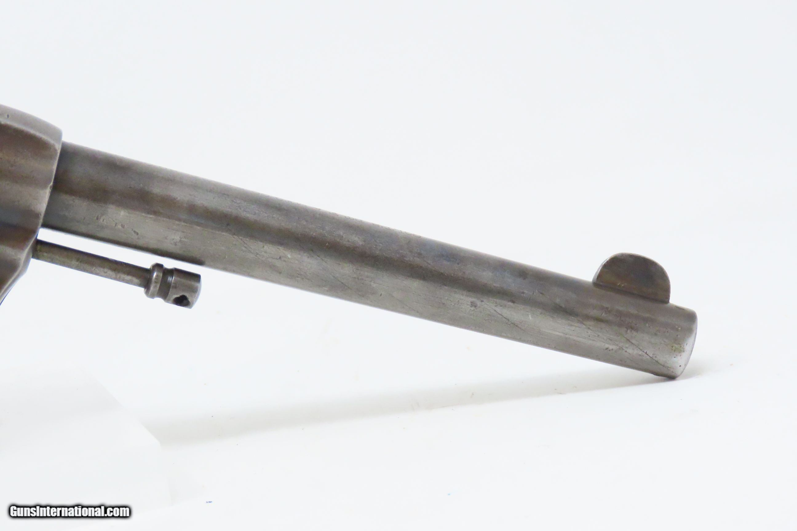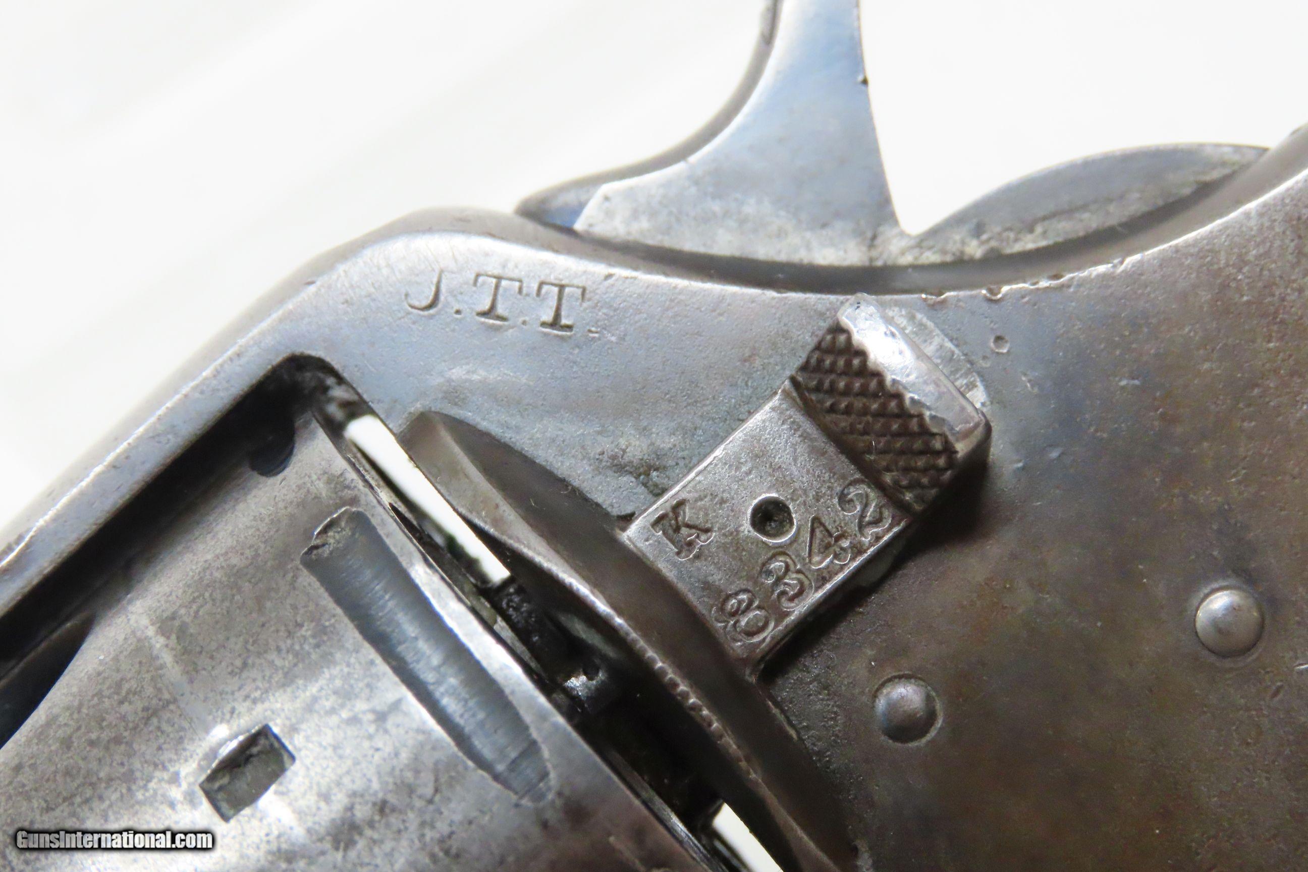 Description: R.A.C. & J.T.T. Inspected 1903 U.S. COLT NEW ARMY & NAVY .38 REVOLVER C&R First DA Swing Out Cylinder Used by the US Military Here we present a C&R Colt New Army & Navy Double Action Revolver, made in 1903 by the Colt Manufacturing Company with a production run from 1892 through 1907 in Hartford, Connecticut. The M1892 Colt Army and Navy was the first general issue double action revolver with a swing out cylinder used by the U.S. military. In 1892 the gun was adopted by the Army in .38 Long Colt caliber, and the revolver was given the name of New Army and Navy. Initial experience with the gun caused officials to request some improvements. This would be an ongoing condition, resulting in Models 1892, 1894, 1896, 1901, and 1903 for the Army, all being a variant of the Model 1892. A Model 1892 revolver was recovered from the USS Maine after it exploded in Havana Harbor in 1898. It was presented to then-Assistant Secretary of the Navy Theodore Roosevelt, who would later become President of the United States. Roosevelt brandished this pistol to rally his Rough Riders during the famed charge up San Juan Hill on July 1, 1898. By the time production ceased in 1907 (the gun would be kept in the government inventory for several years after that) more than a quarter of a million versions of the Army & Navy had been made. Not a bad track record for an arm that many consider something of a failure. This example is U.S. inspector marked “R.A.C” and “J.T.T” on the frame by sub-ordnance inspectors Ronaldo A. Carr and Capt. John T. Thompson. The overall condition is good. Some original finish is present in the flutes and other low traffic areas. Sharp markings. The bore is bright with nice rifling. The action fully functions and the cylinder has a bit of wiggle when locked up. Numbers match. “1903” dated left frame. The left grips has been repaired. Smoothed checkering on the grips. This firearm is classified as a Curio & Relic. Barrel is 6 inches. Caliber: .38 Long Colt Overall condition as seen in photos. Very Fast. Very Safe. FREE SHIPPING. Will need to be sent to your local FFL or C&R licensee. This firearm is classified as a Curio & Relic. Guaranteed AUTHENTIC & Includes CERTIFICATE OF AUTHENTICITY. ancestryguns $1800 #230781 SOLD Curio/Relic: Yes |