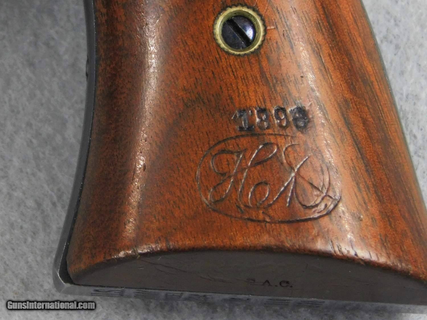 Description: This one is serial number 100,278 and was delivered in 1898. The mechanical function is very good crisp and tight and has a very good bright and shiny bore with strong rifling. Both grips have sharp and crisp grip inspector cartouches. The right is RAC and the left is stamped 1898. I can’t read the fancy script on the left one. The frame and grips are marked RAC. This Colt rates 96% blue with all numerals and letters sharp and crisp. I would consider trades for pre 1899 ANTIQUE PISTOLS and rifles on any of my items.. WHAT DO YOU HAVE TO TRADE? Ask about our 30-90 day lay-away program. We accept Bank Check, Money order, Personal checks or wire transfer. SOLD Antique: Yes Manufacturer: Colt Serial Number: 100,278 |