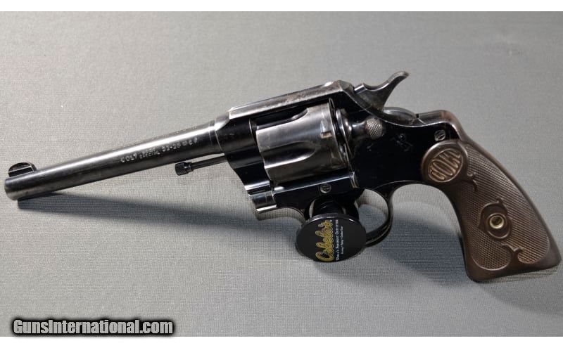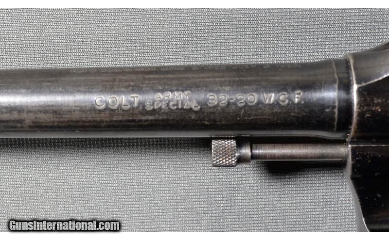 Description: The Colt Army Special is a double action, six round revolver. They were built from 1908-1927. The Army Special started life as the New Army & New Navy and would evolve into the Official Police in 1927. It was available in 4", 5" and 6" barrel lengths. Available calibers were 22LR, .32-20, .38 Special, .38/200 and .41 long Colt. .32-20 WCF SOLD Curio/Relic: Yes Metal Condition: "Fair, Heavy Wear, No Pitting Wood Condition: "Good, Grips Have No Chips or Cracks Bore Condition: "Very Good, Healthy Rifling Barrels: 6 Weight: 2LBS Item Location: Lacey, WA |