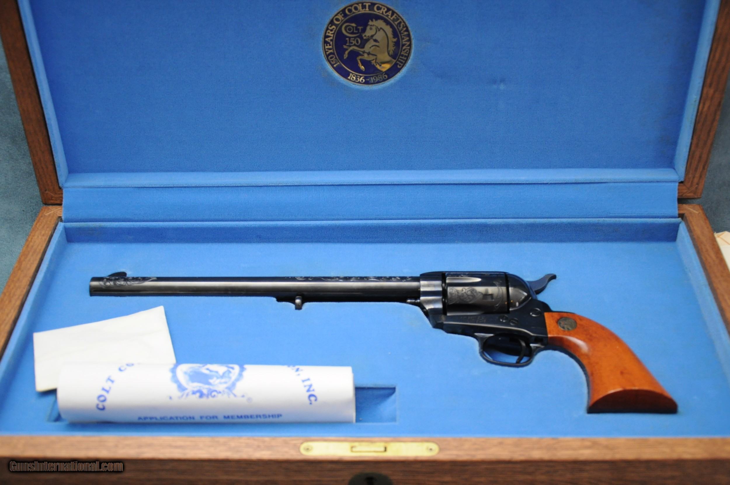 Description: Colt Single Action Army 150th Anniversary Revolver, 45 LC. Only 490 made. Beautiful engraving in the original oak presentation box. SOLD Manufacturer: Colt Model: Single Action Army 150th Anniversary Caliber Info: 45 Long Colt Condition: Mint Barrels: 10 Engraving: Yes |