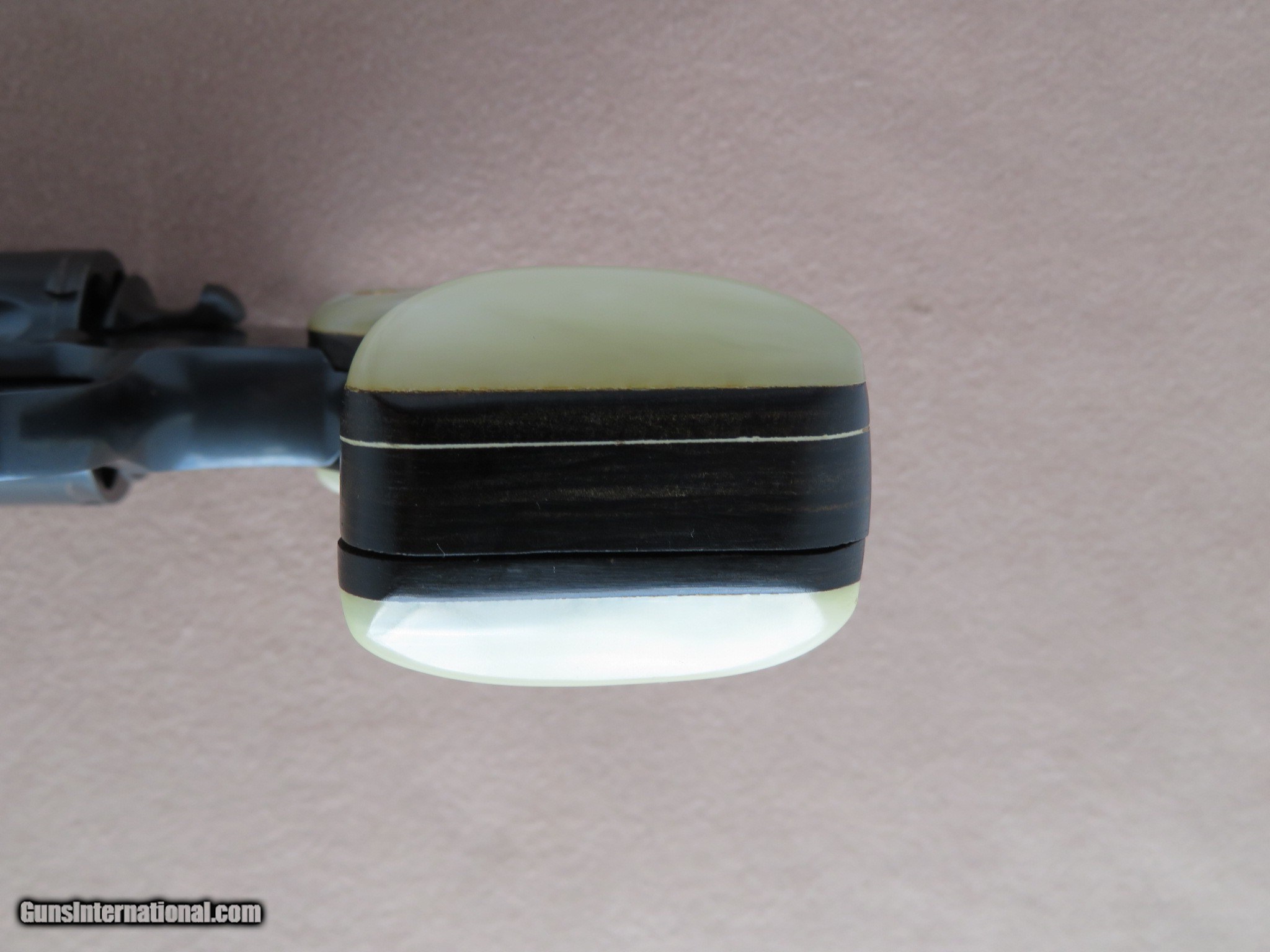 Description: Colt Detective Special (2nd Issue) chambered in .38 Special. Manufactured in 1969, this revolver features 6 shot capacity, 2" barrel, blue finished, and faux mother of pearl grips with gold Colt medallions. This revolver retains approximately 95% of its original finish with the majority of the wear on the front of the cylinder and muzzle. The bore and chambers are bright, the action locks up tight and is in perfect time. This gun appears to have been carried some but fired very little. A very nice example of its type. PRICE: $595 We are Antique & Modern Firearms in Lexington, KY, dealer of fine firearms since 1974. PH. 859-276-1419 We Buy, Sell and Trade Firearms & Knives. Have a Individual Firearm, Firearms Collection, or Firearms Estate to sell, let us know, we can buy or consignment sell it for you. NOTE: No additional Fee for Credit Card Purchases. SOLD Curio/Relic: Yes Manufacturer: Colt Model: Detective Special (2nd Issue) Serial Number: A15729 Caliber Info: .38 Special Bore: Excellent Condition: Excellent Metal Condition: Excellent |