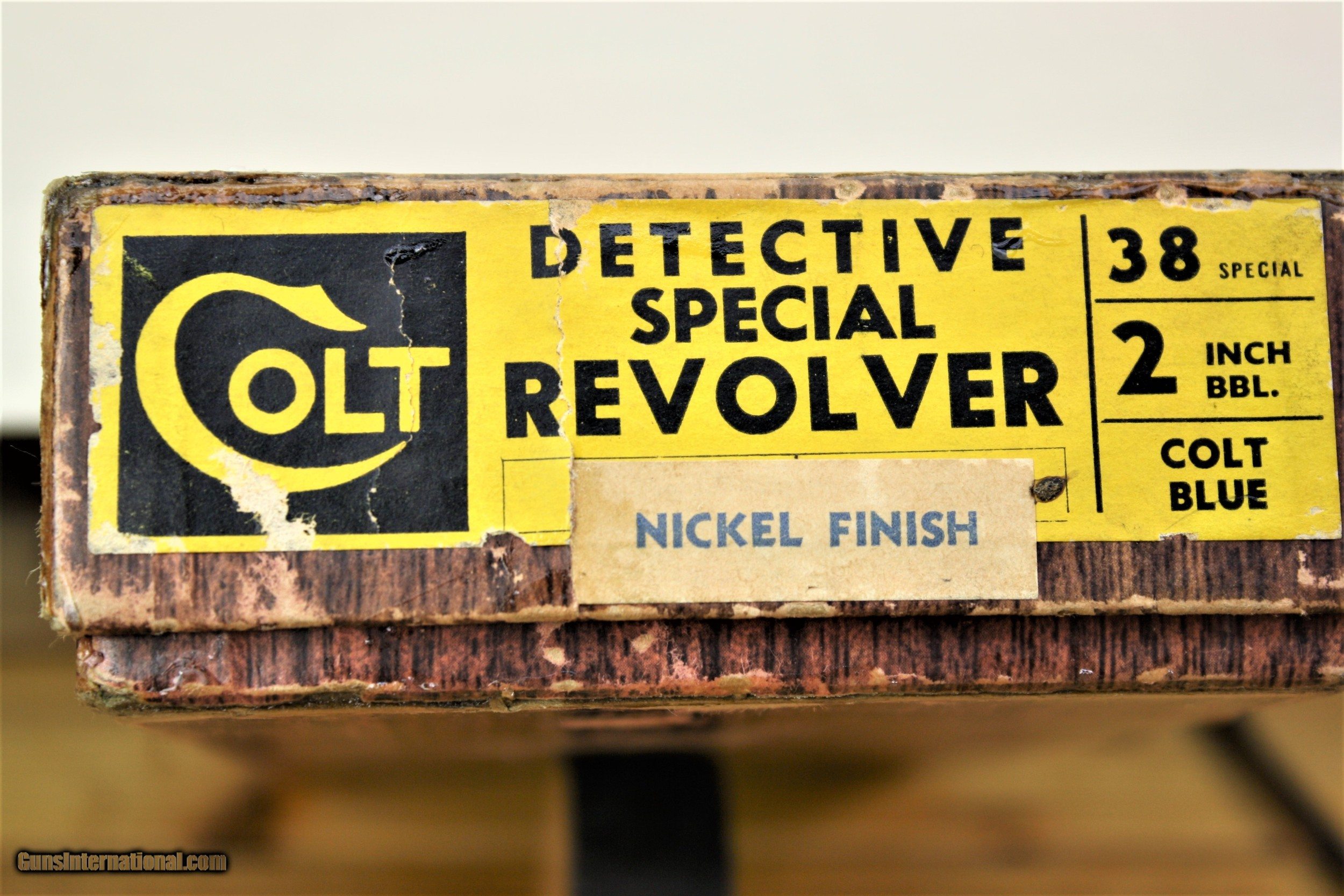 Colt Detective Special 2" revolver, nickel, box, papers, felt case, Unfired?