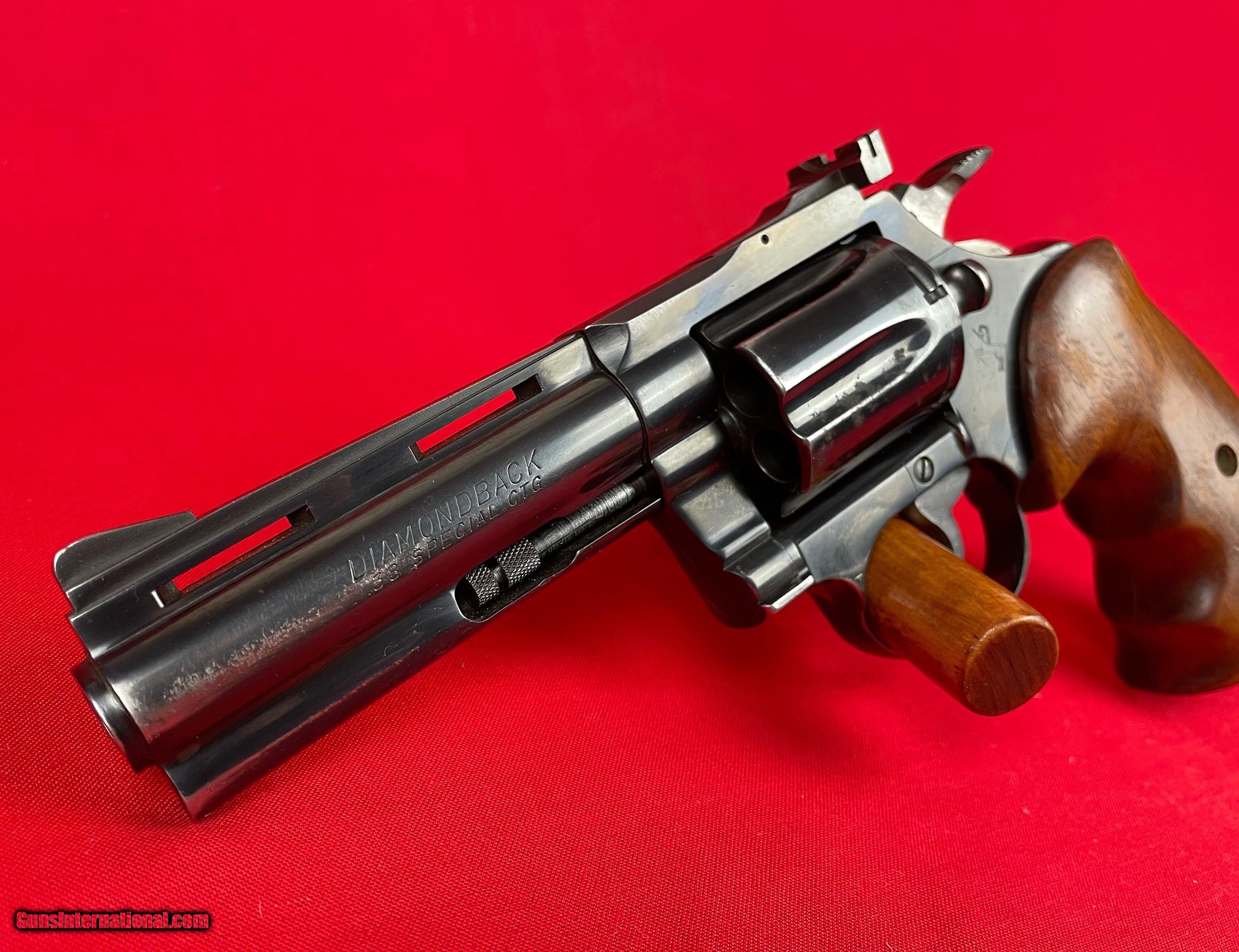 Description: Colt Diamondback revolver Made in 1968 Caliber 38 special Great shooter condition with holster wear Smooth action, locks up tight 4in barrel Excellent shiny bore Finger groove wood grips Ships to FFL or C&R All firearms should be checked by a gunsmith Call or text Paul at 601-397-8054 Please see all my listings SOLD Curio/Relic: Yes Handgun Caliber: .38 Special |