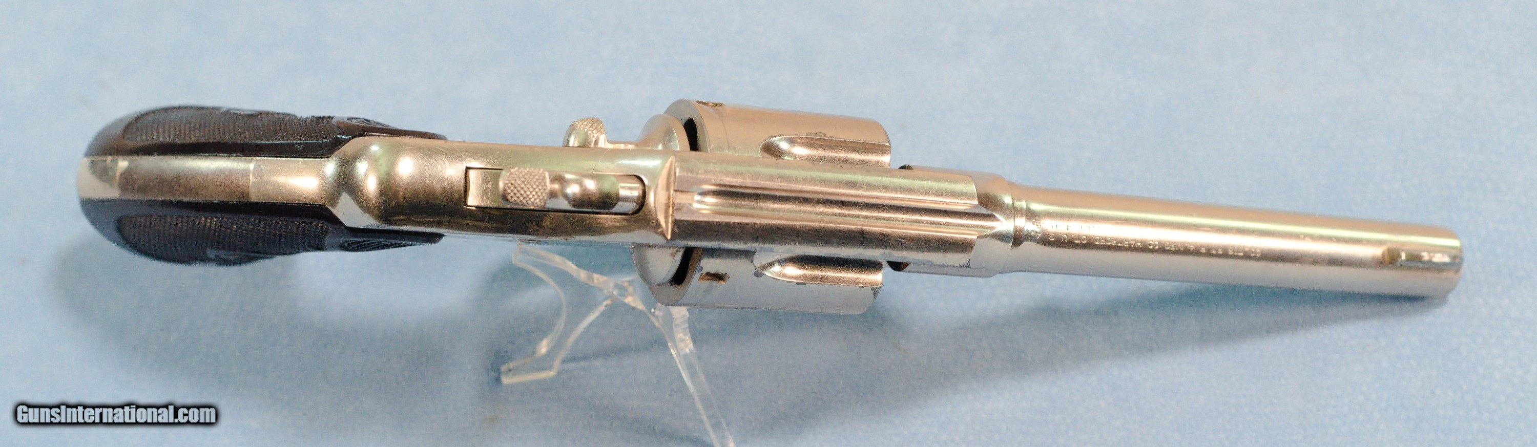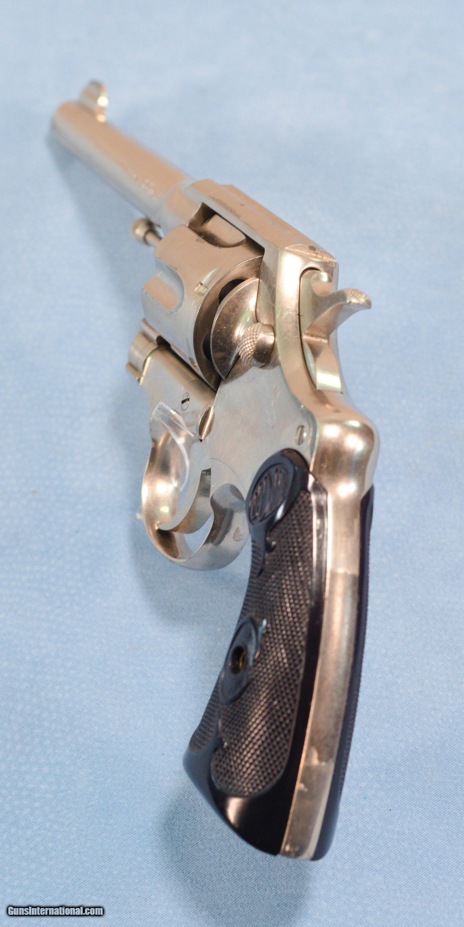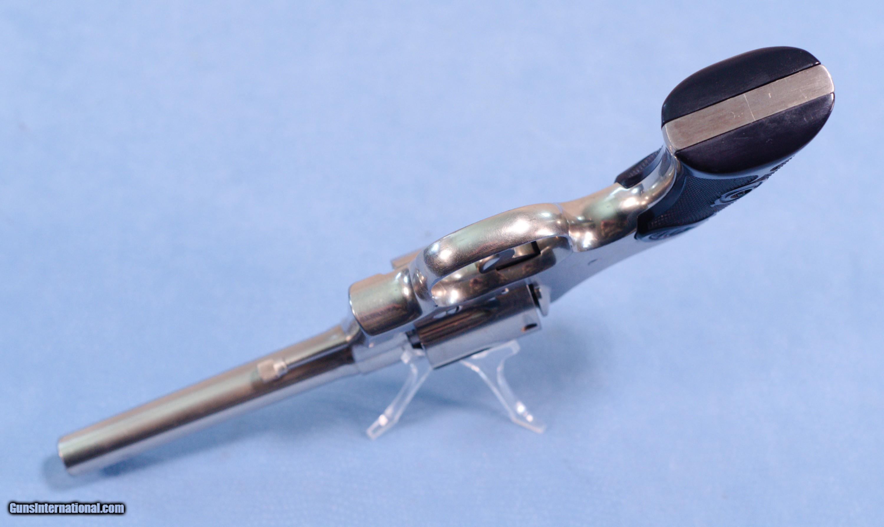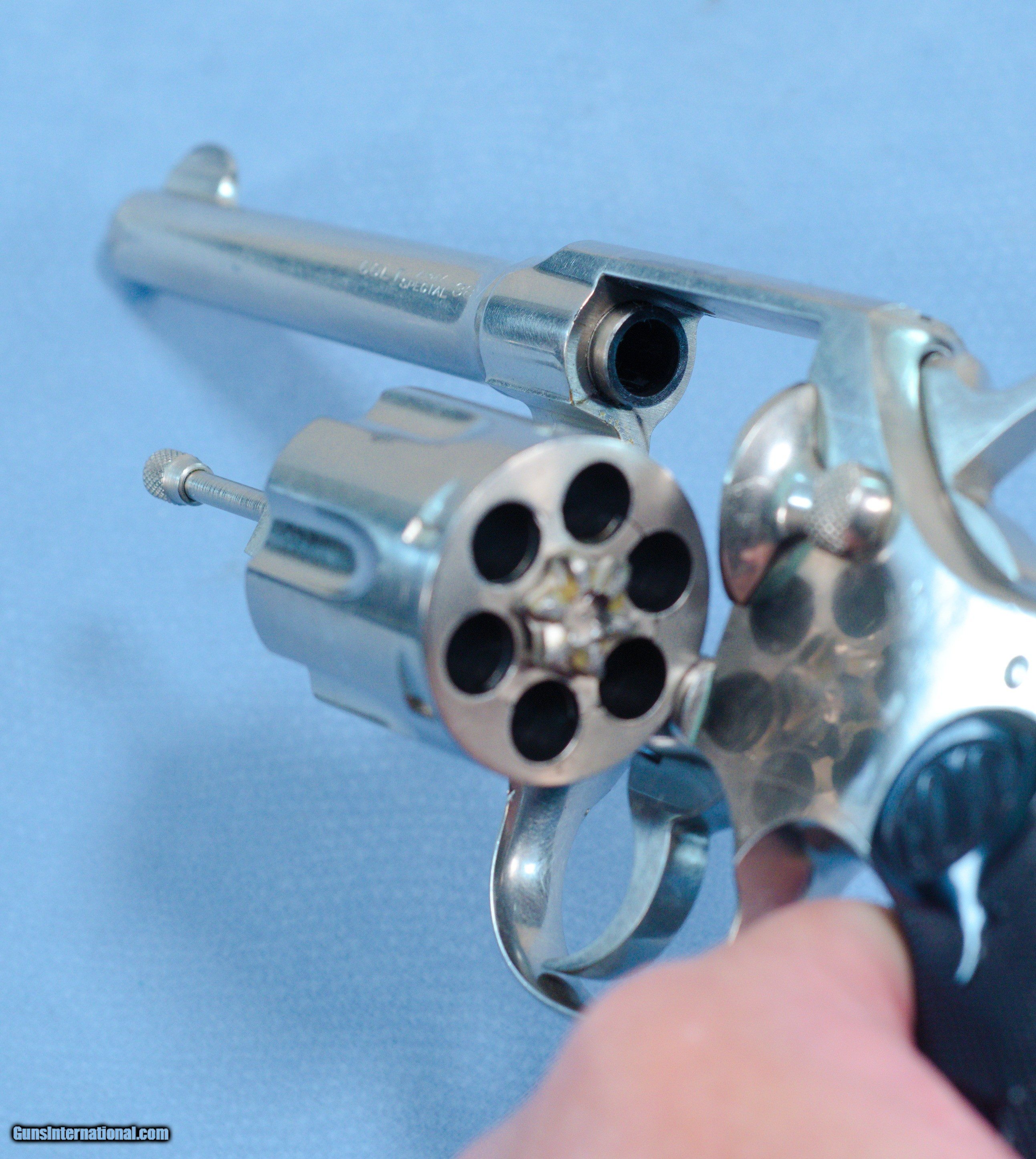 Description: **SOLD** For consideration is a very cool Colt Army Special double action revolver in .38 Special caliber. The Colt Army Special is a double action, six round revolver. They were built from 1908-1927. The Army Special started life as the New Army & New Navy and would evolve into the Official Police in 1927. It was available in 4", 5" and 6" barrel lengths. Available calibers were 22LR, .32-20, .38 Special, .38/200 and .41 long Colt. The Army Special began life in 1908 as an improvement over the New Army & Navy 1892-1903 models, which tended to bind up and get out of time due, in part, to their counterclockwise cylinder rotation. Taking inspiration from Colt’s rugged New Service revolver, the Army Special was given a stronger action, a revamped cylinder release latch, a “Positive Safety Lock” and clockwise cylinder rotation. Most guns were blued, but some were nickeled, and barrel lengths were 4", 4½", 5" and 6". Stocks were stylized black rubber until 1924, when they were changed to checkered walnut. Hoping for military acceptance, Colt dubbed its improved revolver the Army Special. This example is finished in nickel and was made in 1925. It, of course, has some handling and use marks. The 5" barrel has a good bore with strong rifling. The hard rubber grips are in very good condition being free of cracks or chips. The action is extremely tight and locks up very tightly in the "fired" condition. This is a very nice gun that would be a great addition to a collection of Colts. PRICE: **SOLD** Plus Shipping We are Antique & Modern Firearms in Lexington, KY, a dealer of fine firearms since 1974. To Inquire please call PH. 859-276-1419 We Buy, Sell, and Trade Firearms & Knives. Have an Individual Firearm, Firearms Collection, or Firearms Estate to sell, let us know, and we can buy or consignment sell it for you. NOTE: No additional fee for a Credit Card payment SOLD Handgun Caliber: .38 Special Manufacturer: Colt Model: Army Special Serial Number: 514640 Barrel Length: 5 inches Condition: Very Good Metal Condition: Very Good Bore Condition: Very Good strong rifling Action: Double Action Manufacture Date: 1925 Item Location: Kentucky |